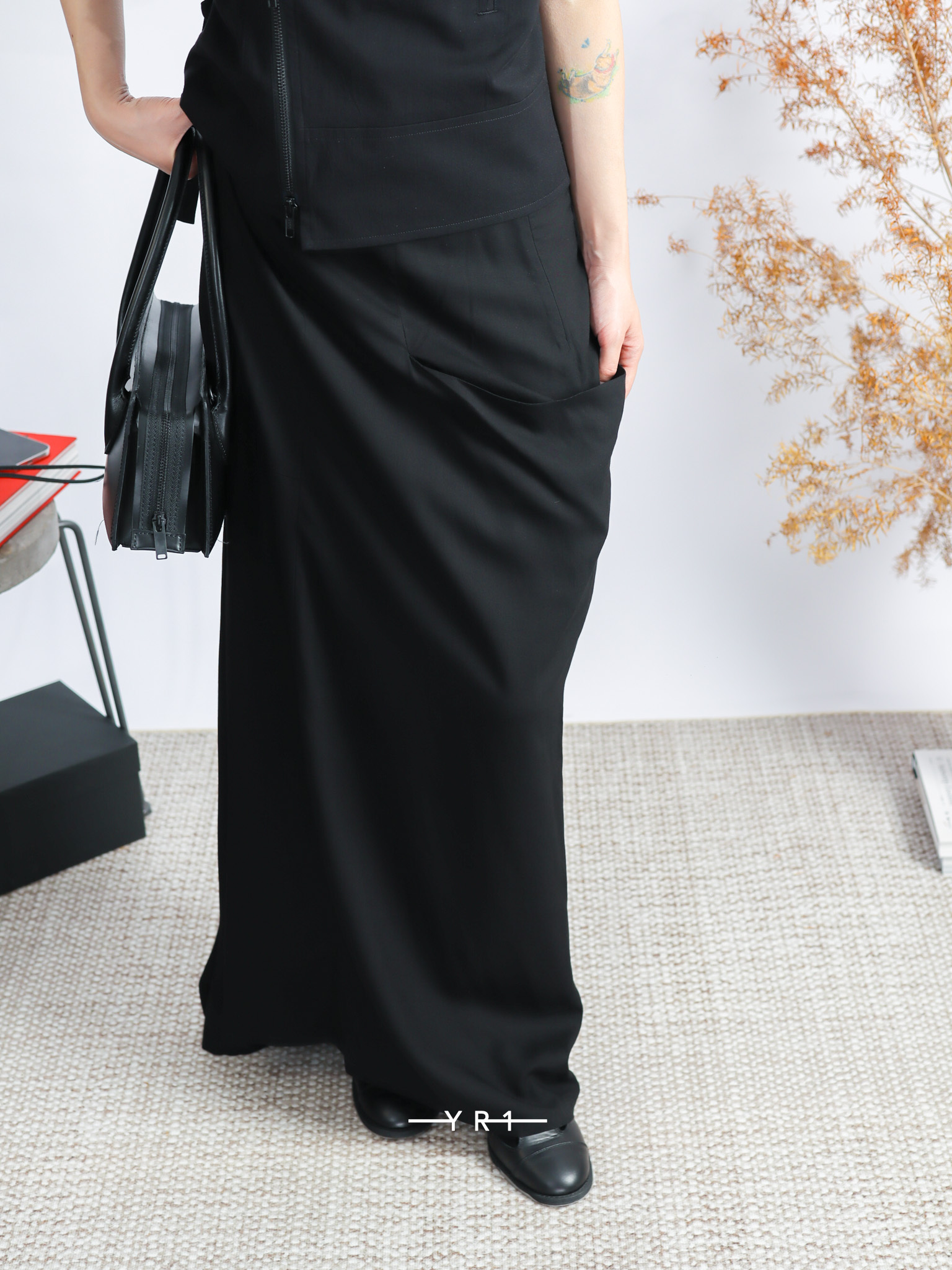 不对称口袋左布裙