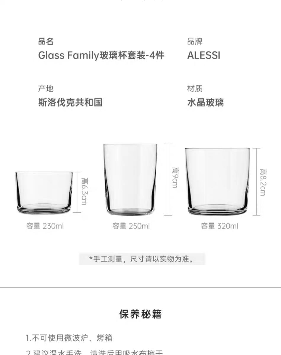 ALESSI/玻璃杯4件套泡茶牛奶咖啡水杯男女家用送礼欧式