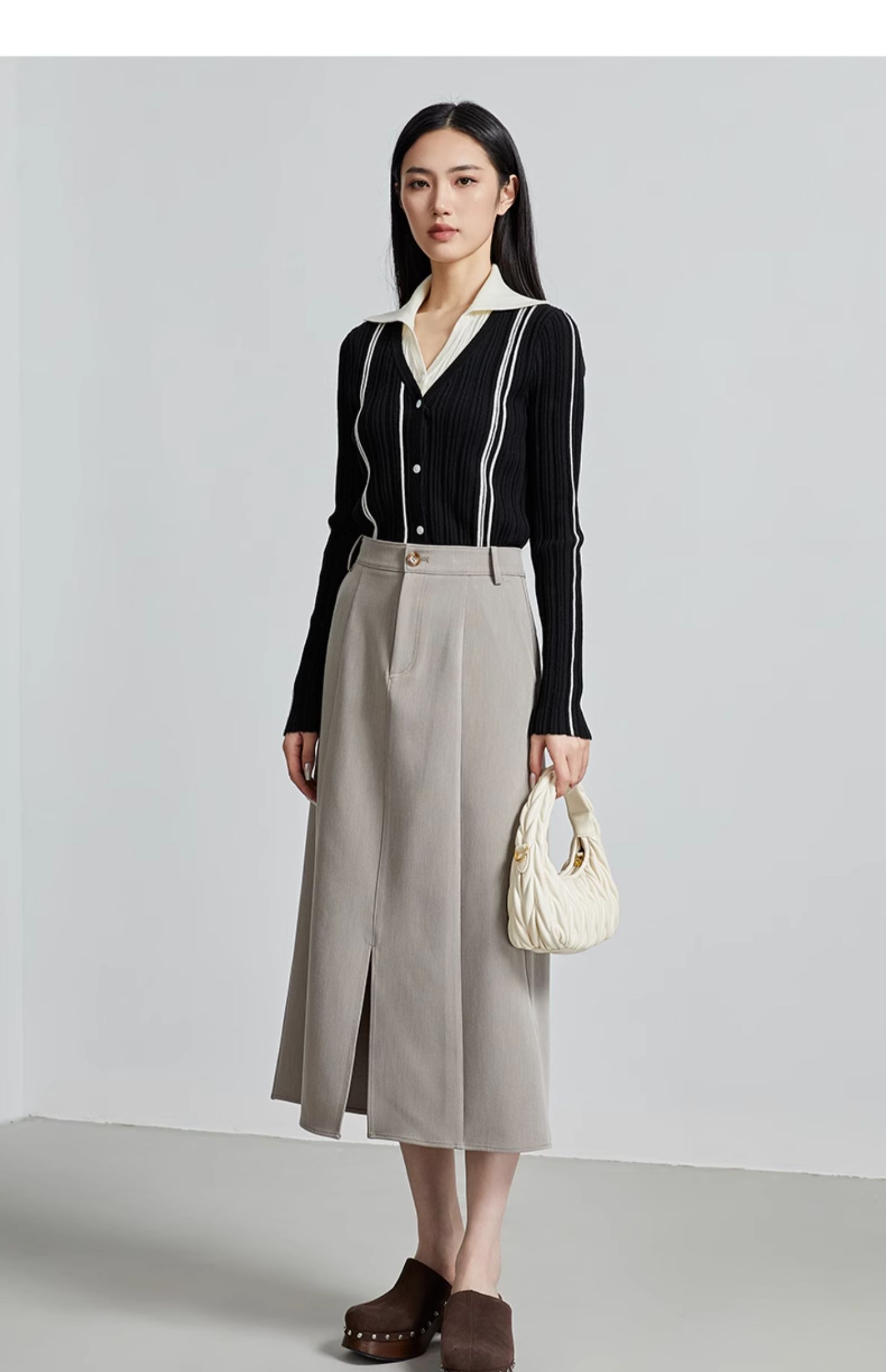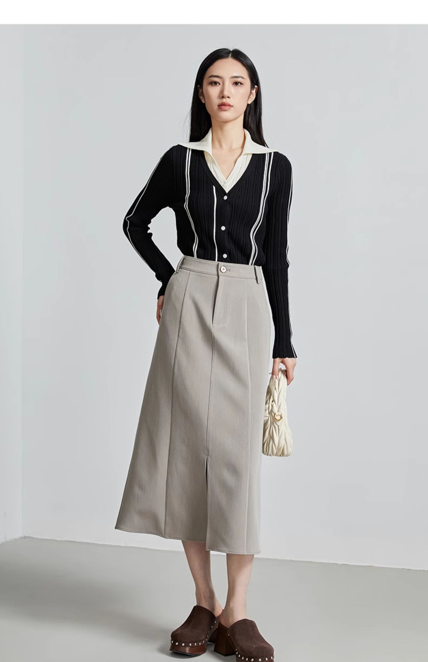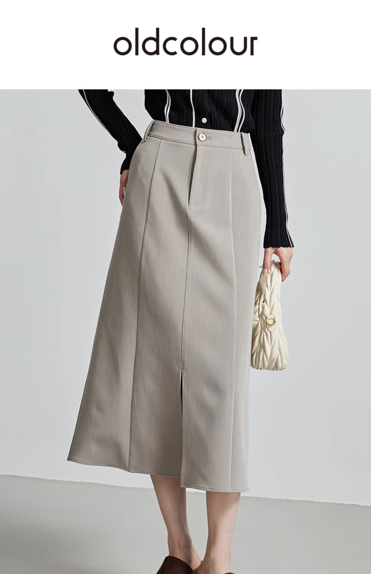 oldcolour秋季新款韩版修身高腰直筒休闲高级感中长裙女P330608A1
