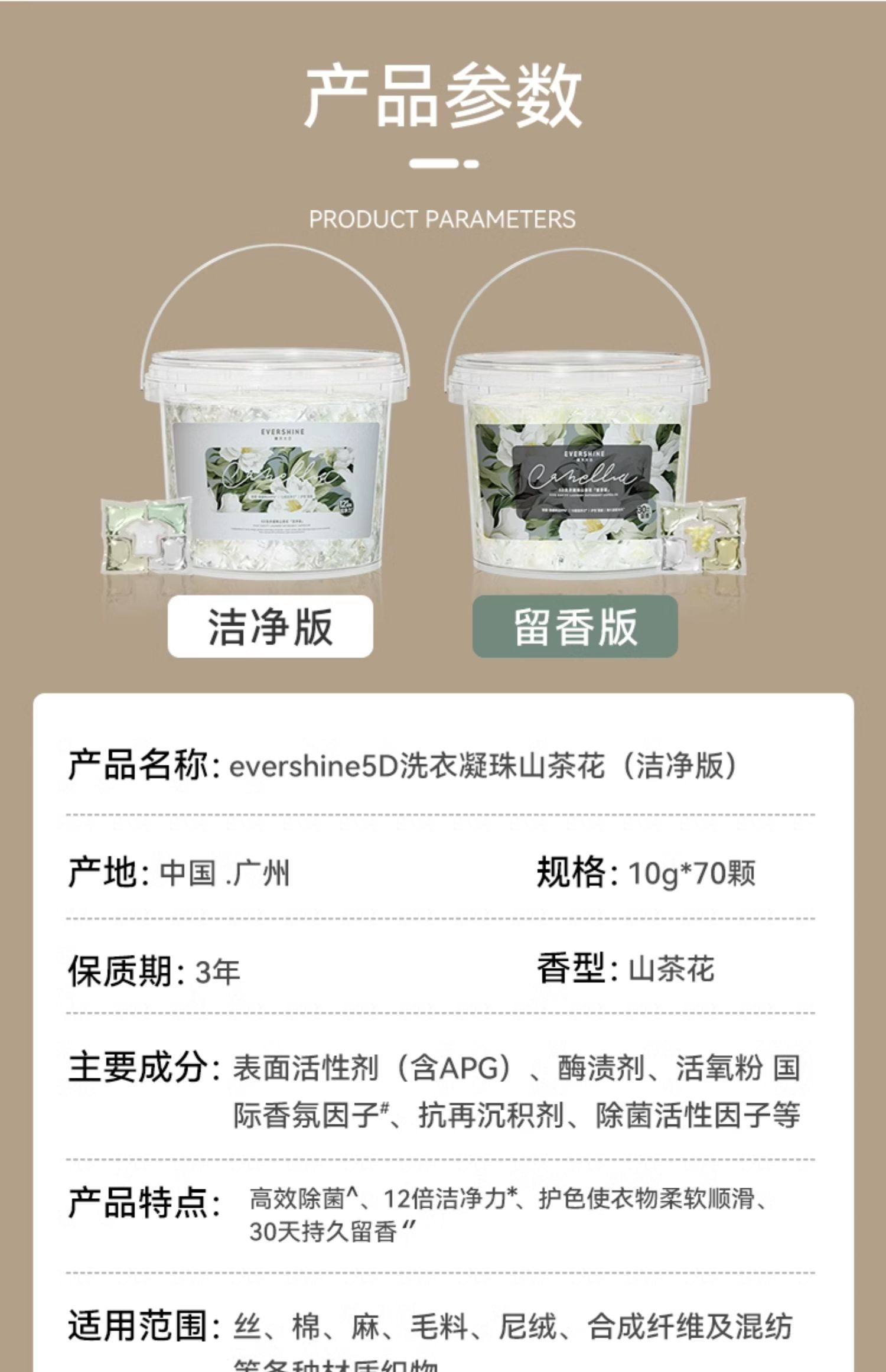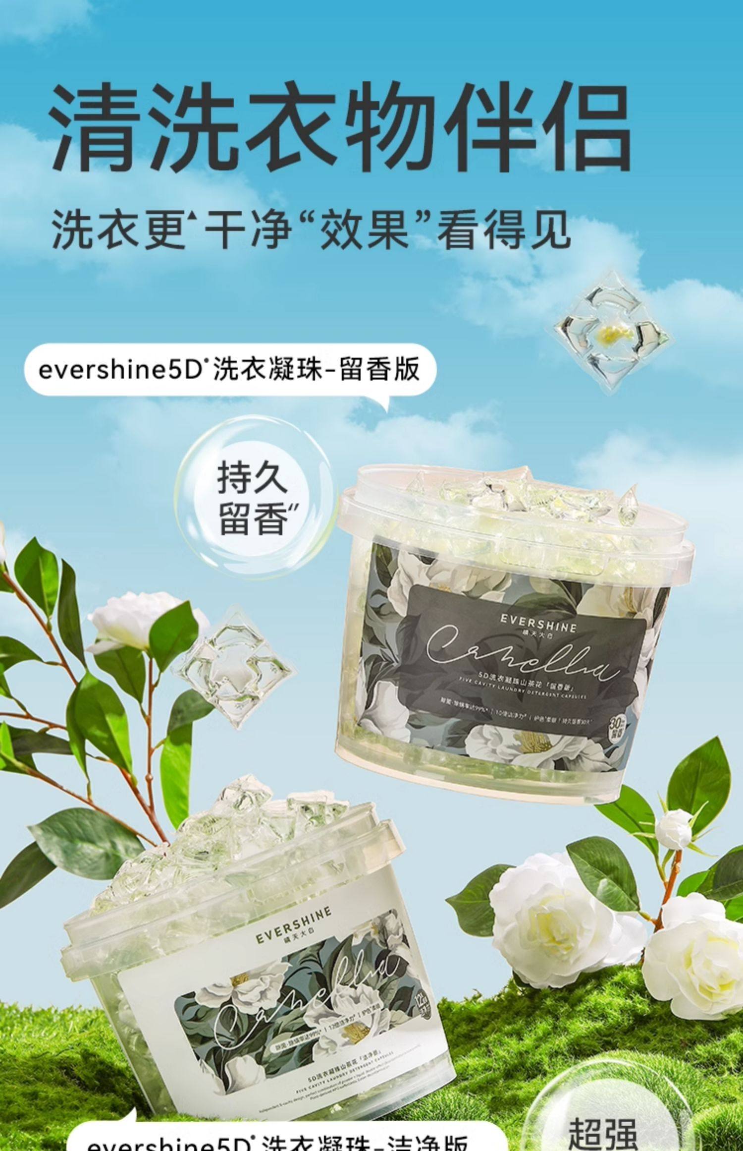 晴天大白5D山茶花洁净版洗衣凝珠10g*70颗