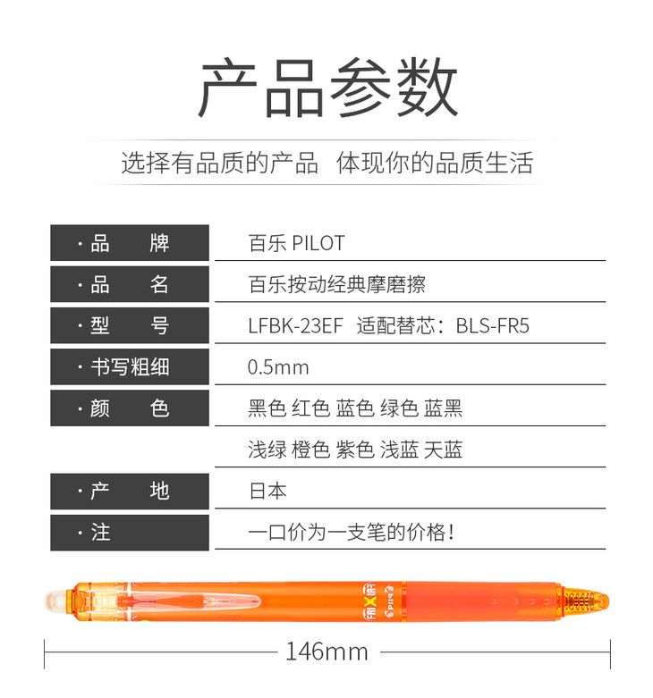 日本Pilot百乐按制摩磨擦笔0.5