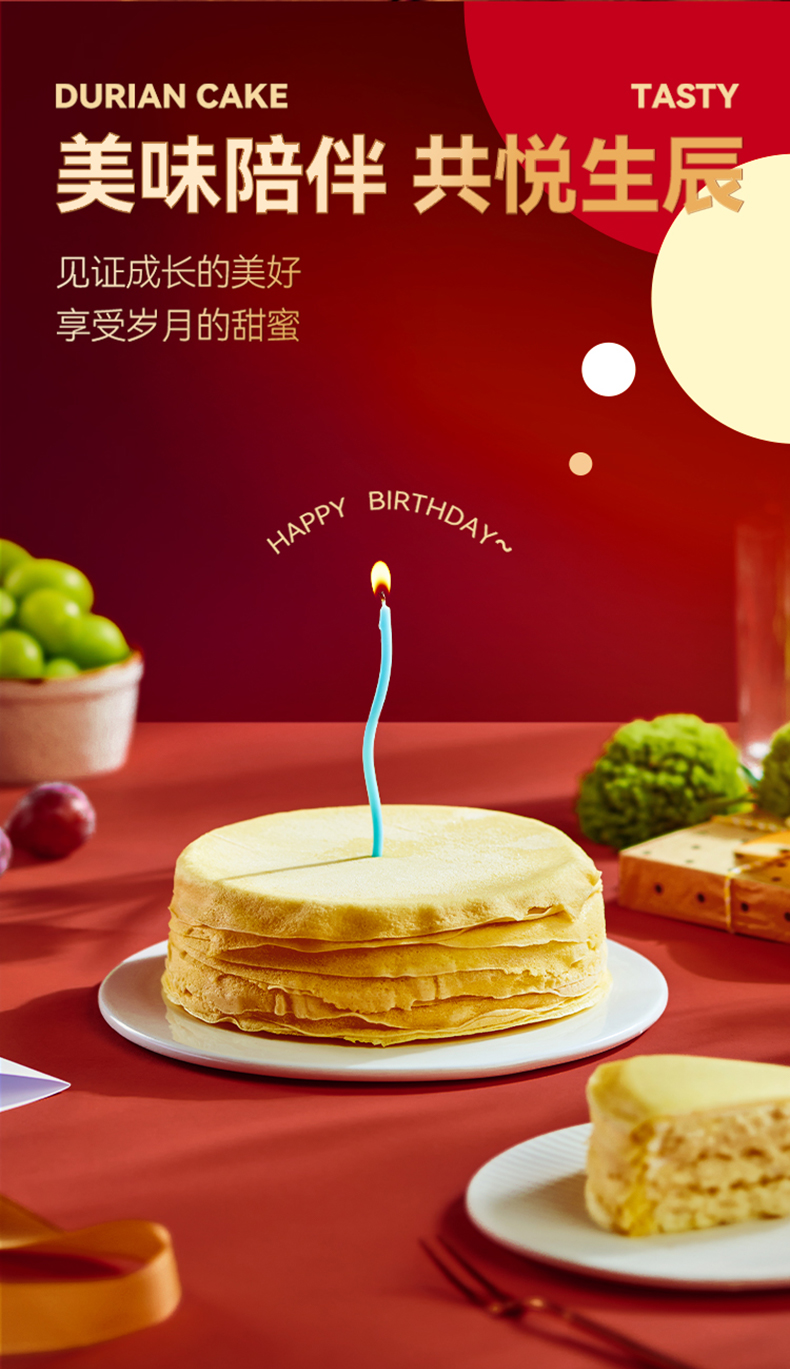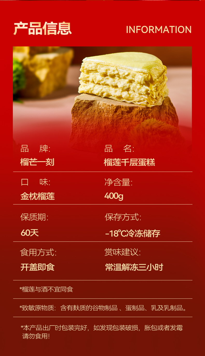 【买一送一】榴芒一刻榴莲千层新年生日蛋糕400g动物奶油青涩自然抹茶千层蛋糕420g GH