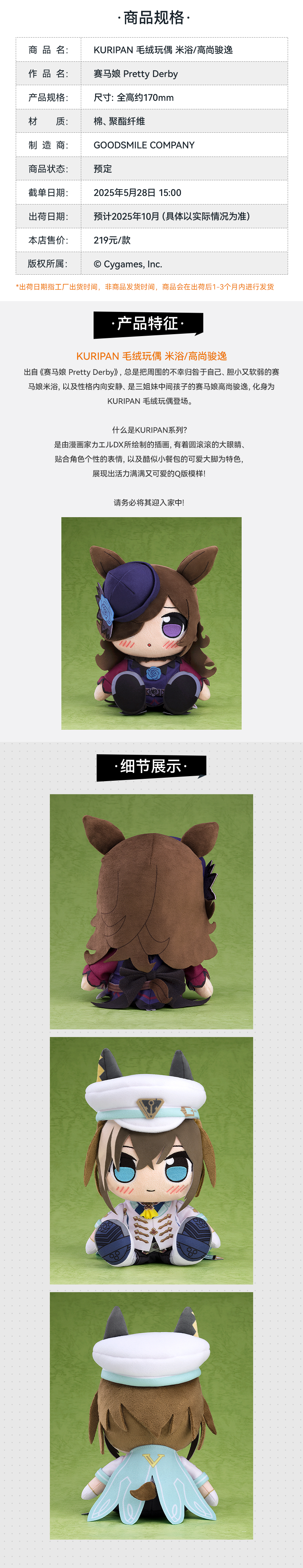 【GSC补款】KURIPAN 毛绒玩偶 米浴/高尚骏逸 赛马娘 Pretty Derby