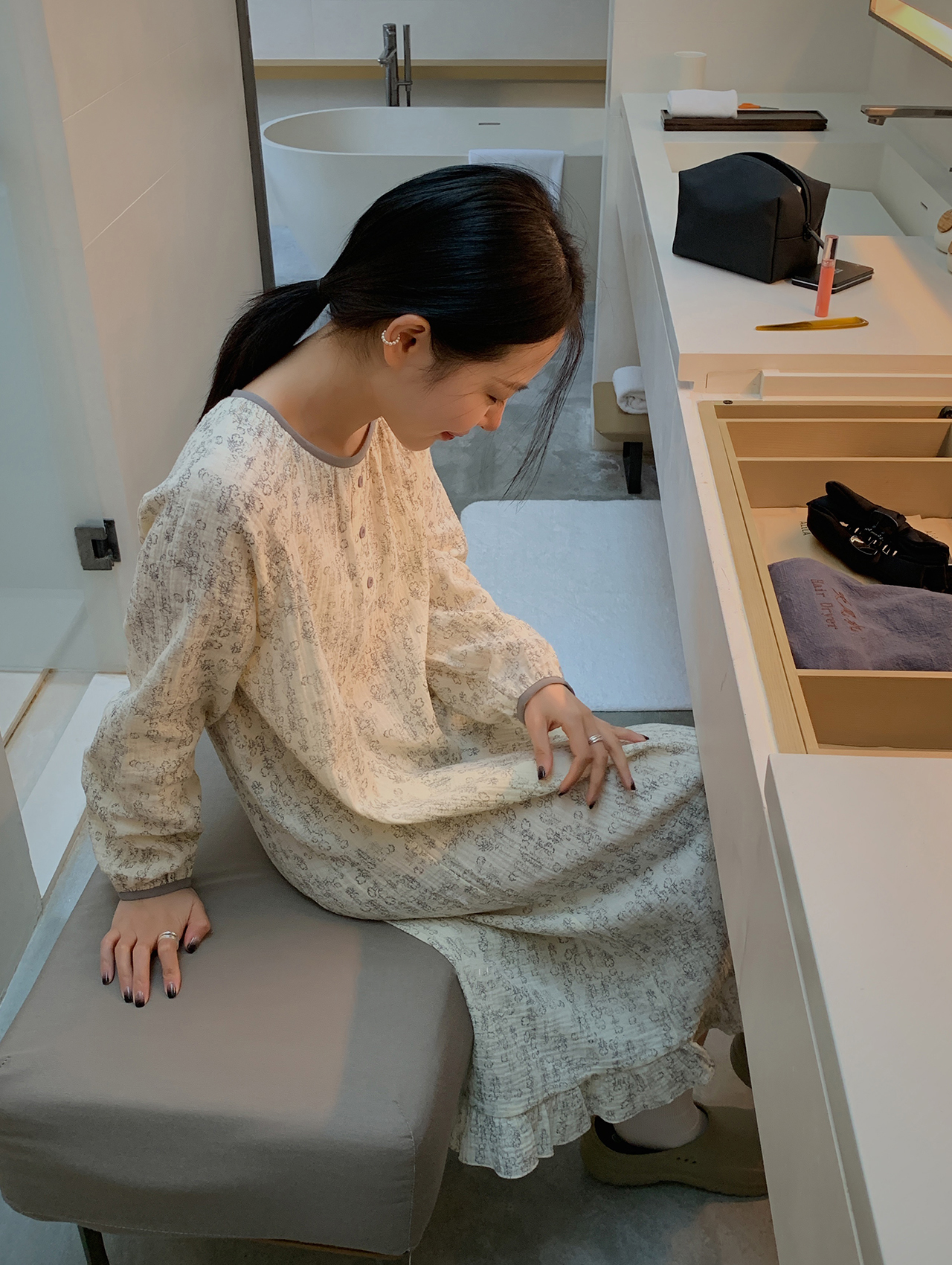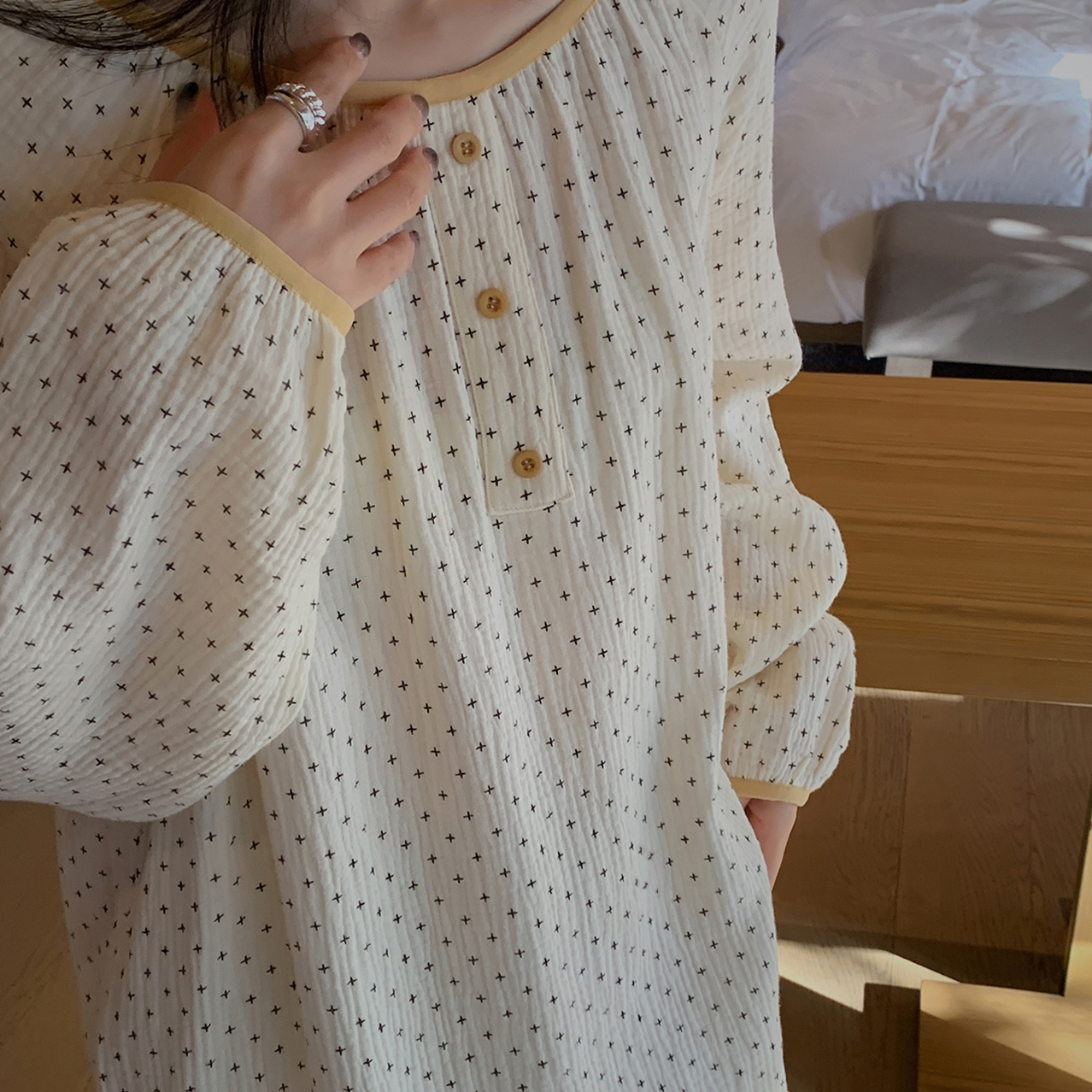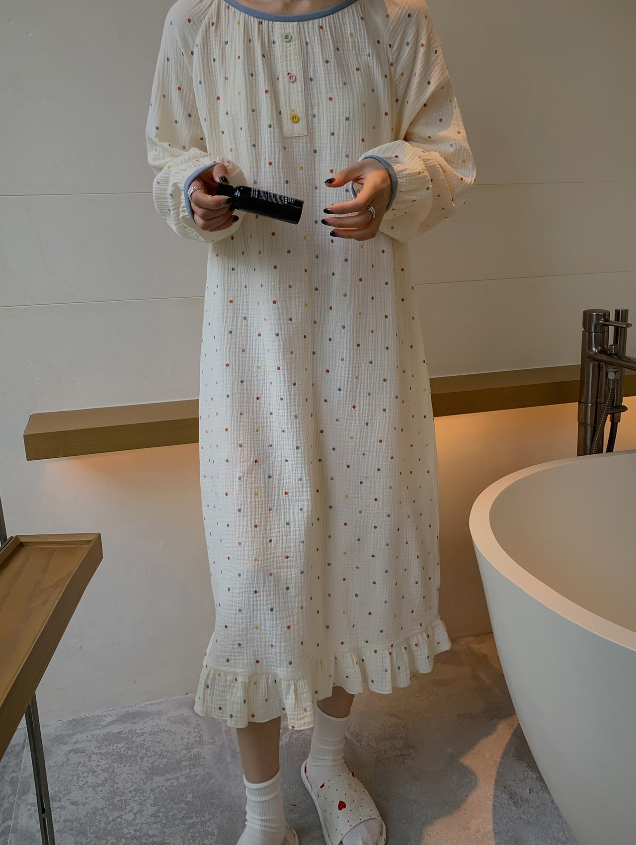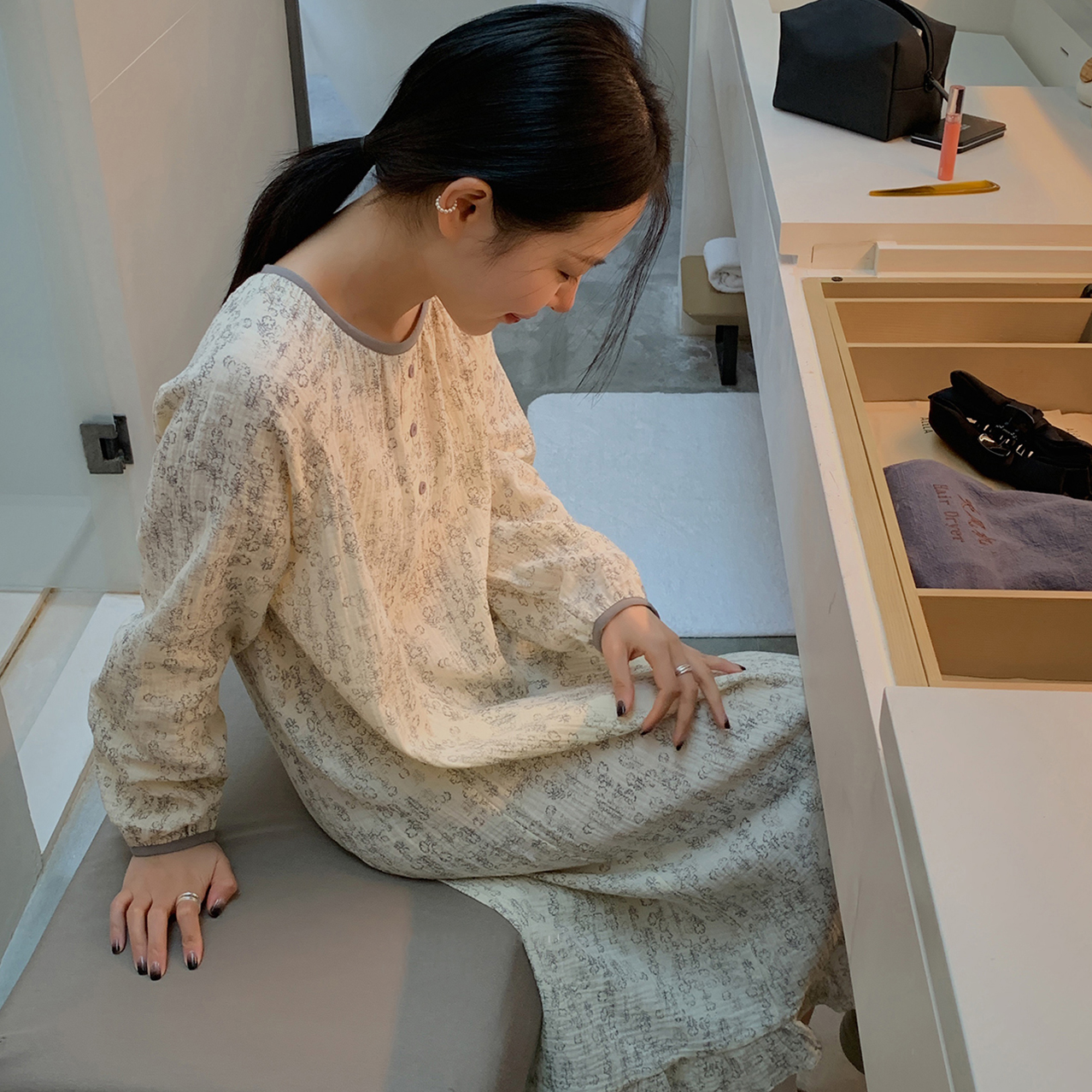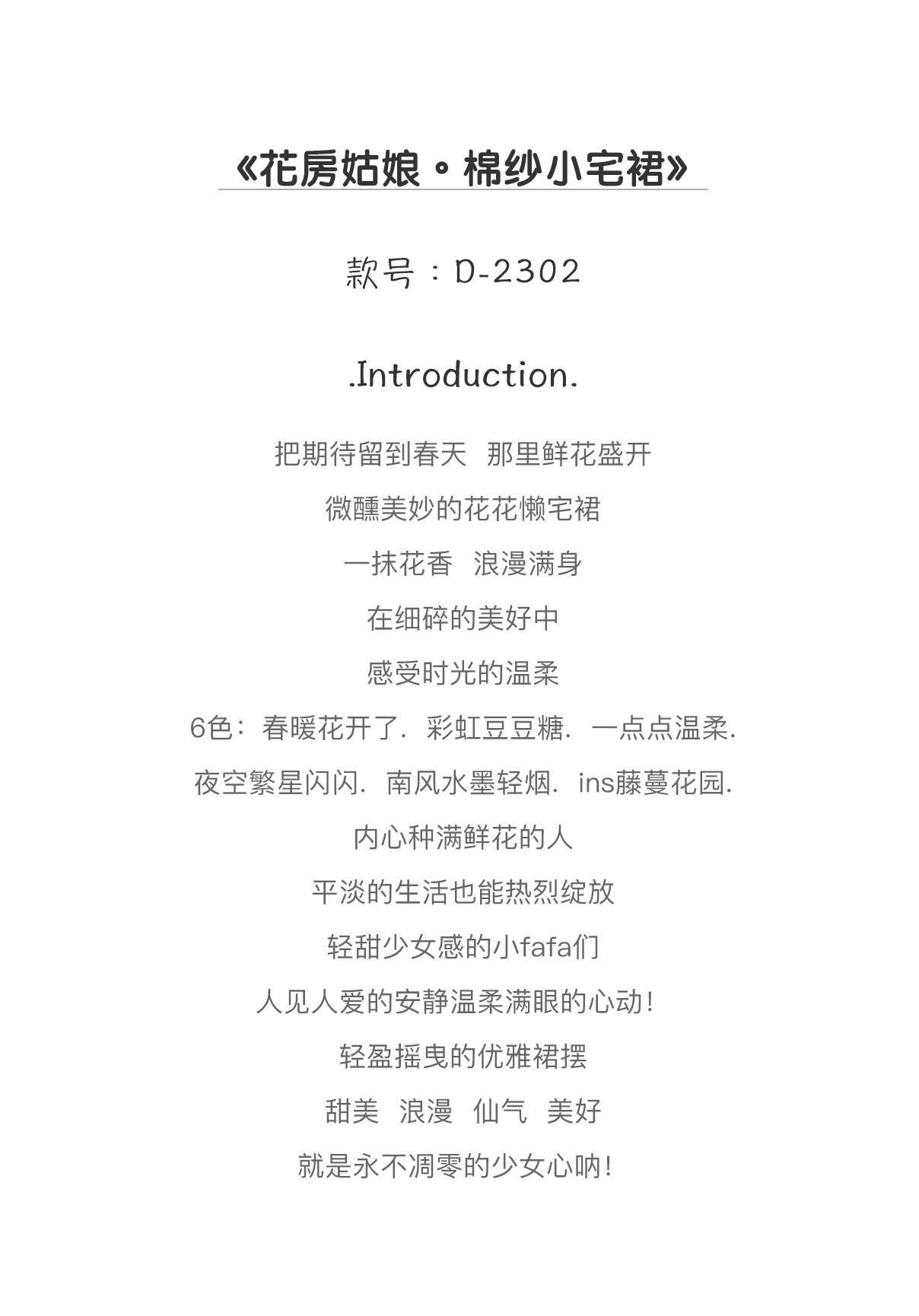 老米优品/ 认准正版哦~~~美美哒《花房菇凉棉纱小宅裙 》透气会呼吸的面料,夏天穿的家居裙好舒服~~很多色哦!Q230316A
