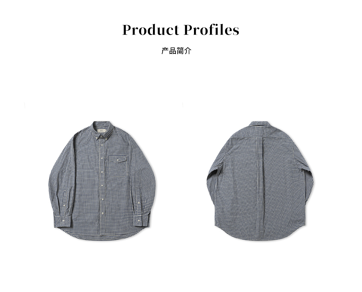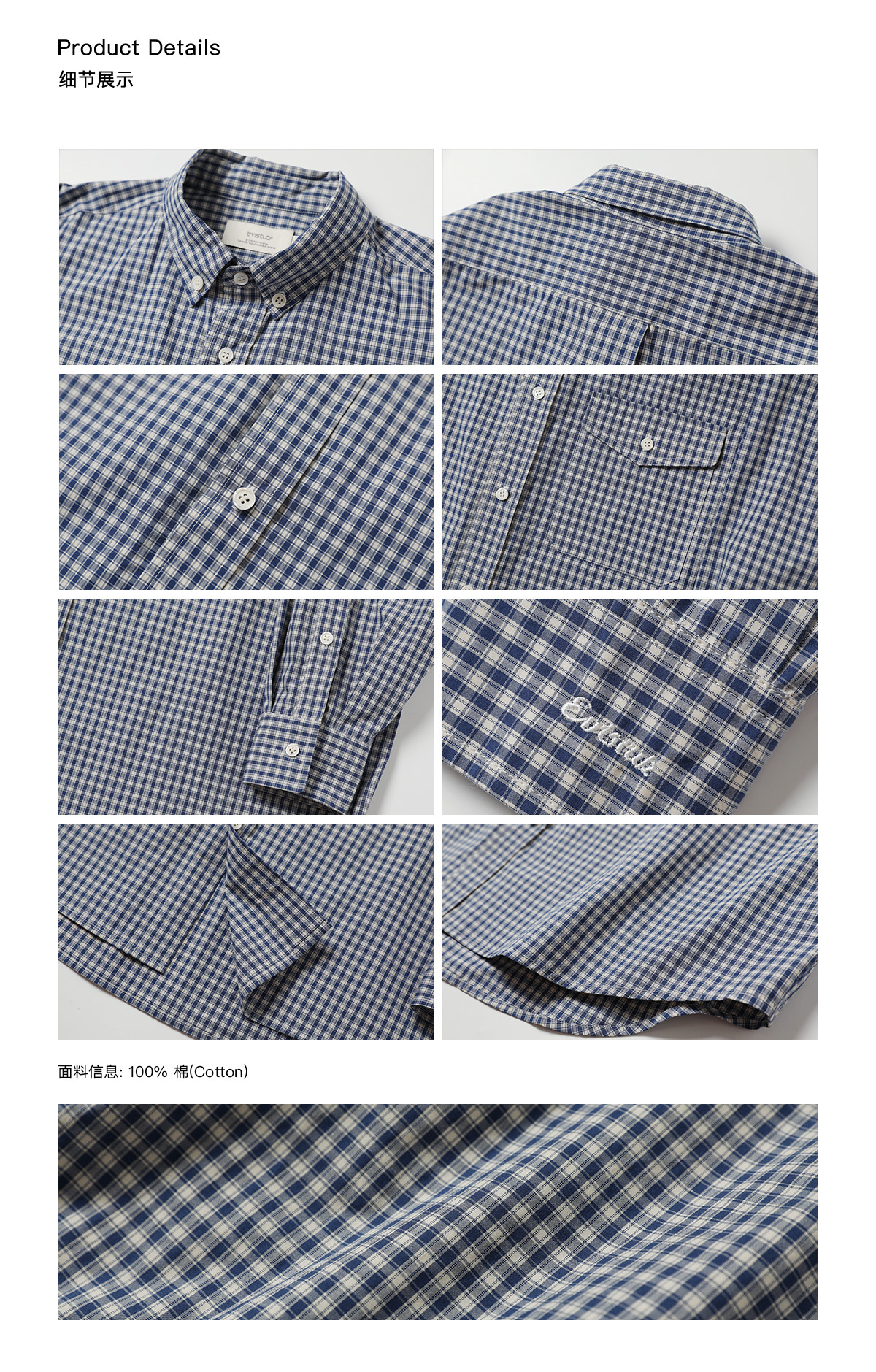 EviStub/E-4QCS538/全棉色织蓝白复古格子宽松廓形口袋翻领衬衫