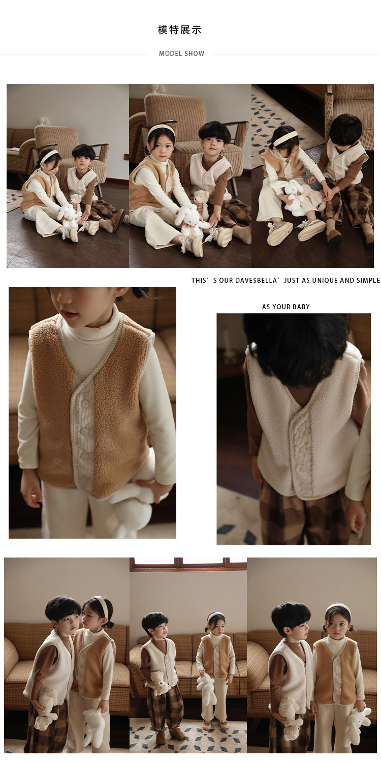 秋冬季儿童加厚马甲男女童宝宝中小童婴儿背心坎肩加绒马夹保暖