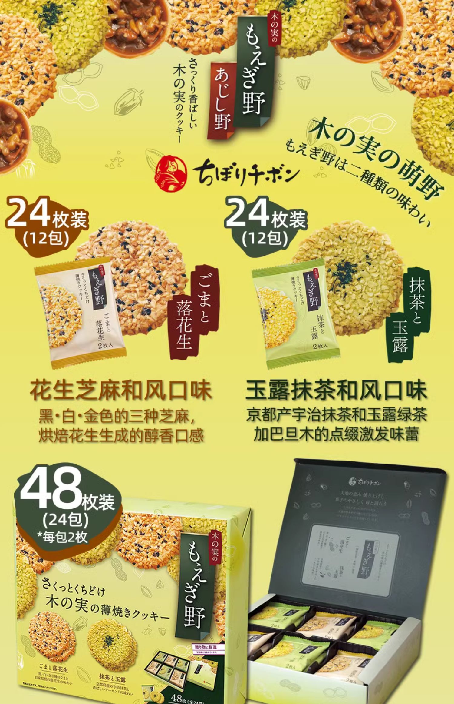 日本阡朋萌野盒装薄脆饼干48枚244.8g/055873 天然坚果搭配融合甜度刚好烹饪出的美味