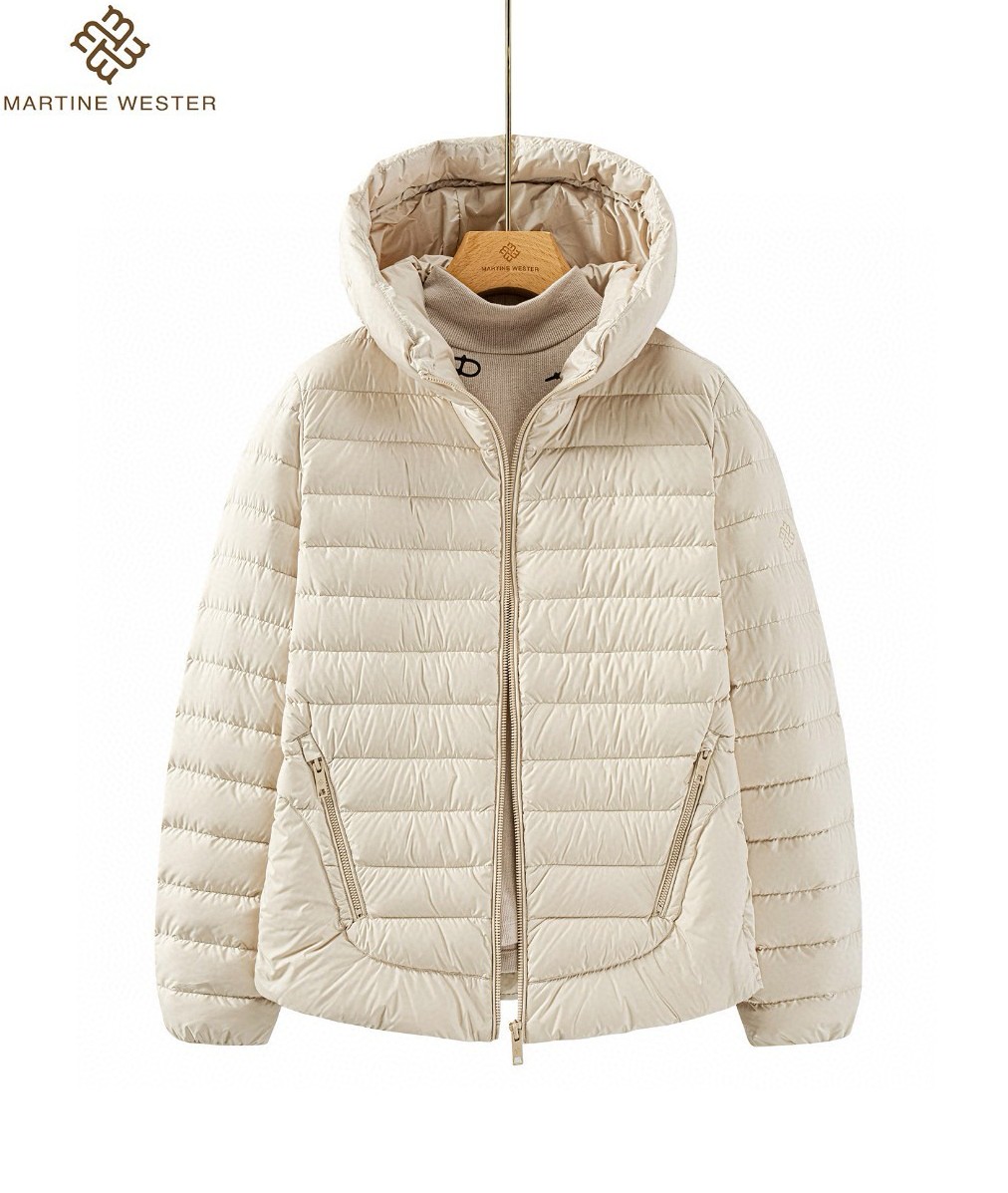 Martine Wester 女密克柔超高密度无胆防绒羽绒面料薄款连帽鹅绒服11383851
