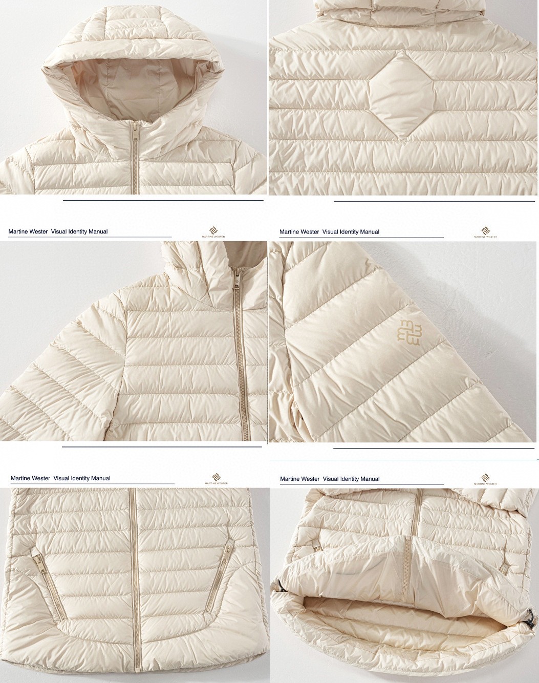 Martine Wester 女密克柔超高密度无胆防绒羽绒面料薄款连帽鹅绒服; 定制密可柔超高密度无胆棉感记忆面料(MONCL**供应商)可追溯新国标90绒子含量安心鹅绒(一件一二维码电子身份证)YKK定制拉链!