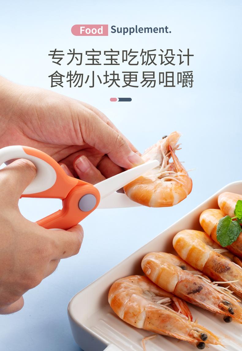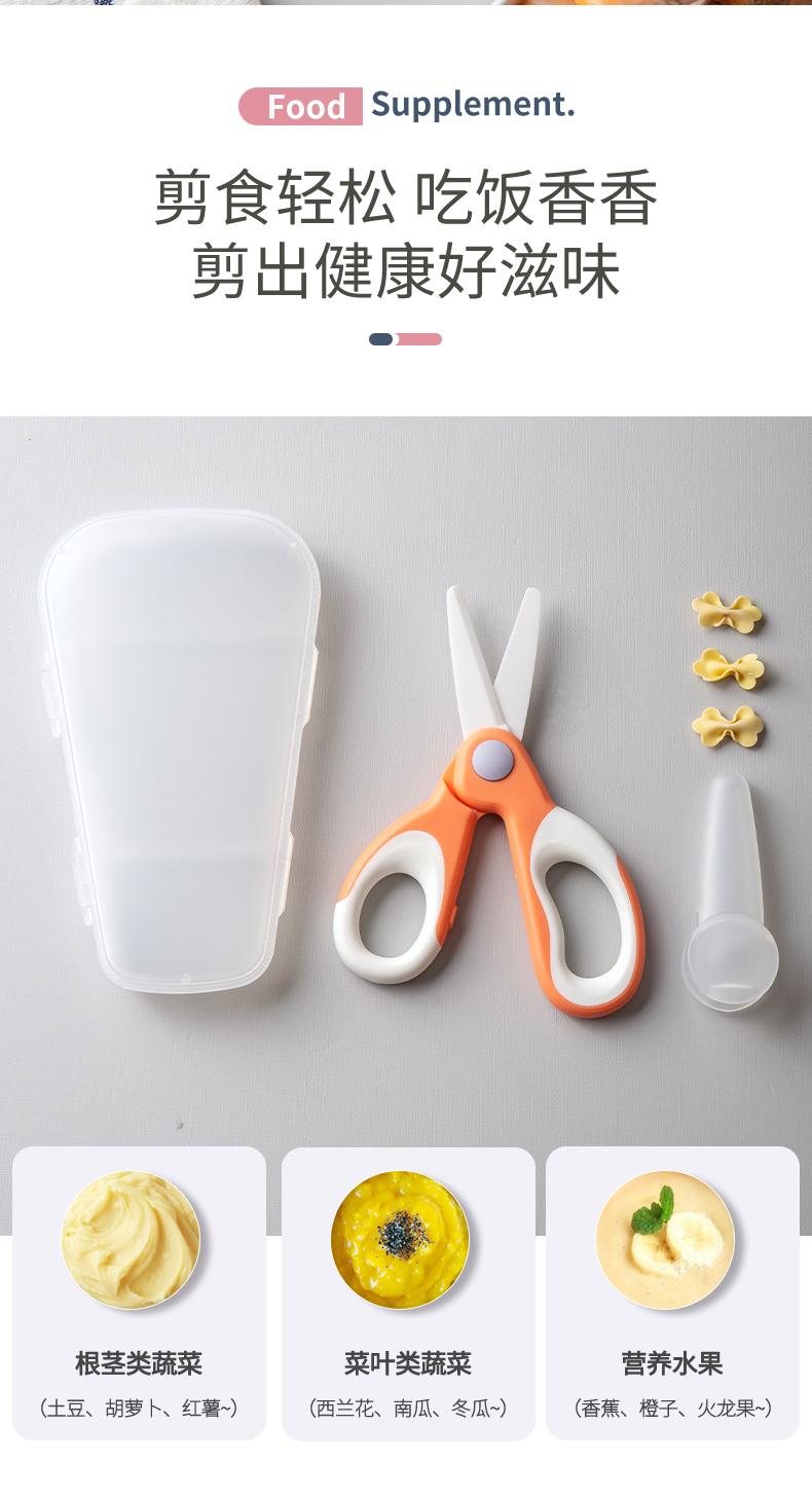 儿童小剪菜肉吃饭食品工具辅食剪刀宝宝 婴儿食物剪外带便携 陶瓷