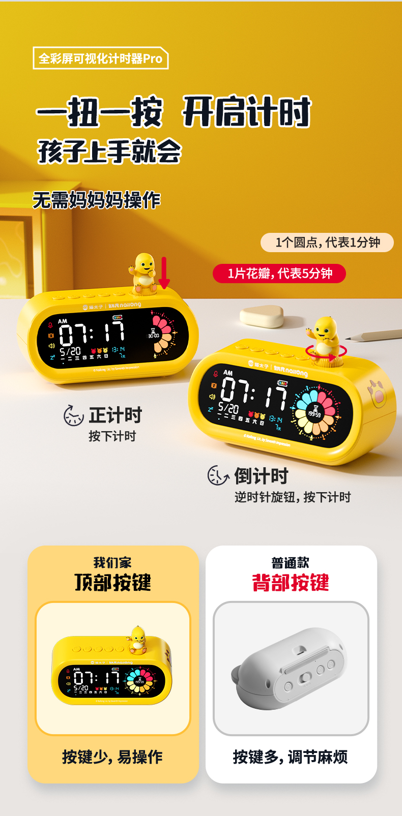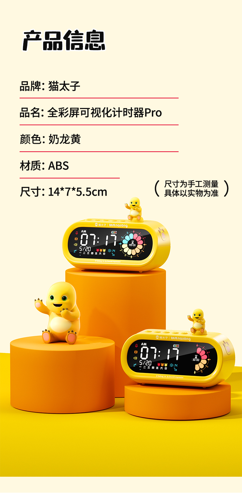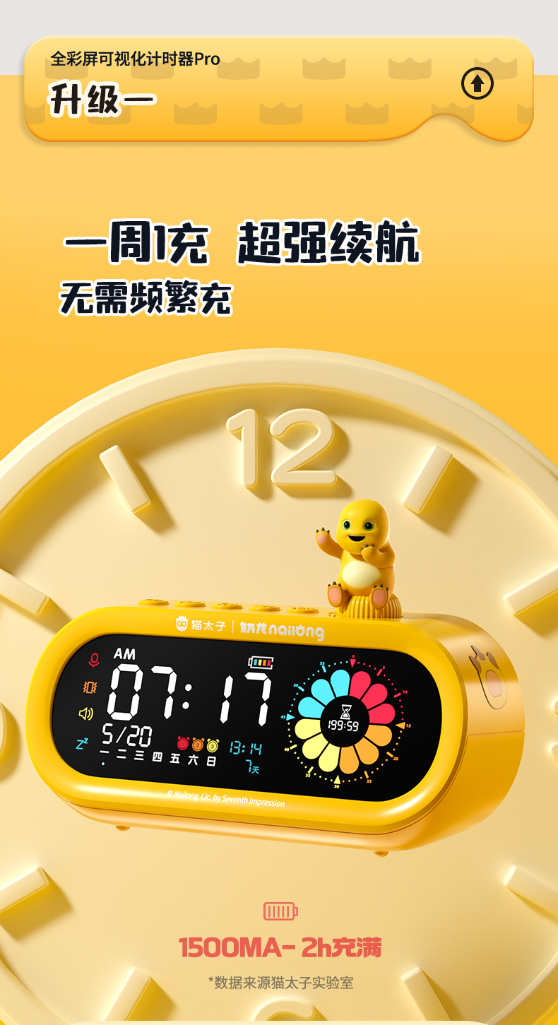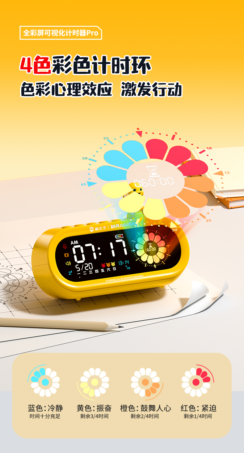 【奶龙联名】猫太子全彩屏可视化计时器小学生自律神器儿童学习专用时间管理器