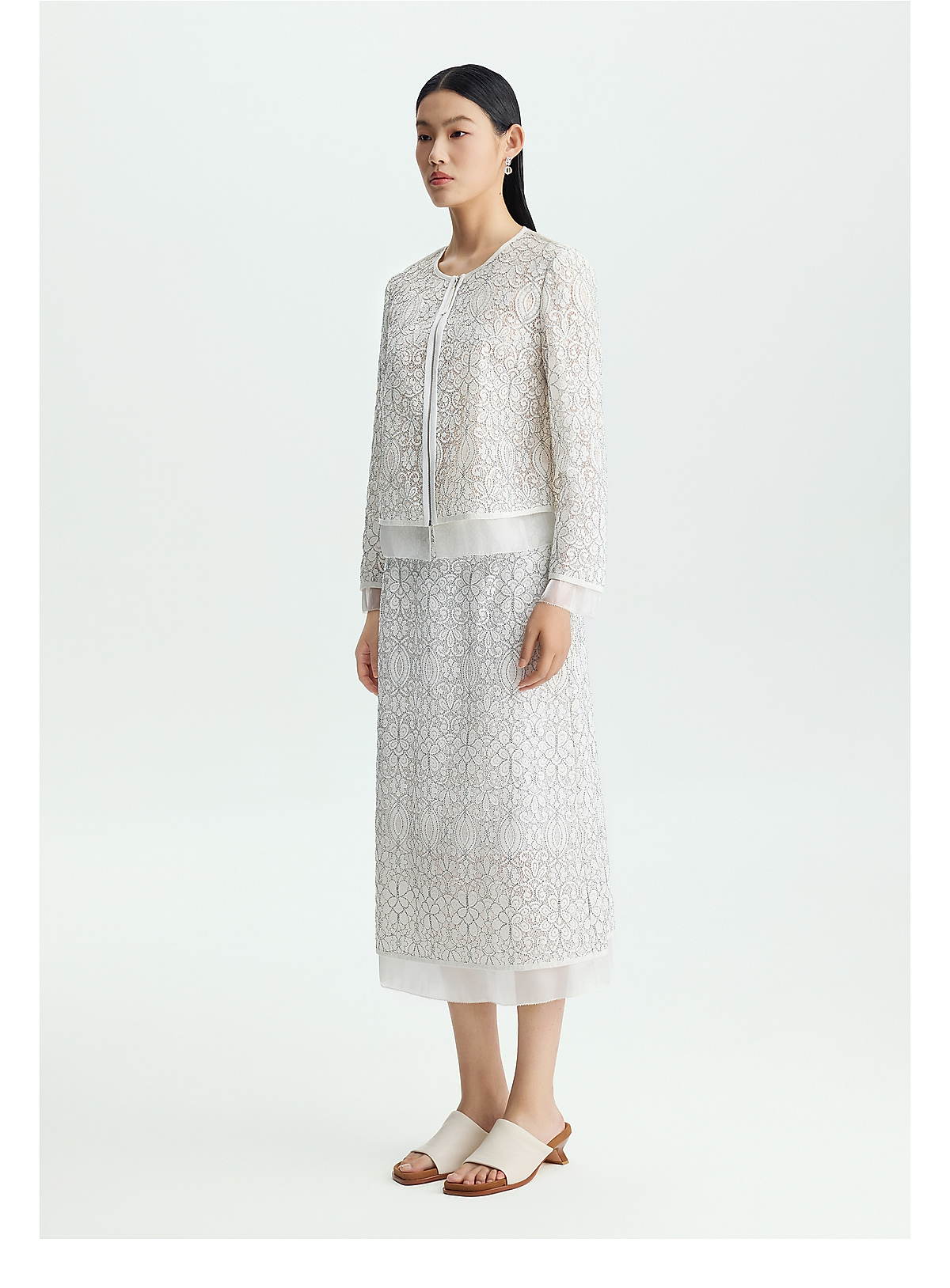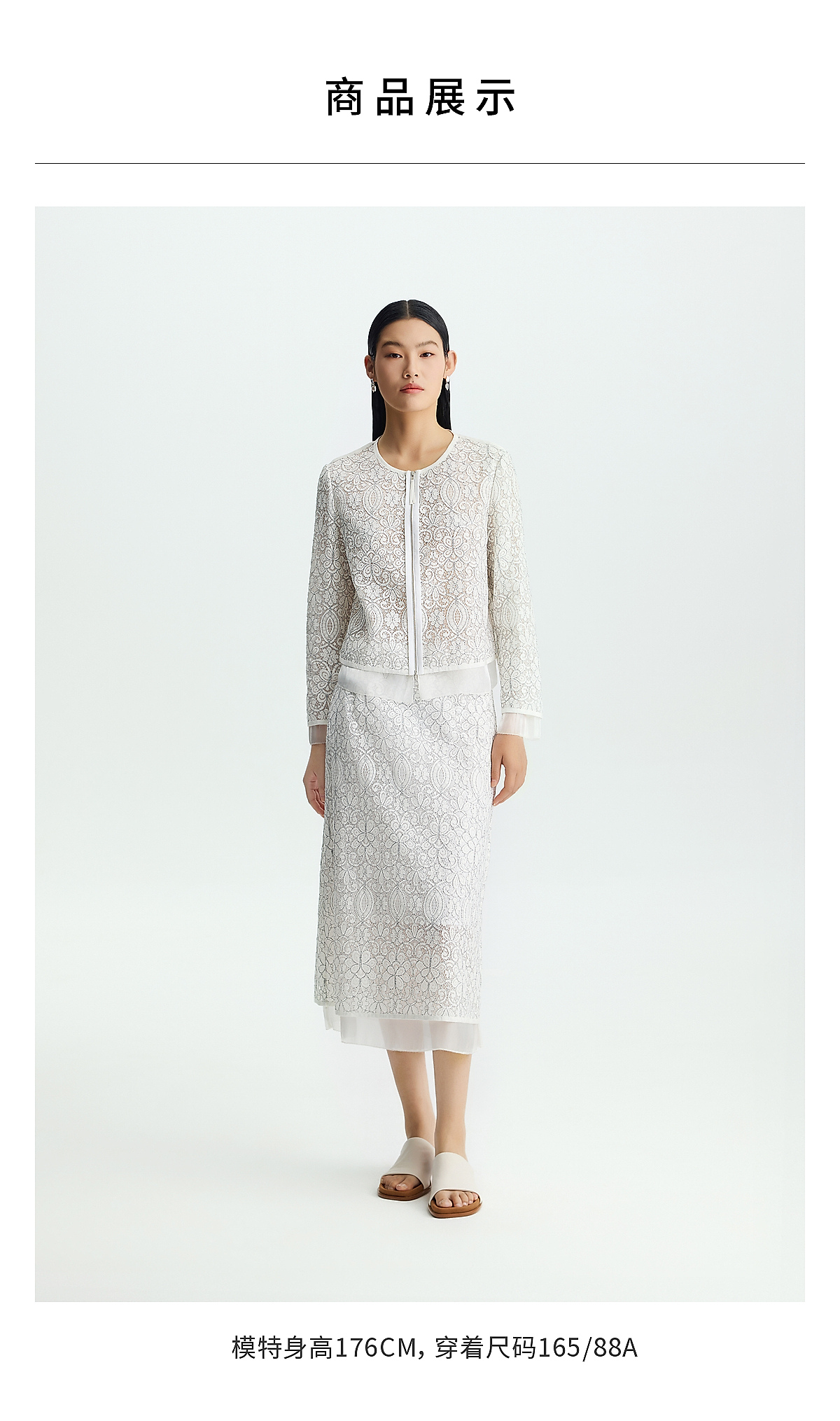 商场同款PURE TOUCH女装26春夏蕾丝短外套圆领拉链门襟棉混纺上衣