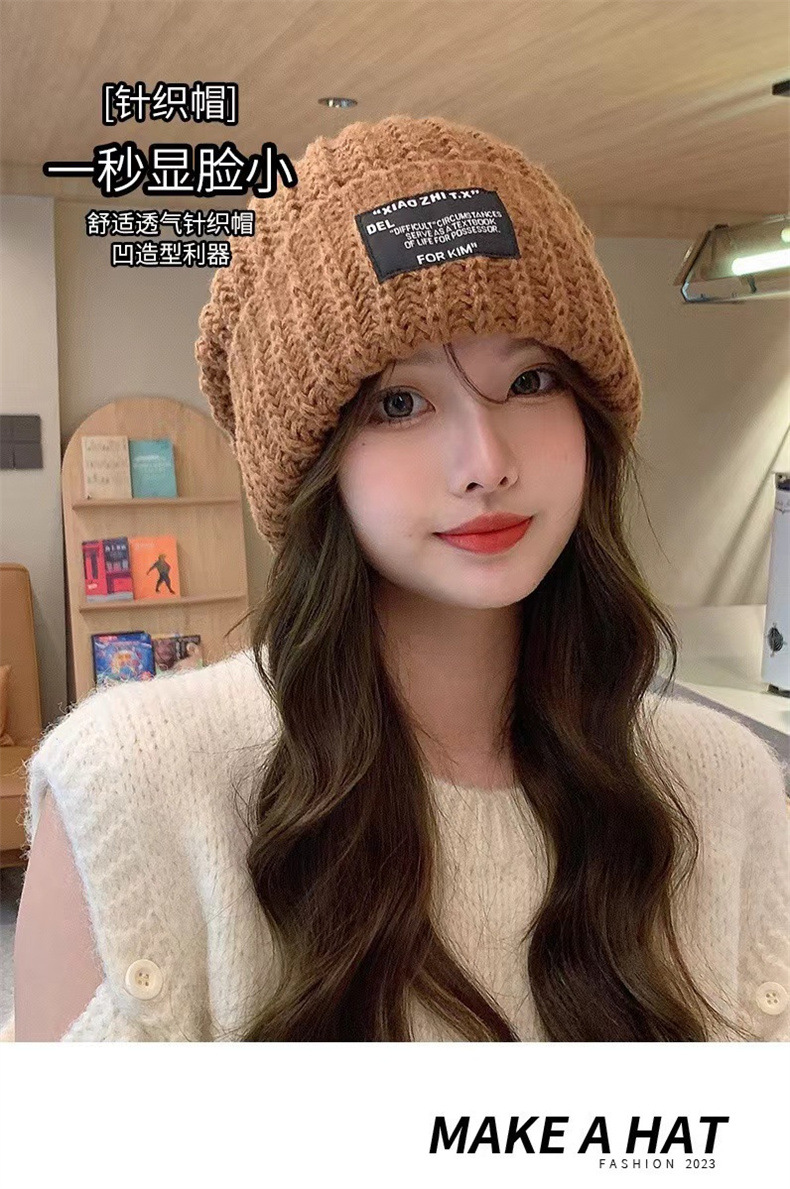 好看又百搭【一秒显脸小!舒适透气针织帽】亲肤柔软,秋冬季新款帽子女网红时尚百搭大头围保暖堆堆帽针织毛线加厚帽女。rb