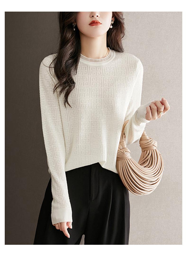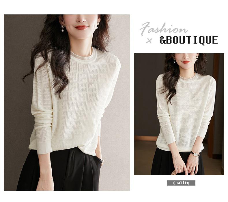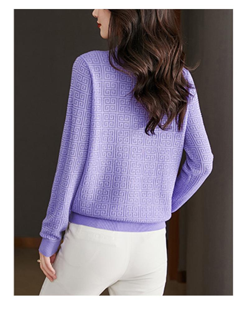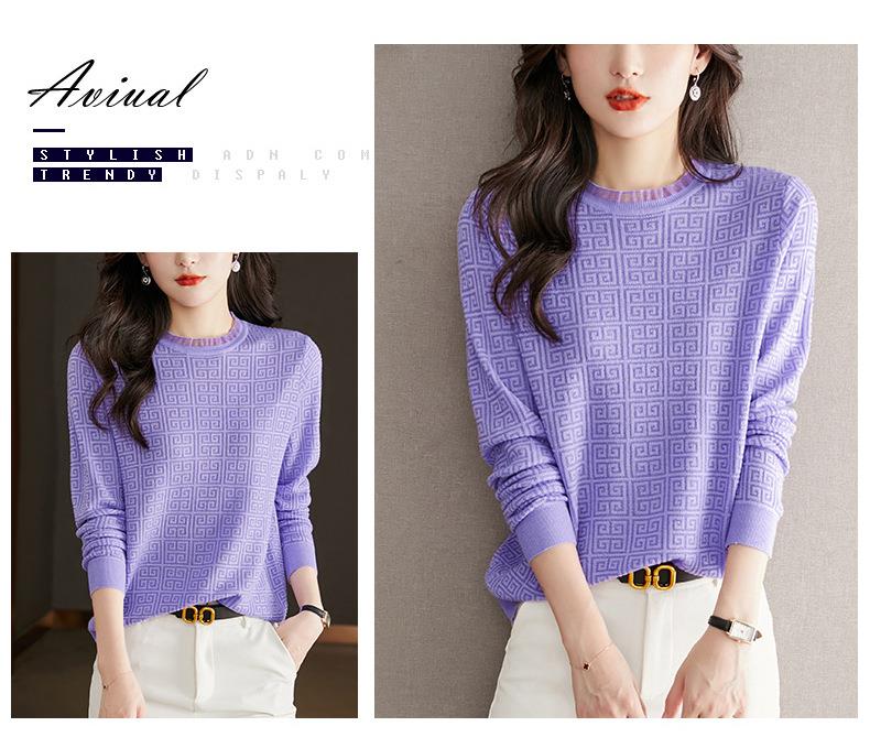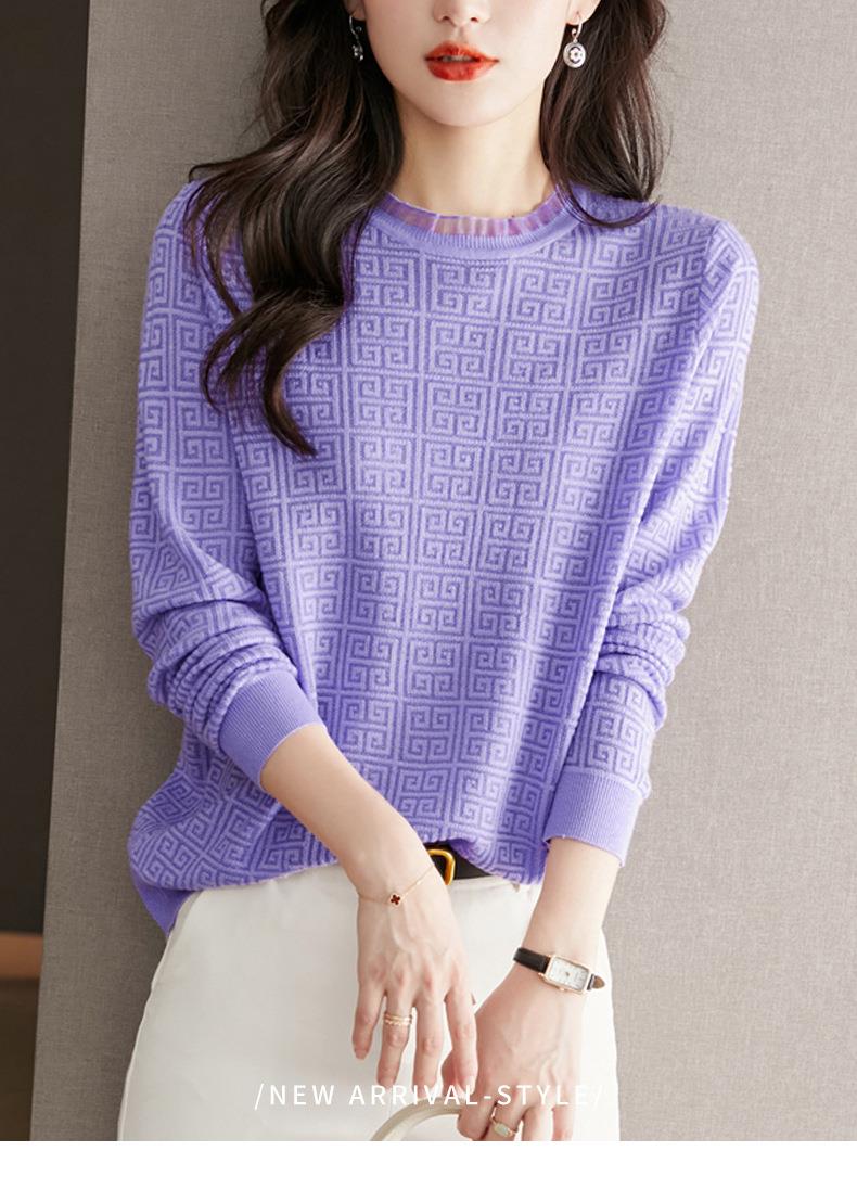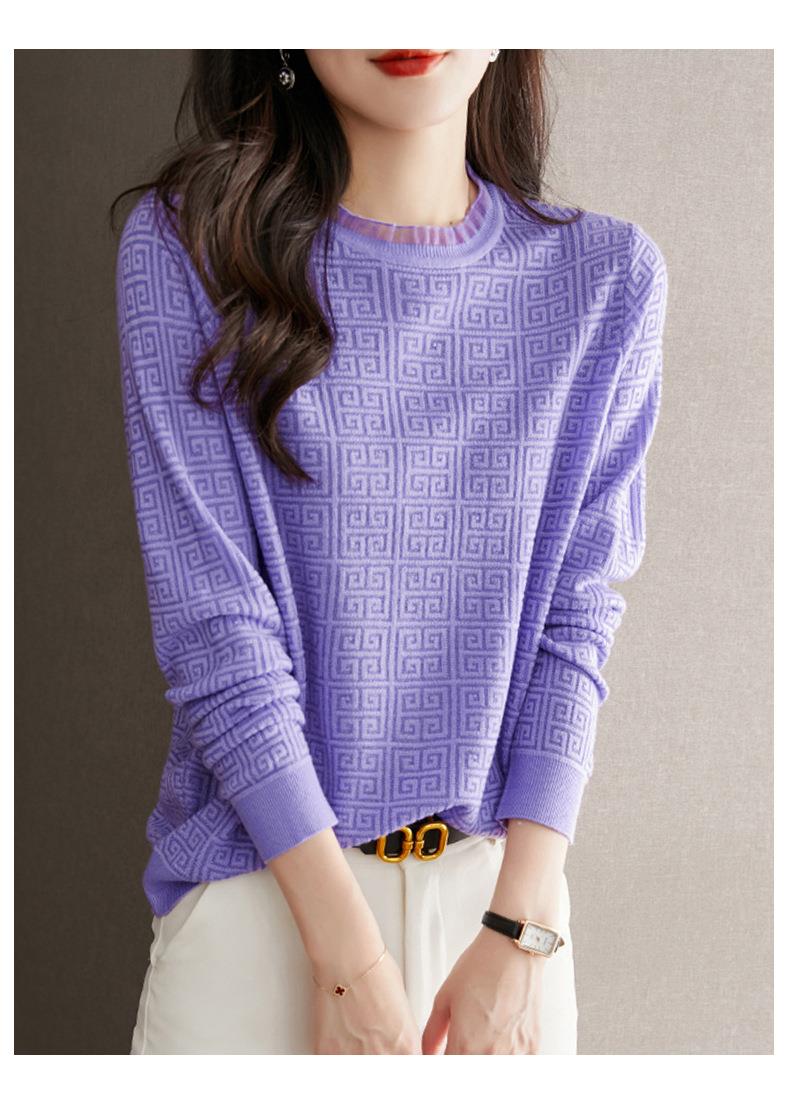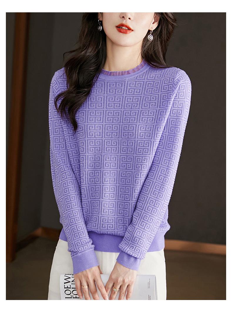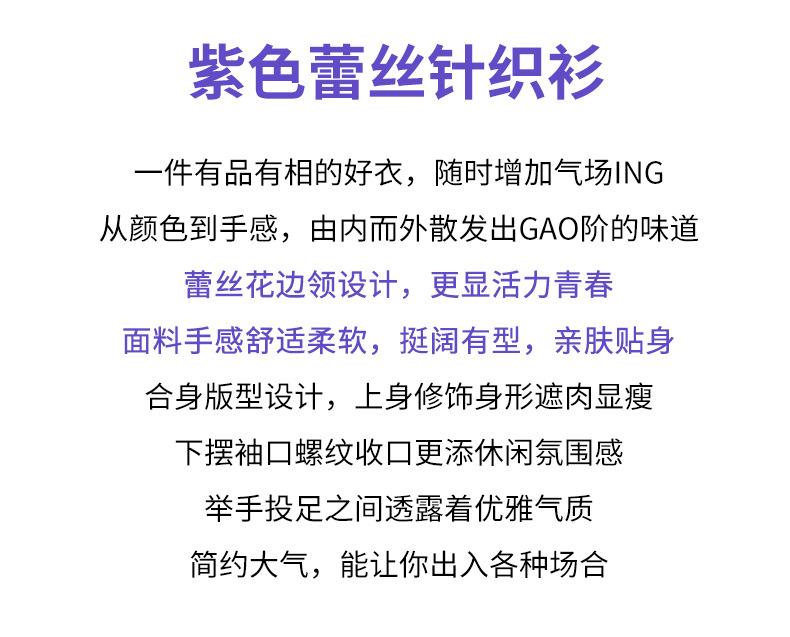 2023春装新款紫色蕾丝针织打底衫女长袖薄款气质内搭毛衣上衣