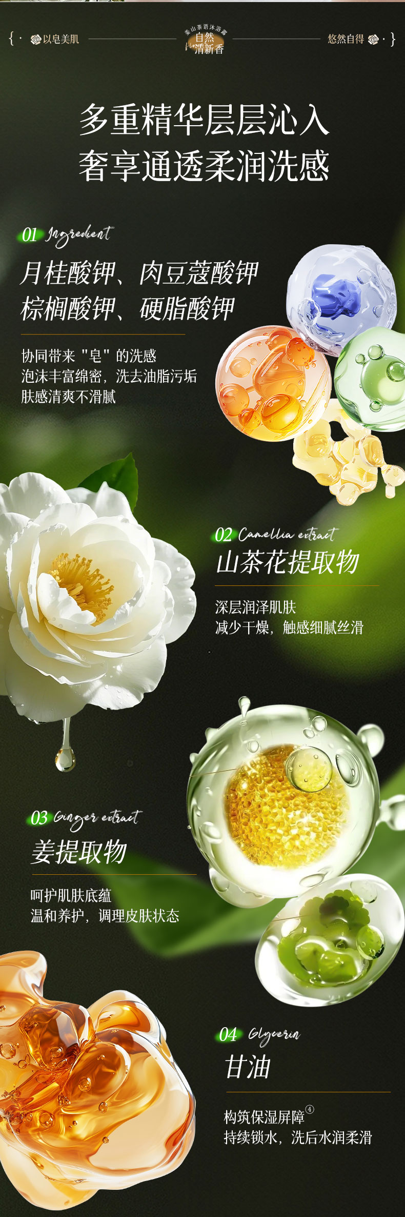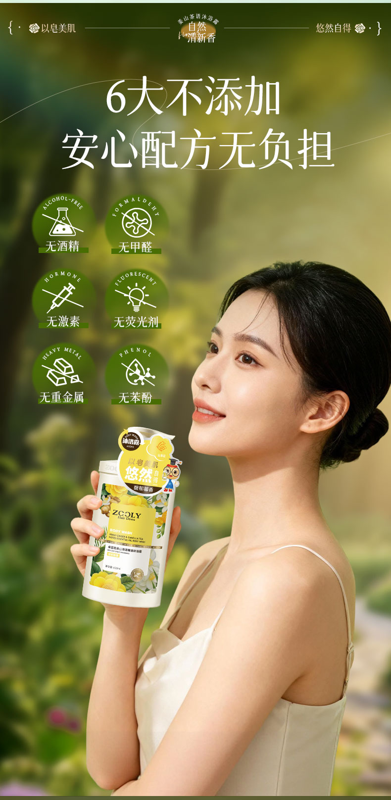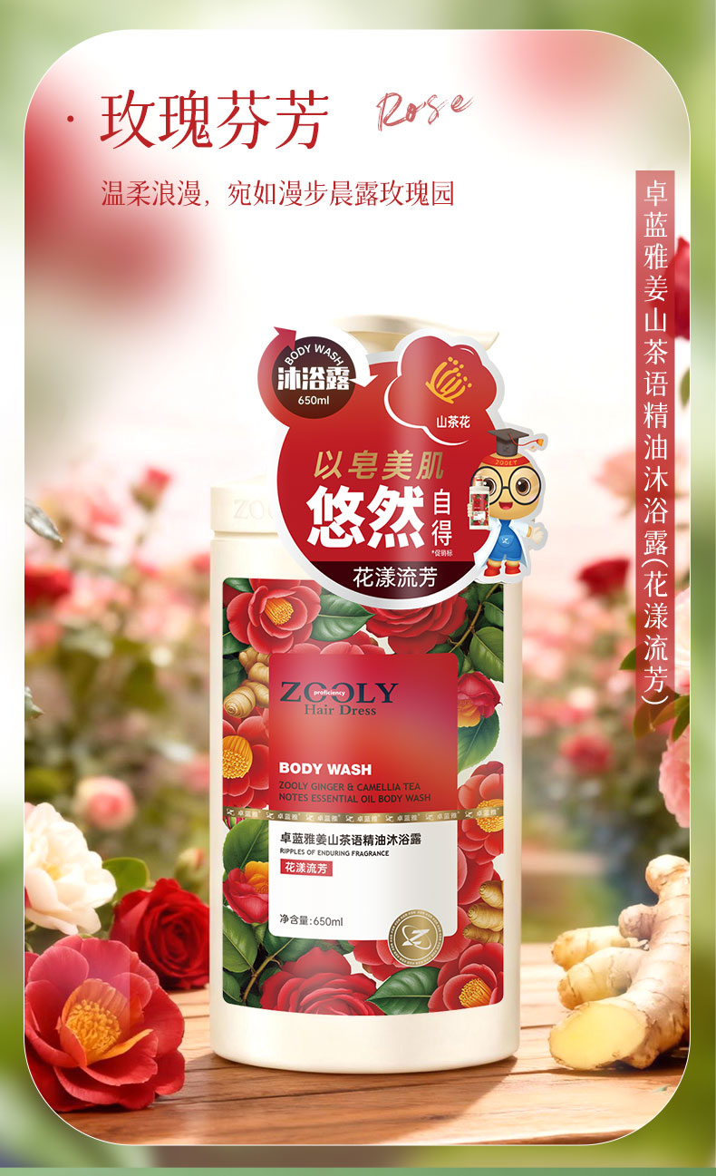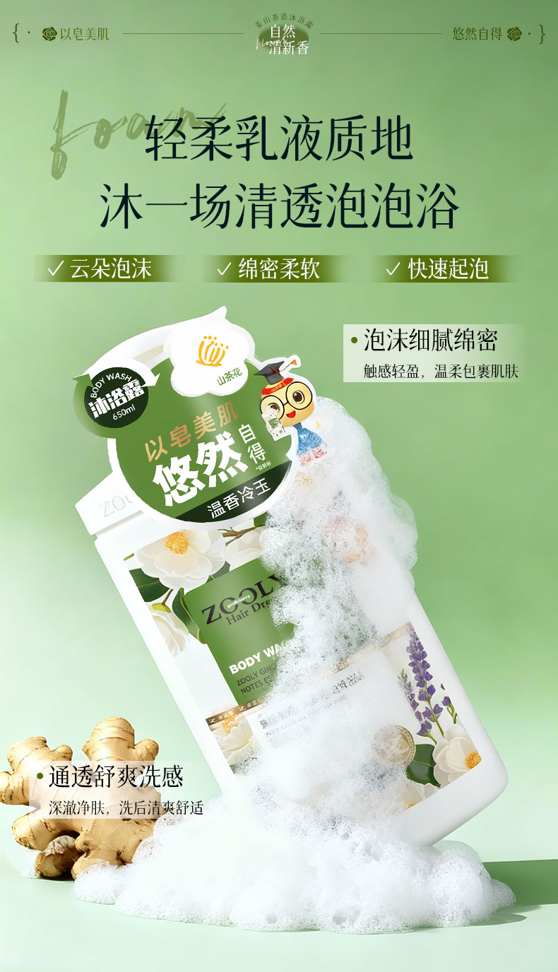 新品上市 卓蓝雅姜山茶语系列精油沐浴露650ml 滋润不假滑 洁净不拔干