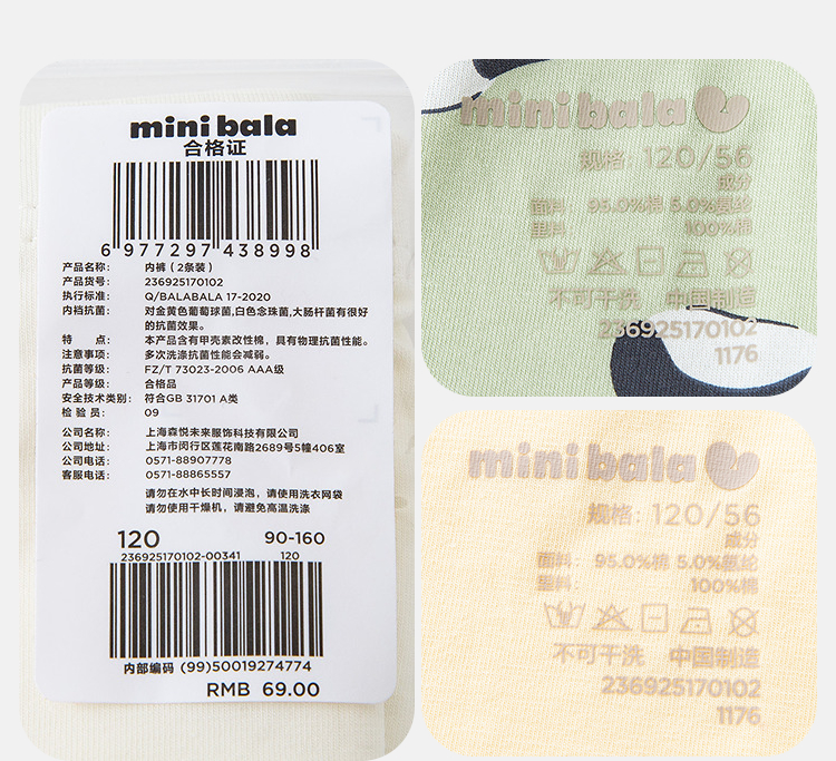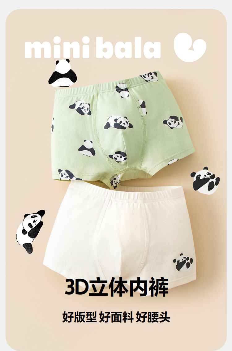 【2条装】迷你巴拉男童内裤棉感舒适透气不夹pp宝宝四角短裤