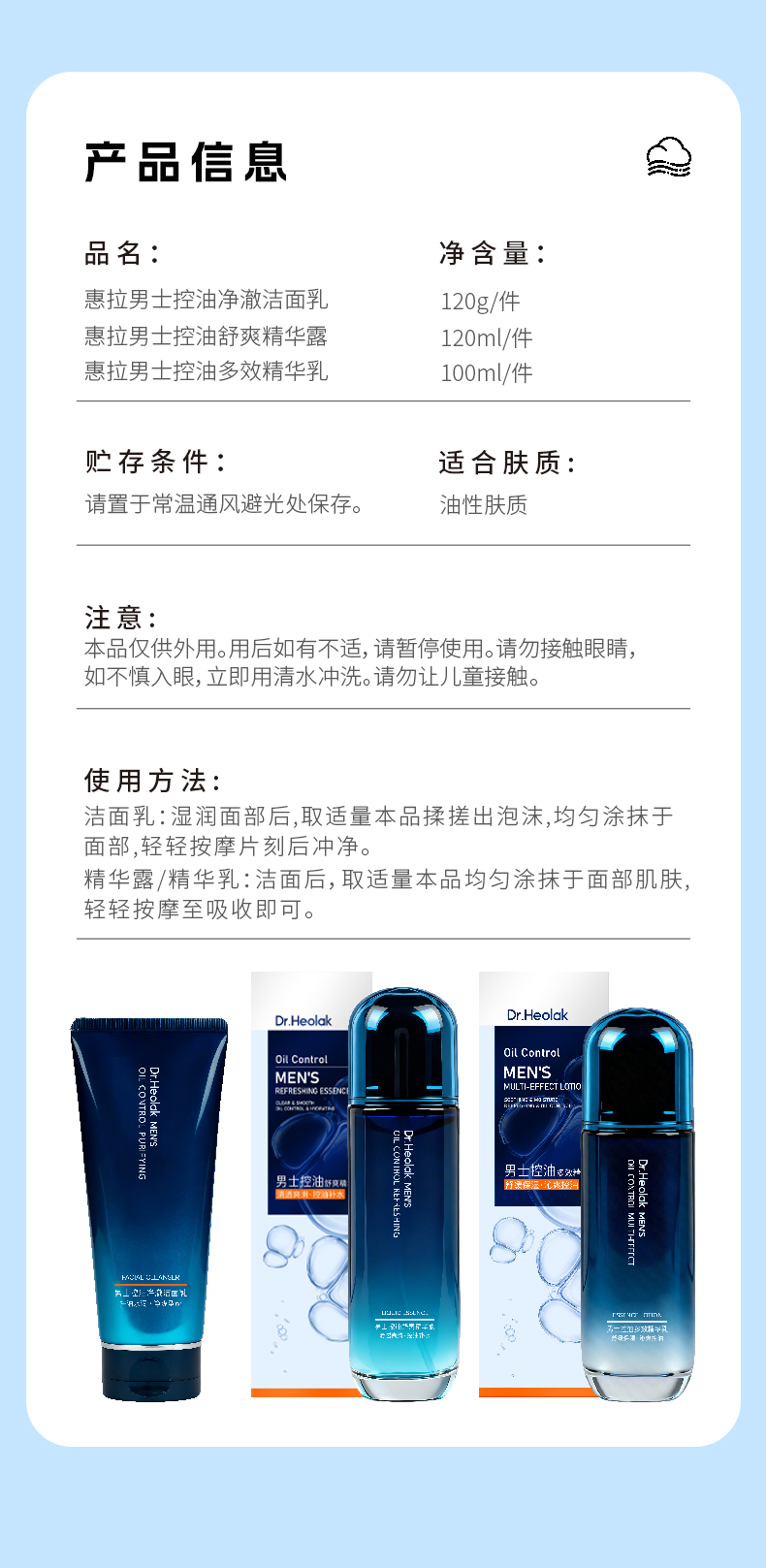 惠拉男士控油舒爽精华露120ml(250947)