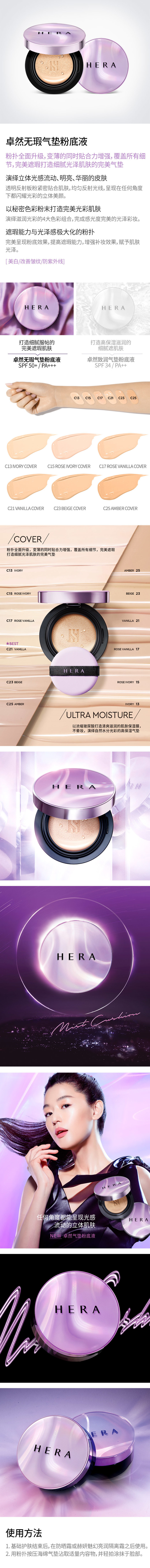 韩国Hera赫拉新款卓然致润气垫bb霜 遮瑕提亮SPF34 PA++(15g+15g替换装)21#亮白色 包邮