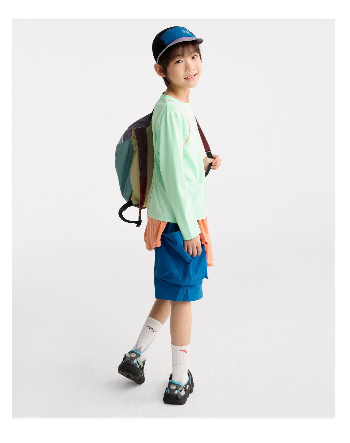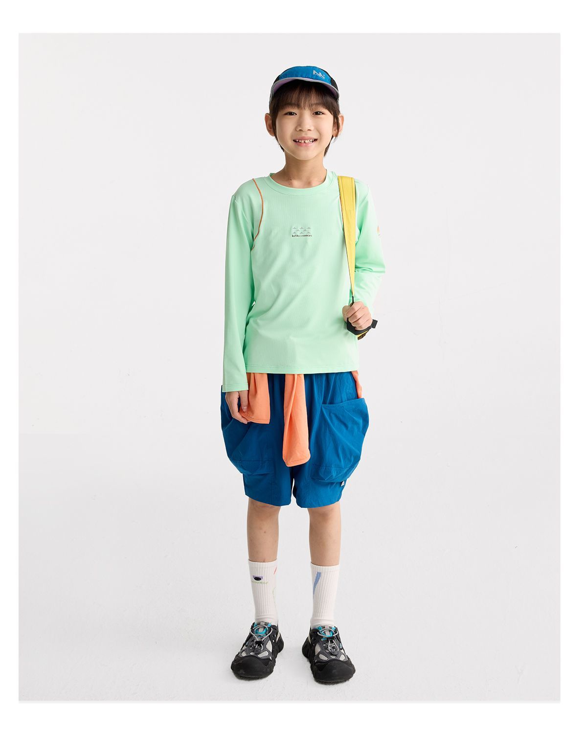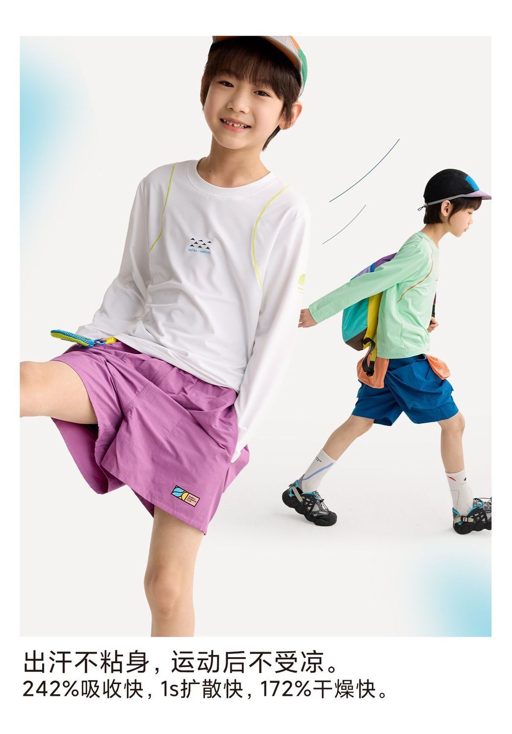 咕噜日记儿童轻跑格透气长袖T恤2026春季男女童速干轻薄运动打底