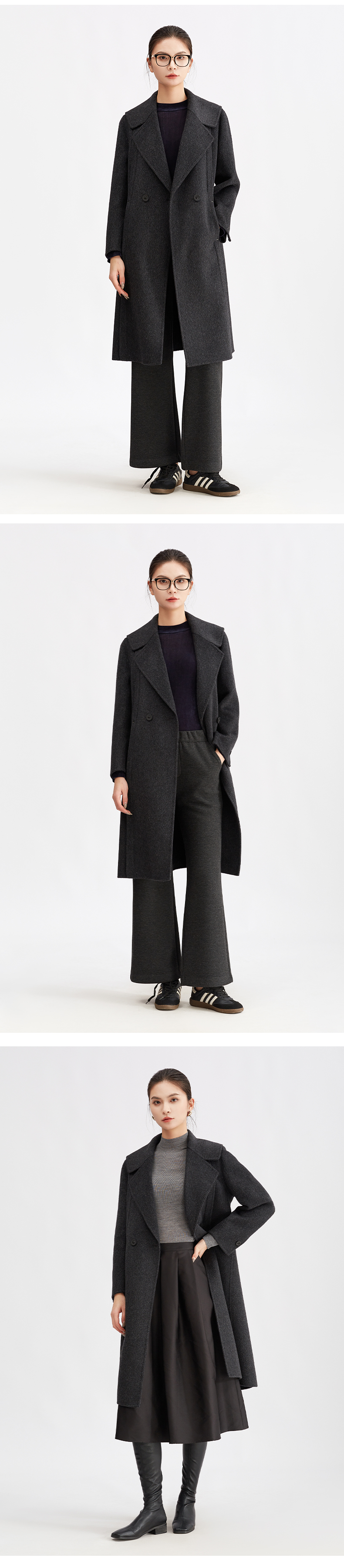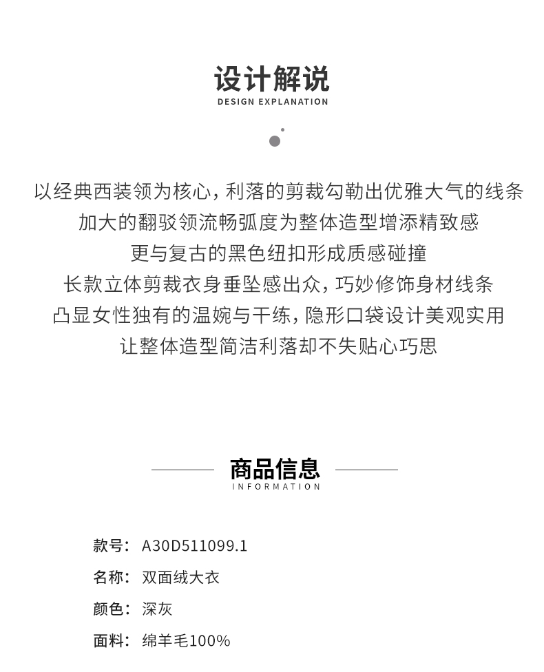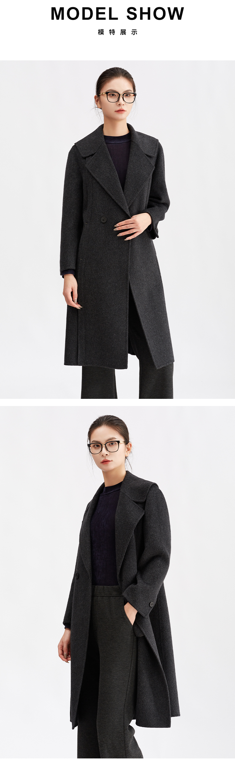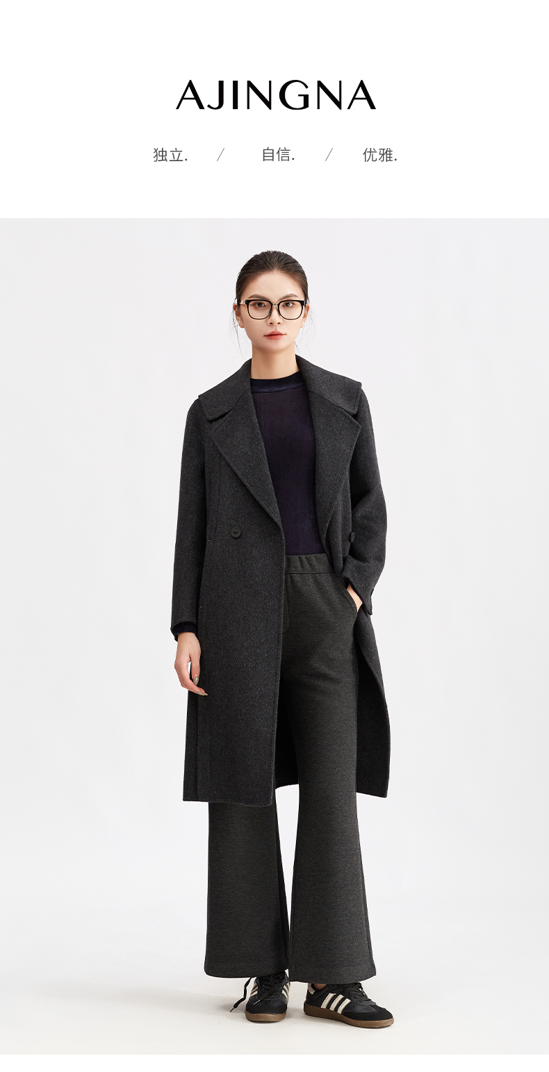 【商场同款】阿菁娜冬季新款复古感长款双面绒大衣加大翻驳领廓形垂坠修饰身形A30D511099.1