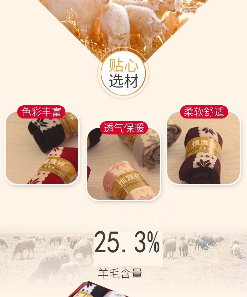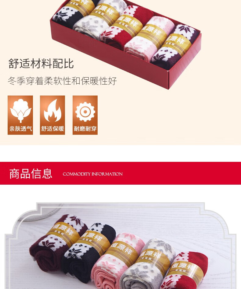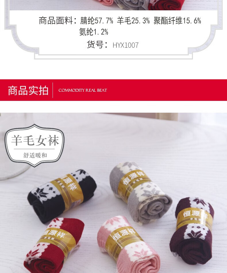 恒源祥HYX1007羊毛女袜 5双装