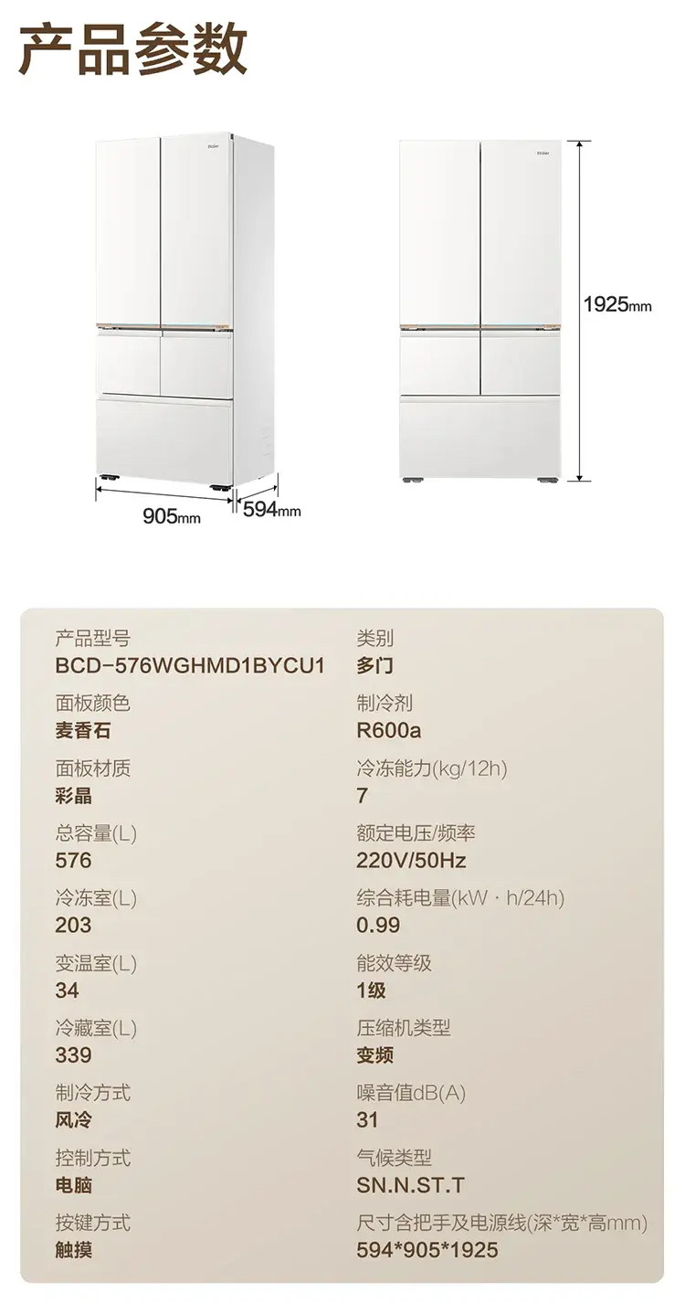 海尔(Haier)冰箱 BCD-576WGHMD1BYCU1
