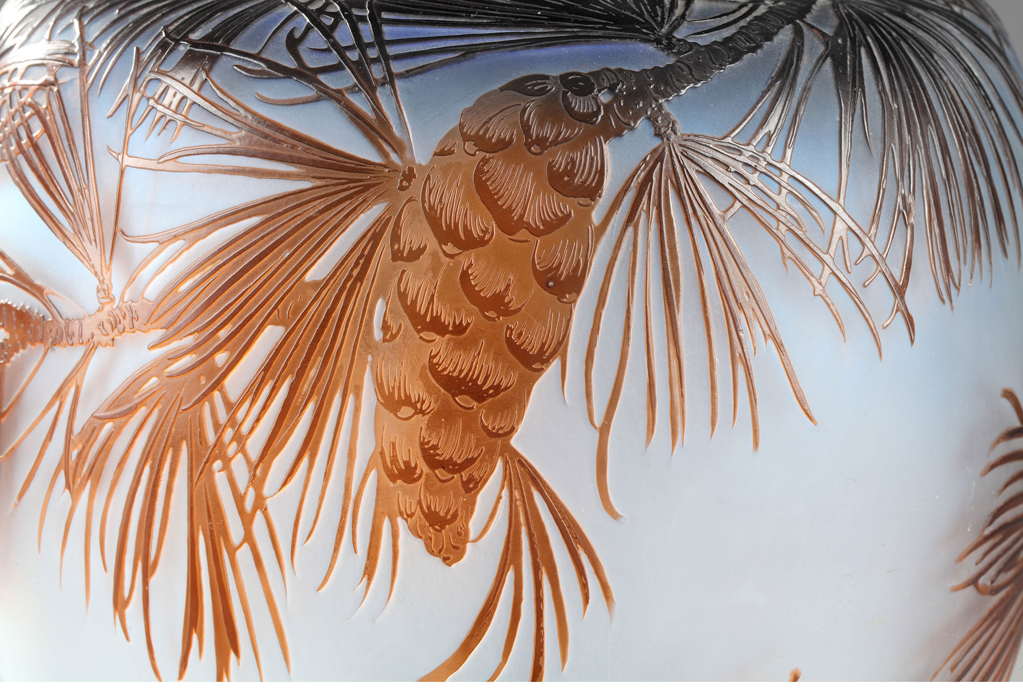 独角鹿西洋古董法国南锡派工坊签名松果主题多层水晶瓶家居摆件