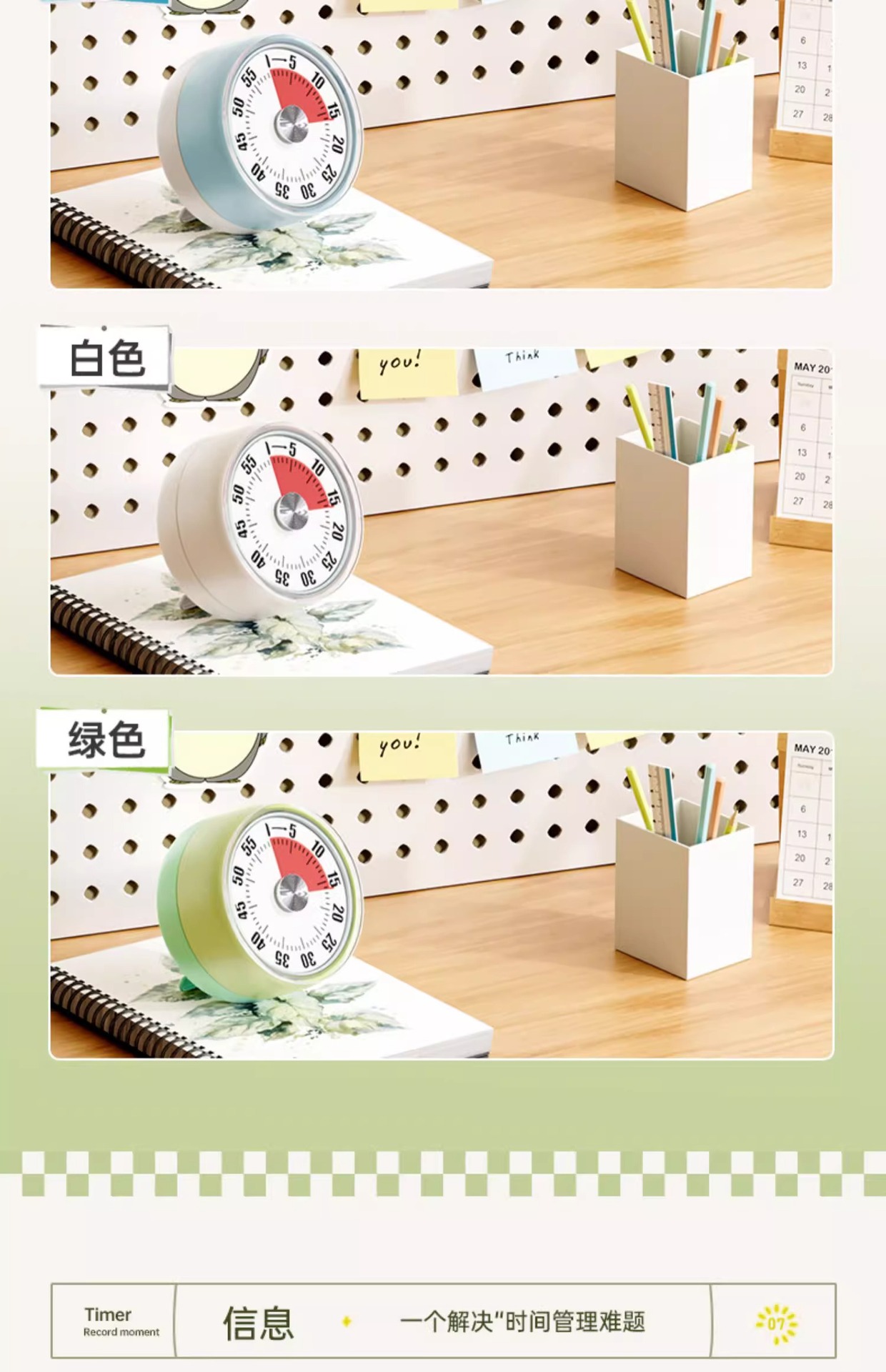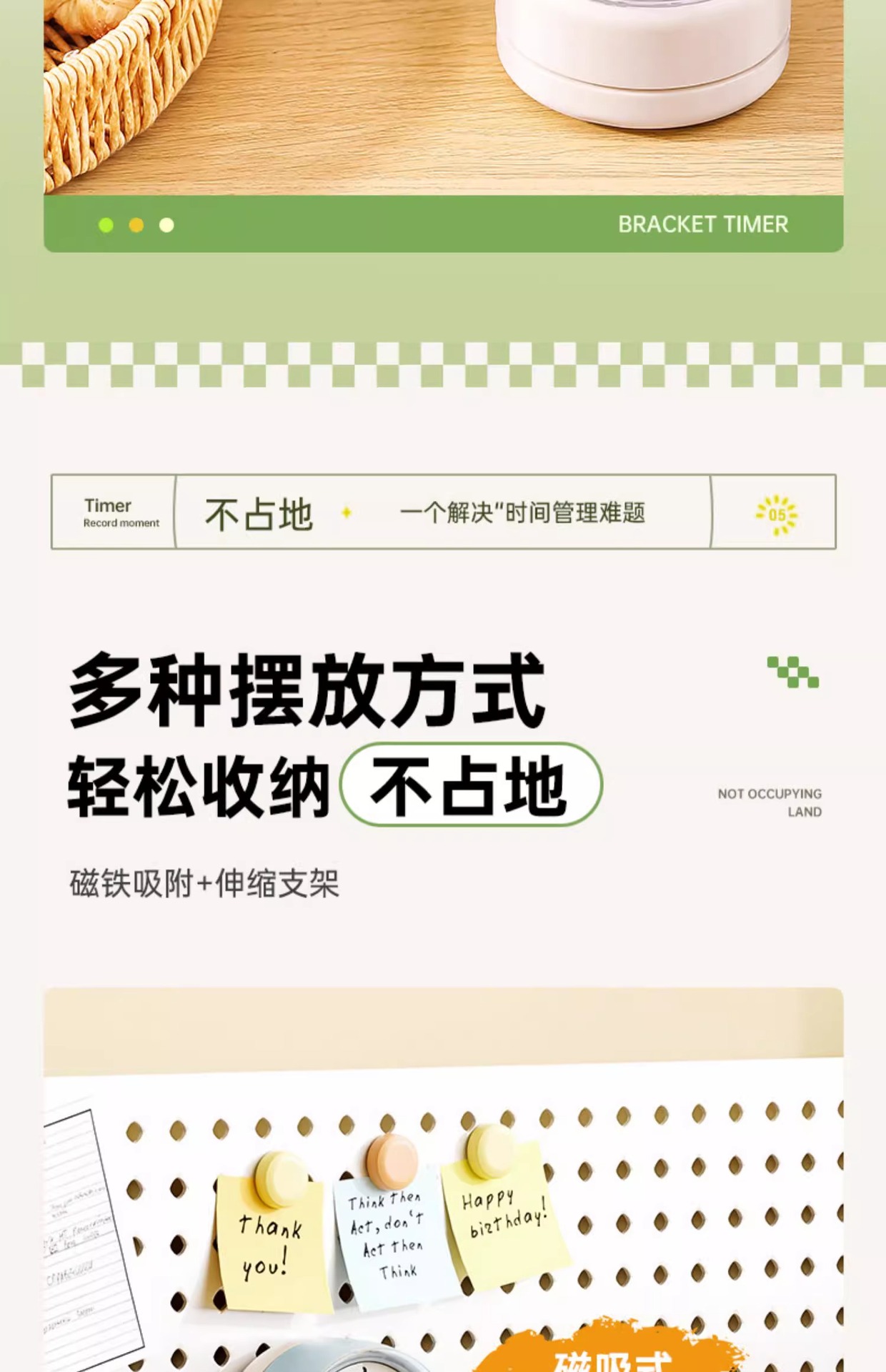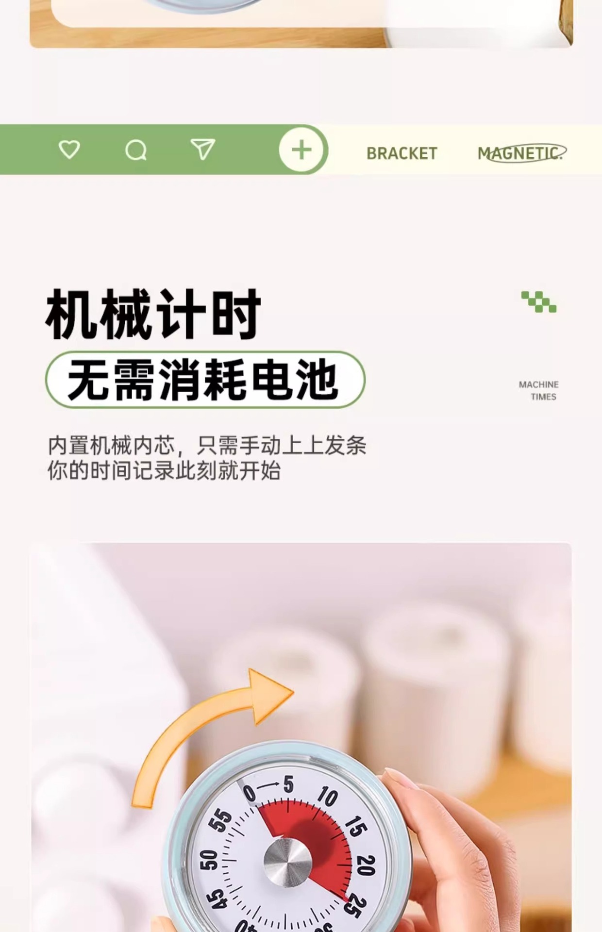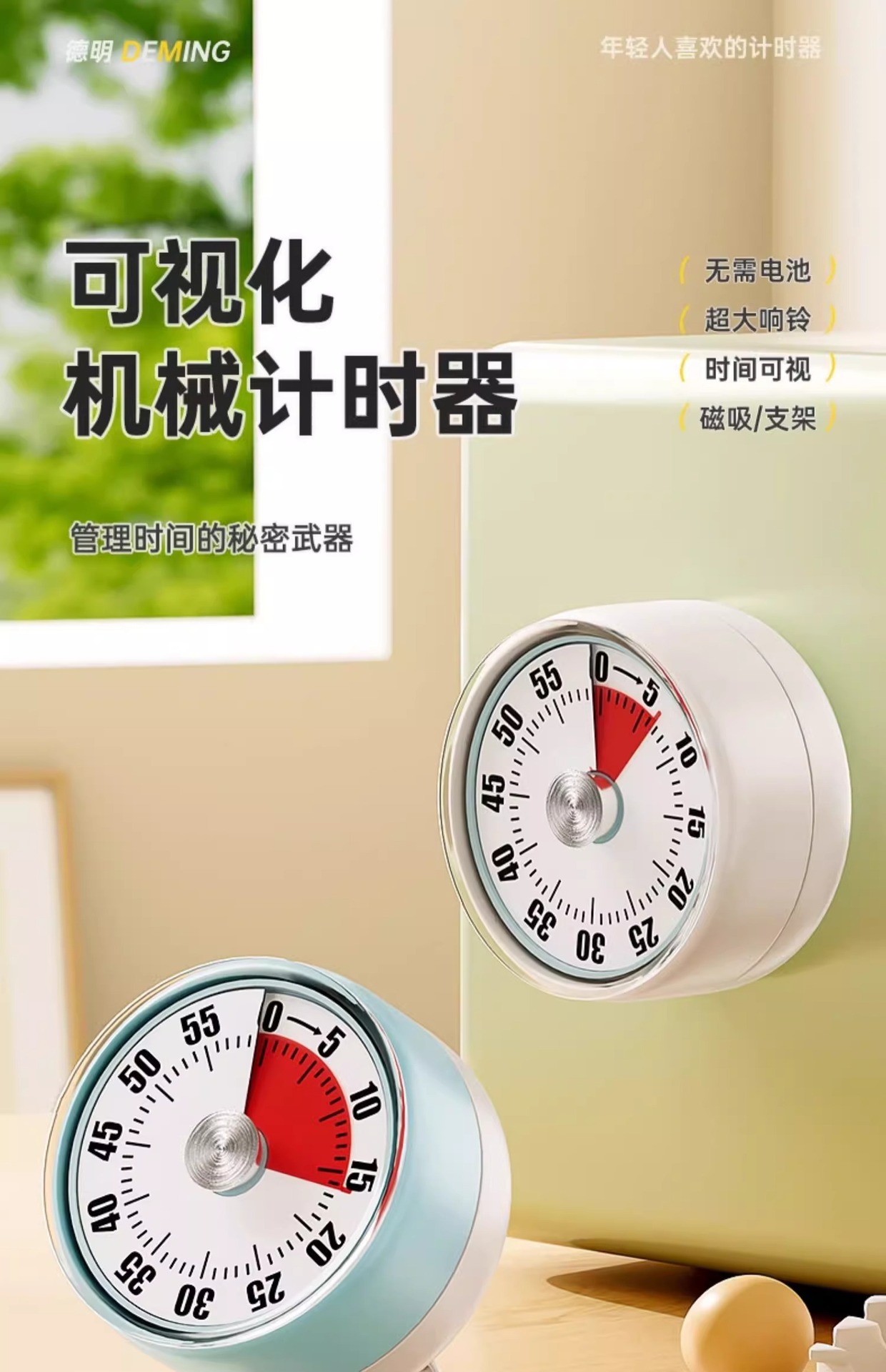 开学季福利!【升级款可吸附带支架】大号计时器机械定时器学习专用闹钟儿童自律时间管理倒计时提醒器