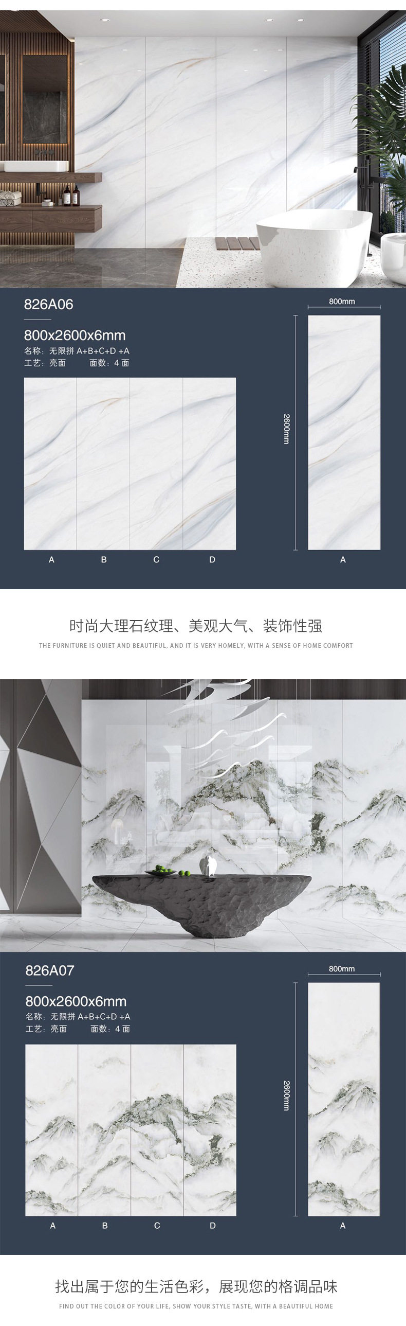 大通体背景规格*800连纹大板大理石岩板2600别墅客厅地板砖亮光