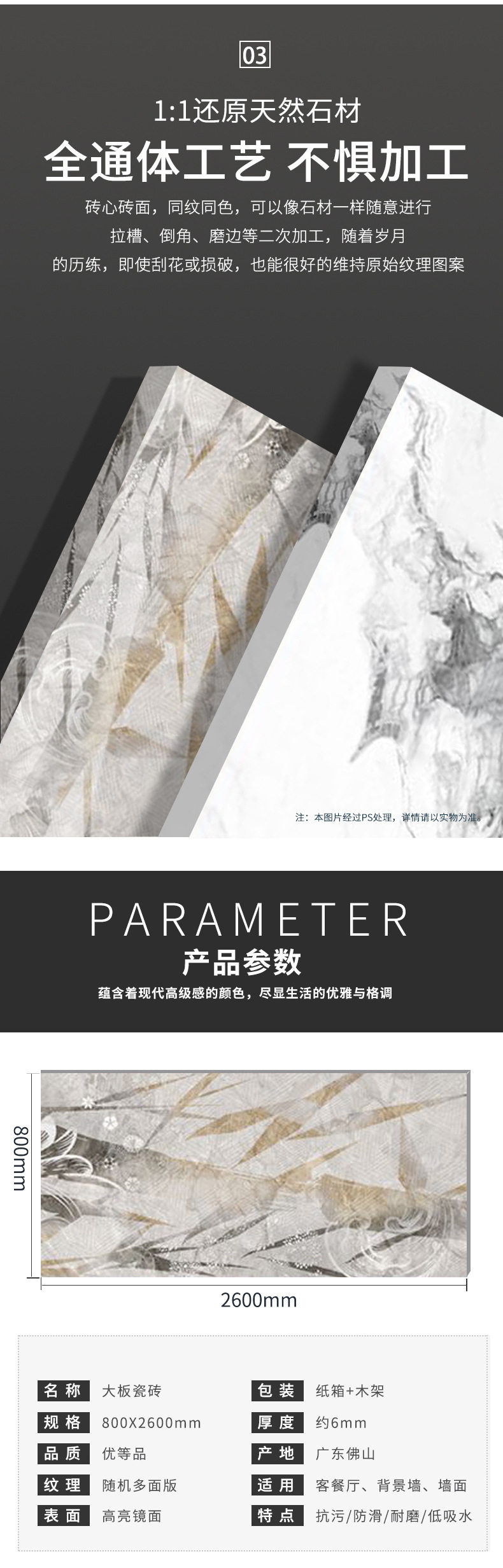 大通体背景规格*800连纹大板大理石岩板2600别墅客厅地板砖亮光 商品图3
