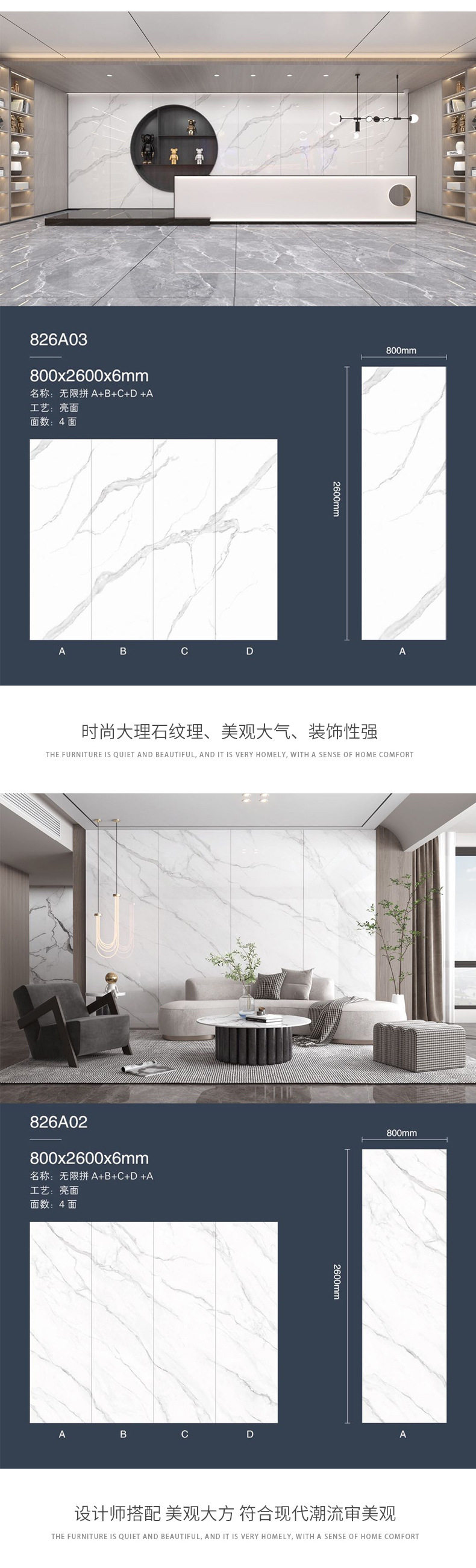 大通体背景规格*800连纹大板大理石岩板2600别墅客厅地板砖亮光 商品图2