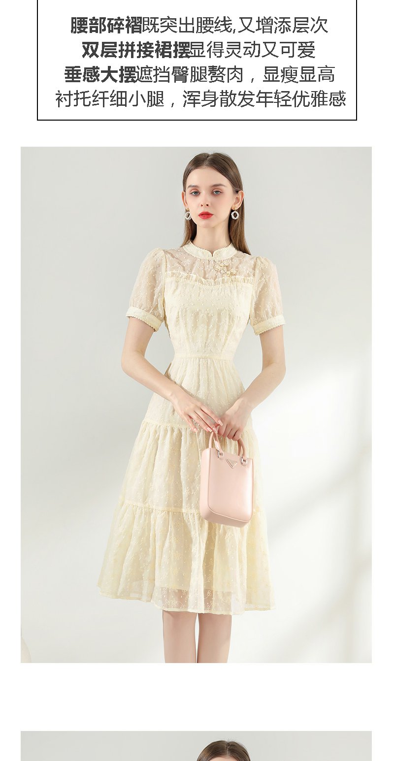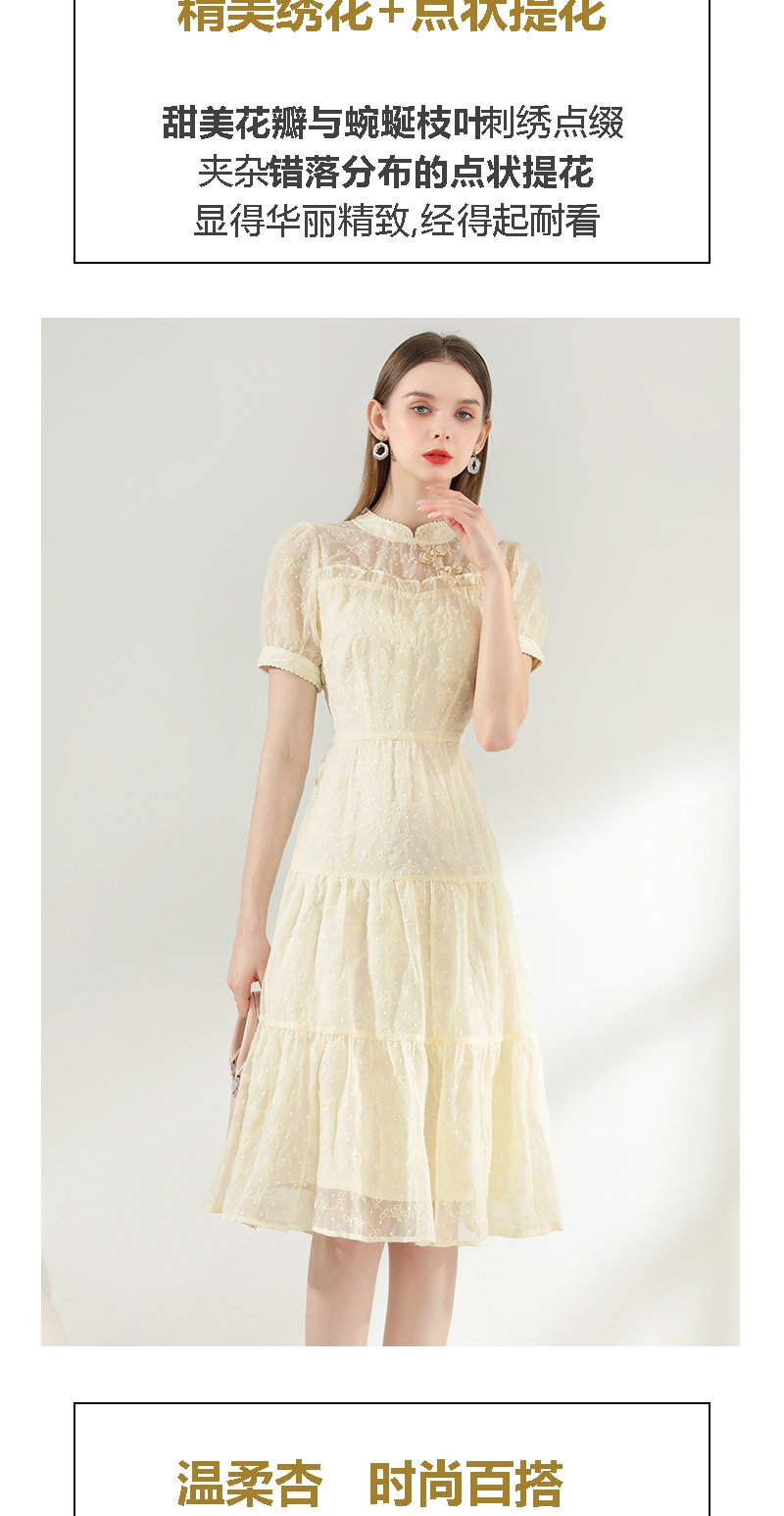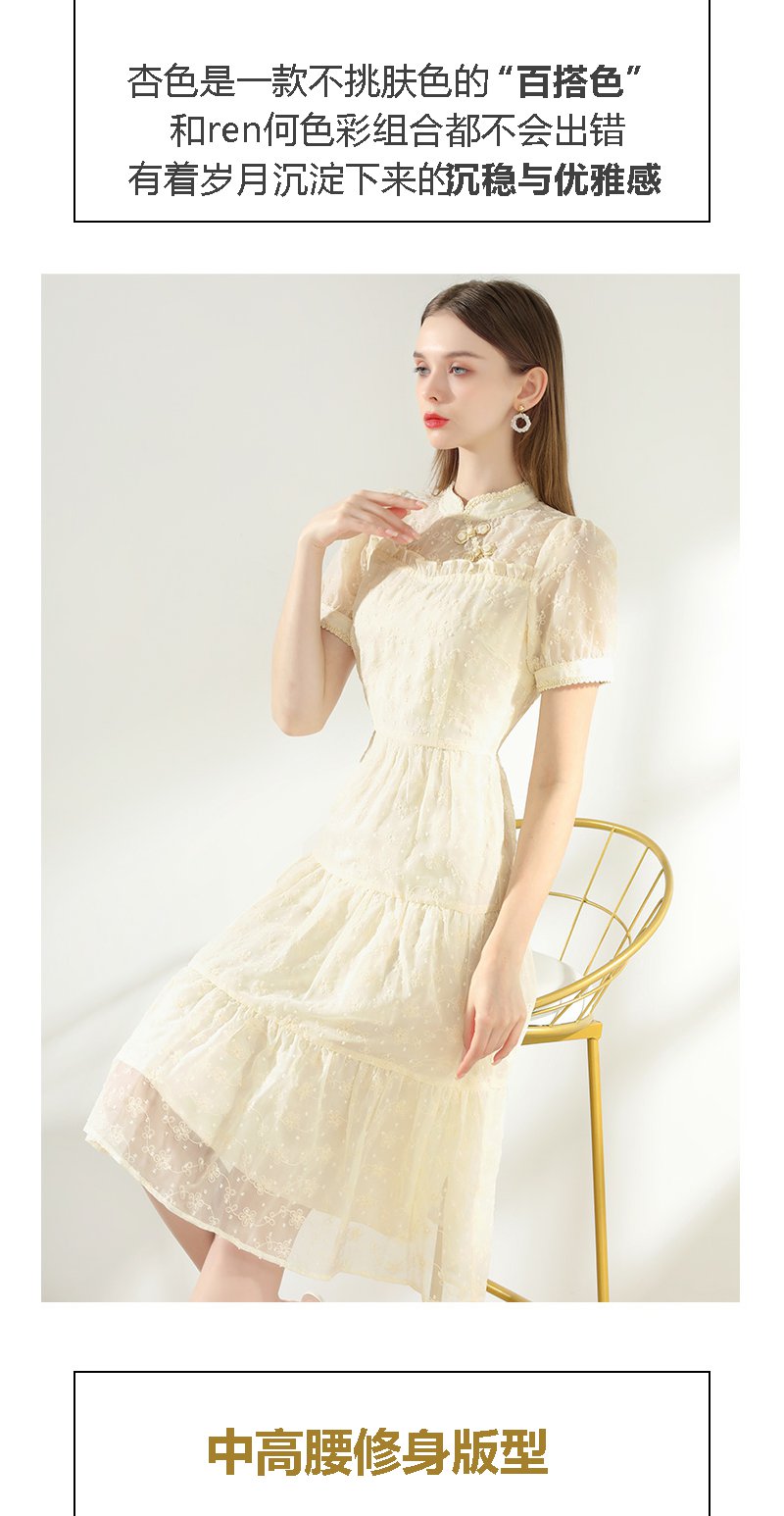 未风杏色雪纺连衣裙女夏2024年夏季新款女装改良旗袍国风减龄裙子