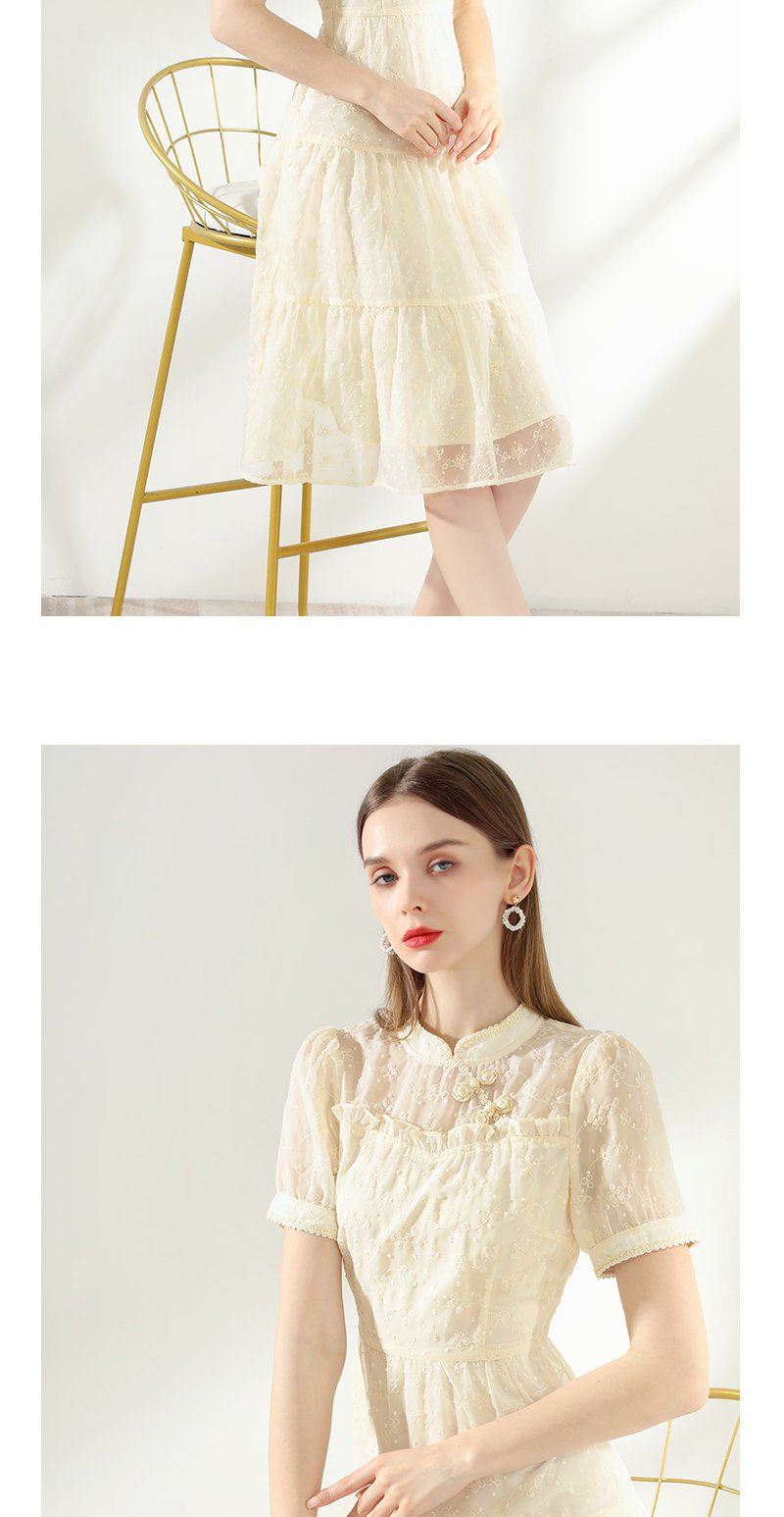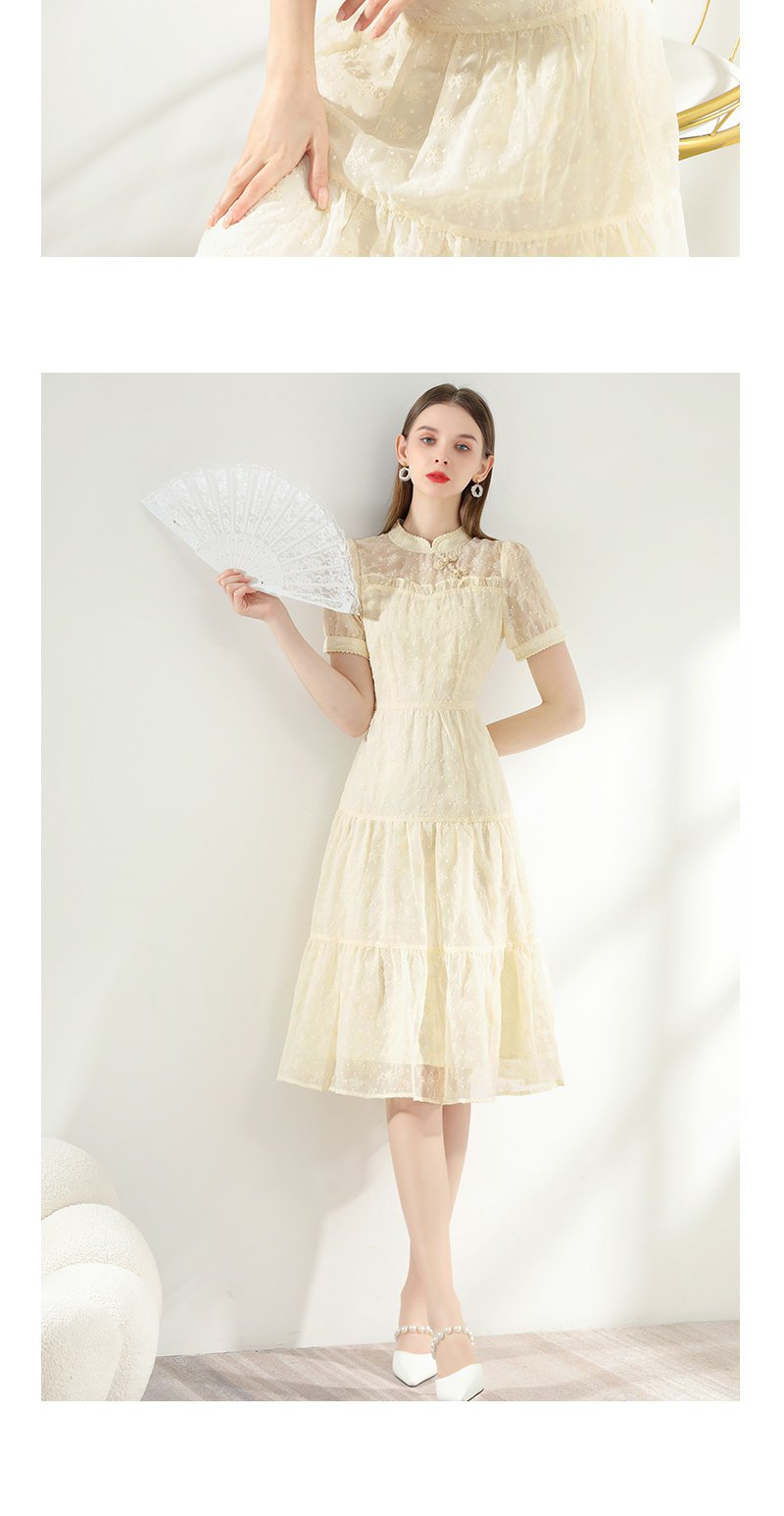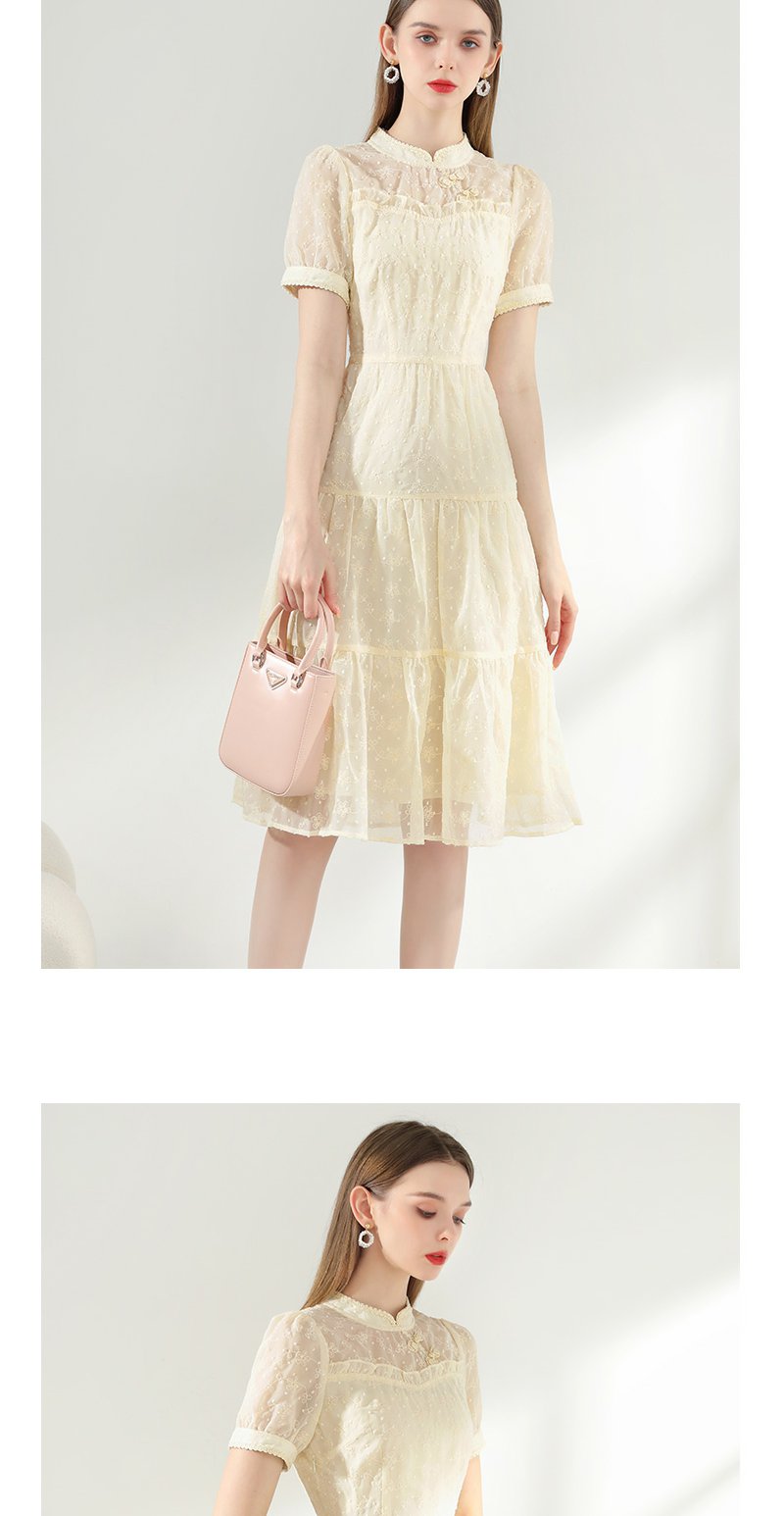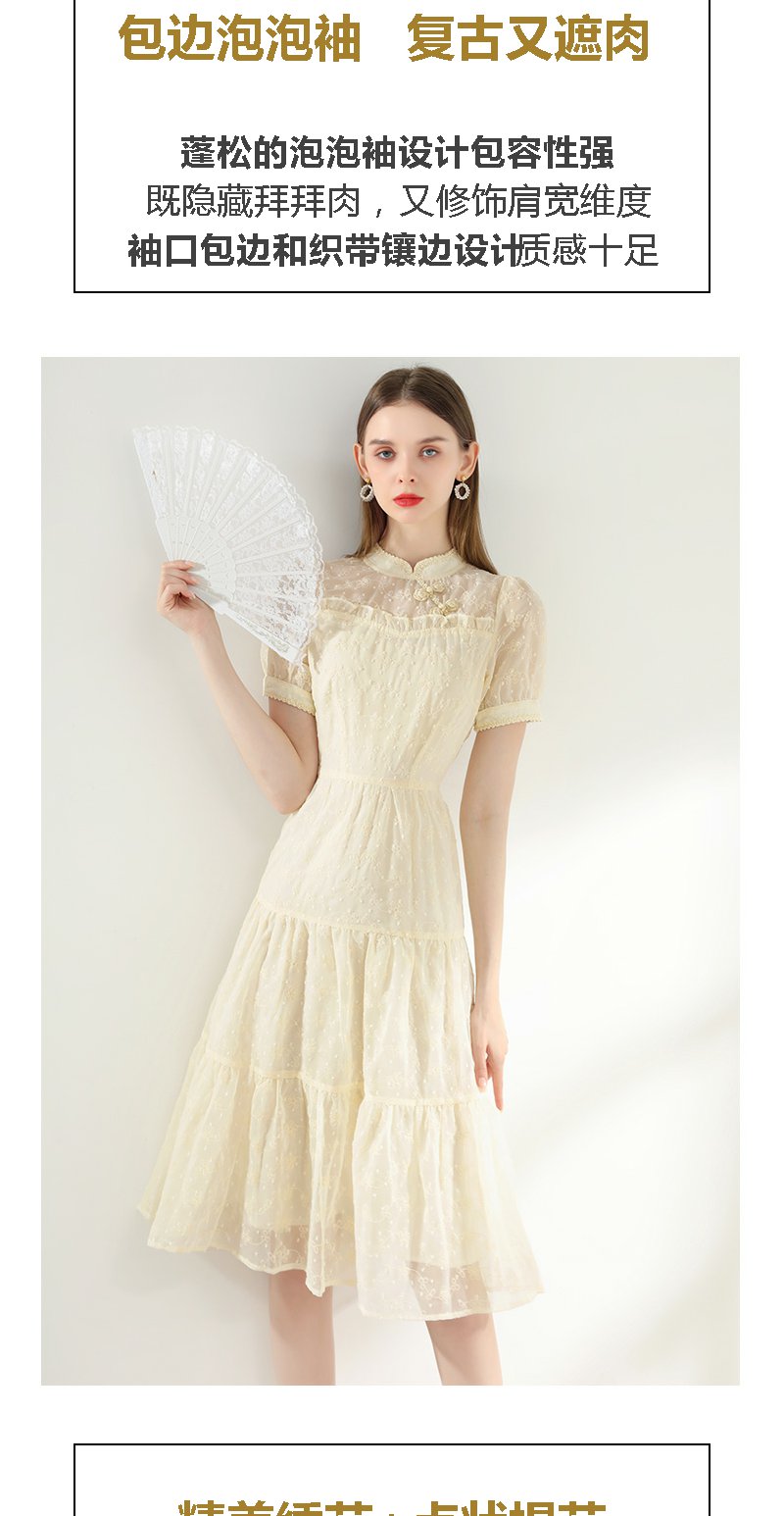 未风杏色雪纺连衣裙女夏2024年夏季新款女装改良旗袍国风减龄裙子