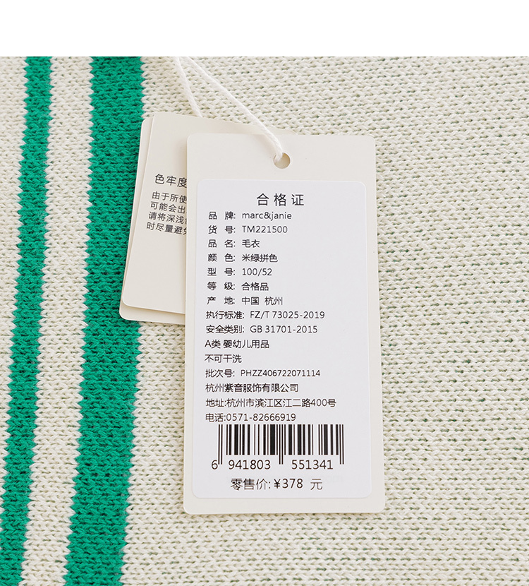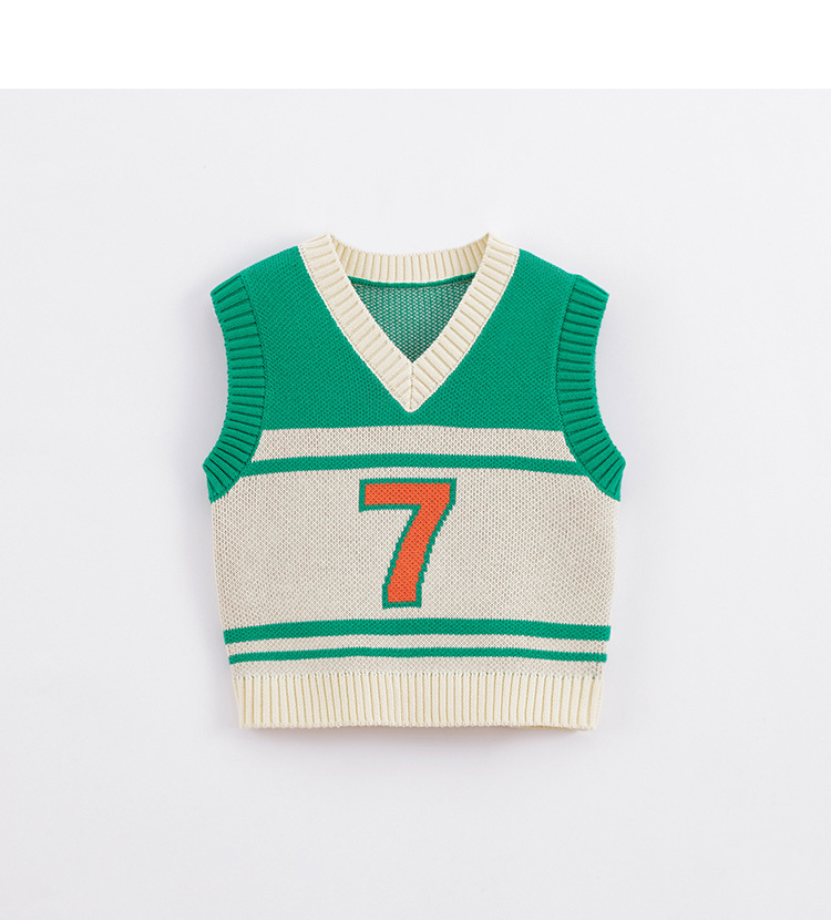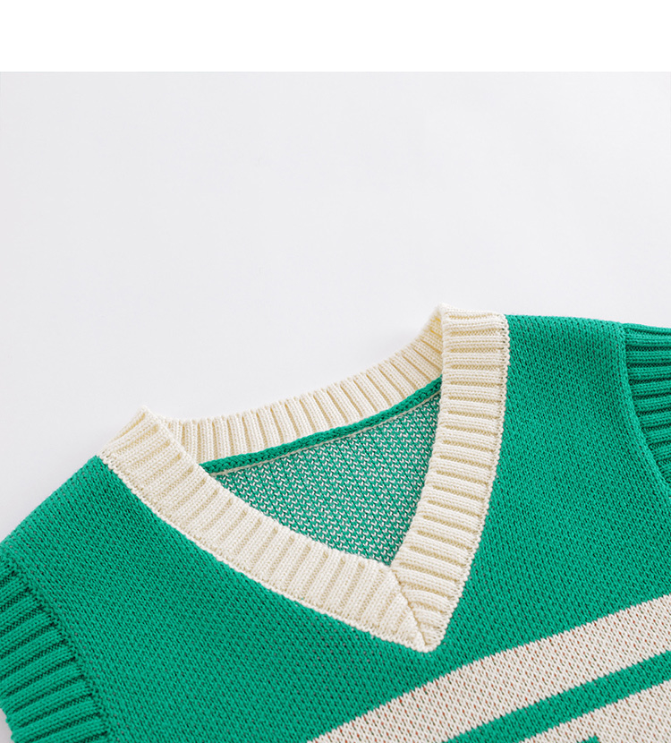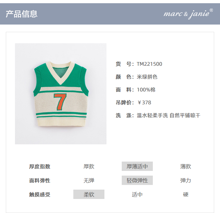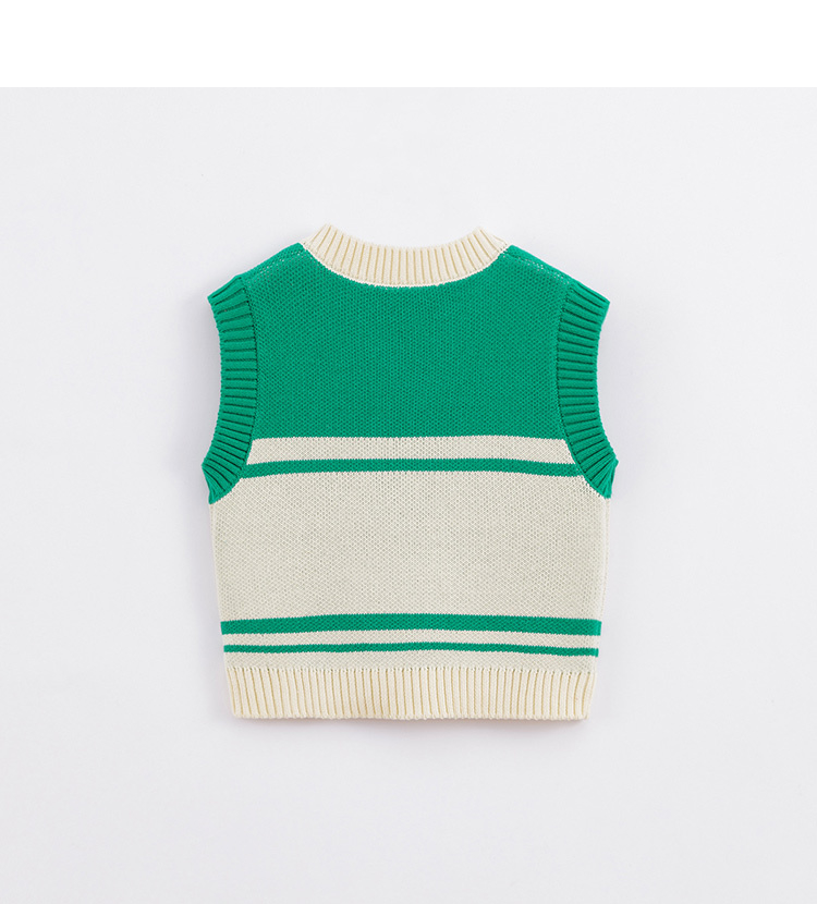 马克珍妮秋装新款 男童V领米绿拼色全棉针织马甲221500
