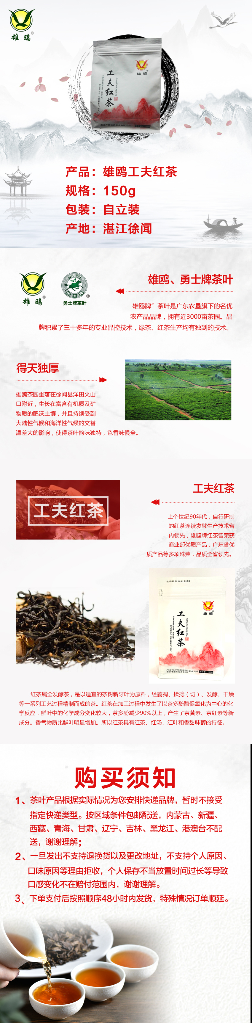 【中国农垦】雄鸥工夫红茶150克*3袋