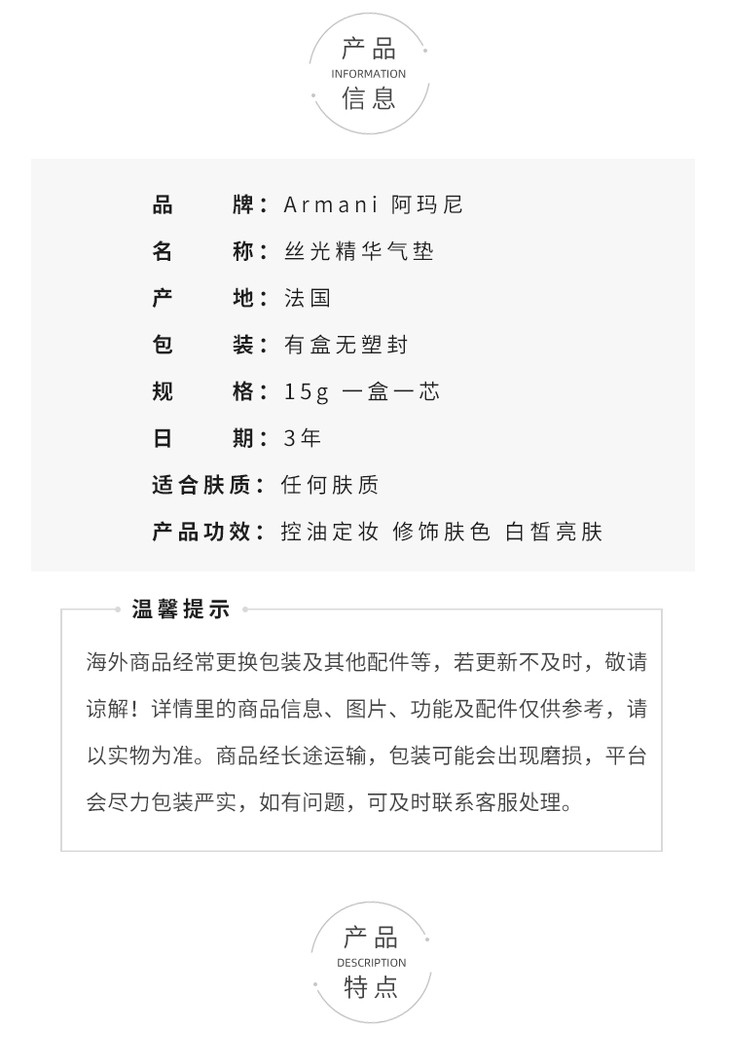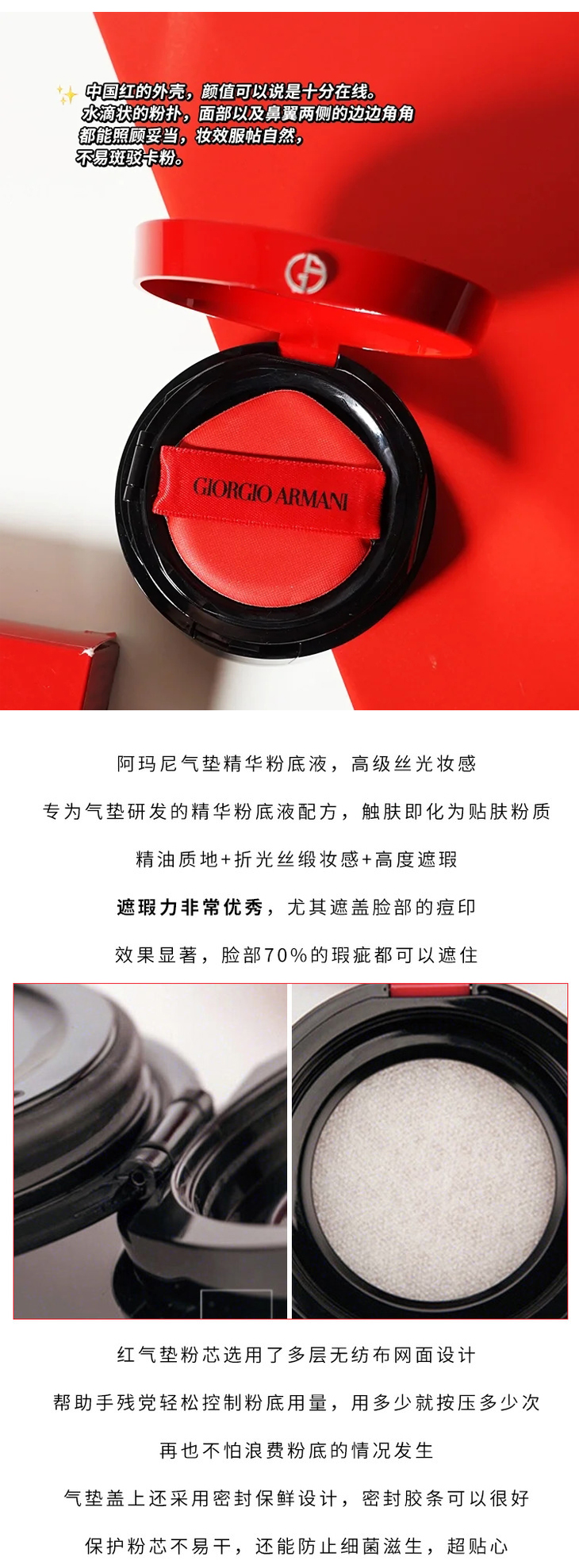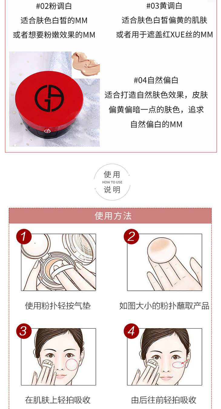阿玛尼 红色气垫 新版 遮瑕保湿15g 持久防晒轻薄提亮气垫bb ARMANI/armani