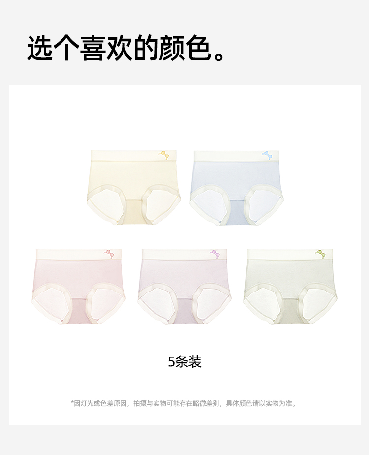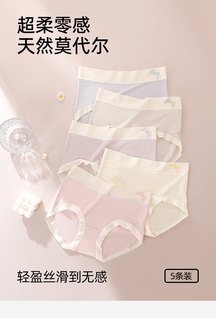 【5条装】熳洁儿 超柔零碳莫代尔女士内裤可爱蝴蝶印花中腰包臀25262111