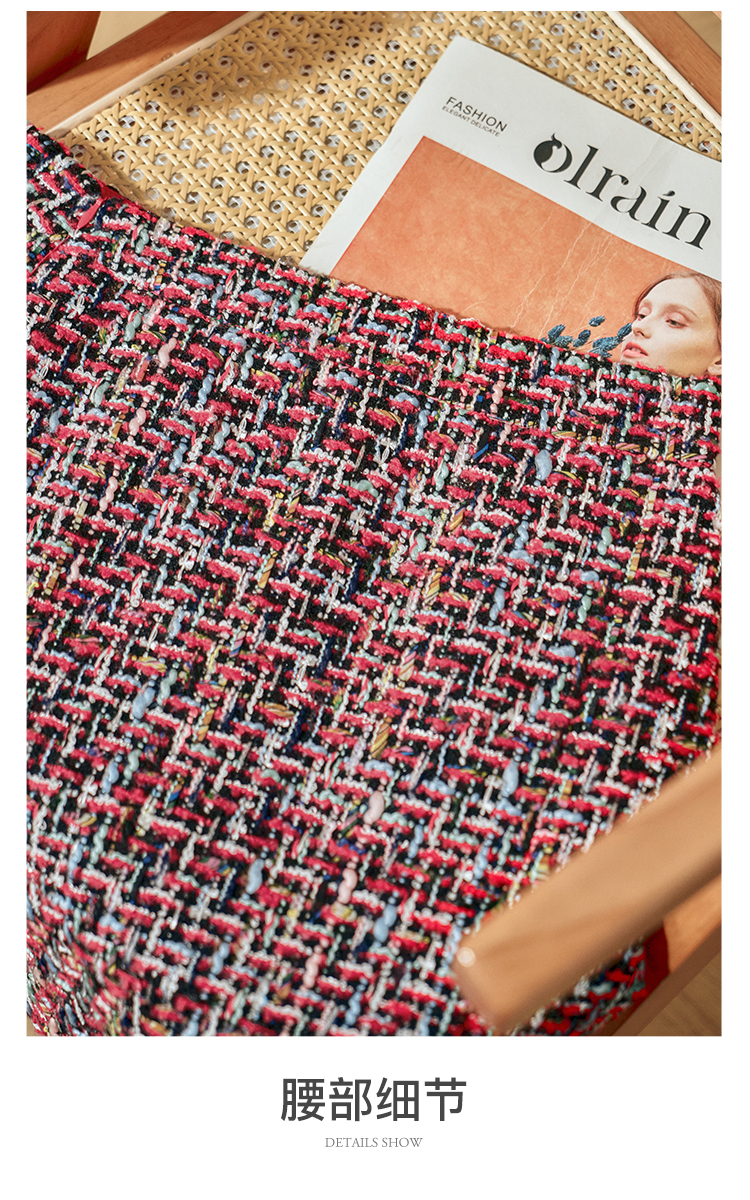 欧芮儿春新款高腰小香风半身裙女不规则短裙修身A字包臀裙