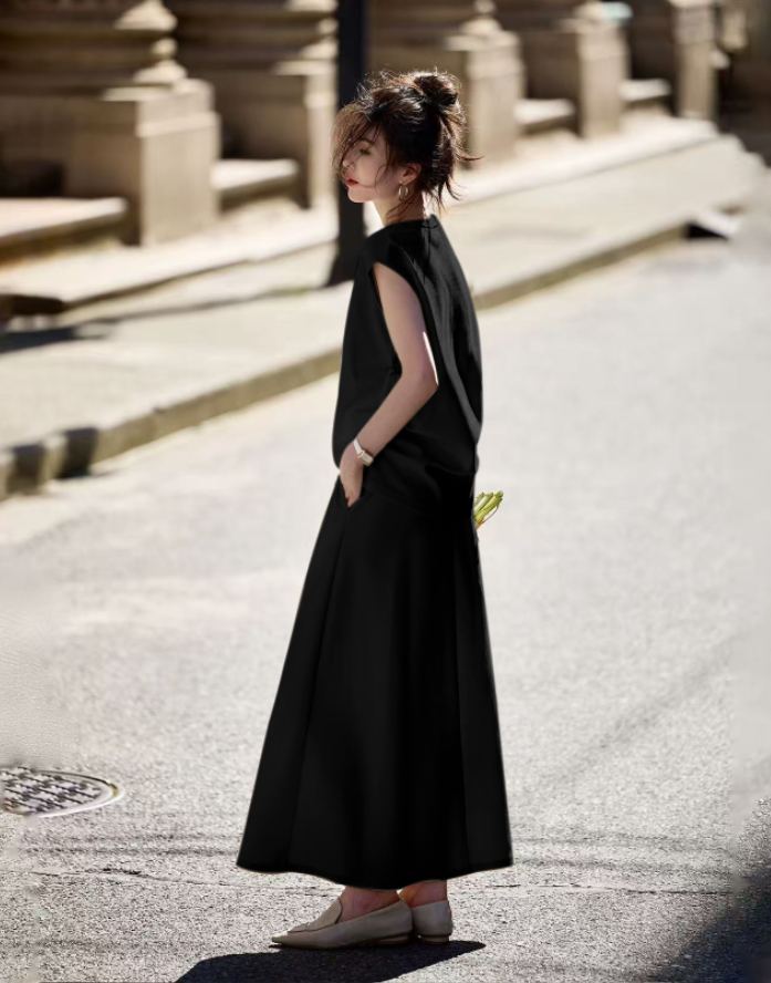 ✨ 法式优雅,轻盈一夏!【定制小飞袖长裙套装来啦】 ✨小飞袖: 遮手臂拜拜肉,显瘦小心机! 长裙: 优雅飘逸,行走间自带仙气!