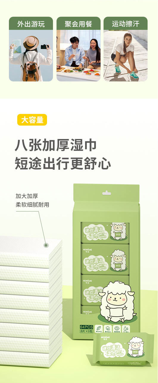 「29.9到手6提!单提8包」迷你湿巾便携小包装抽取手口居家日用清洁湿纸巾女学生宿舍卫生湿巾婴儿