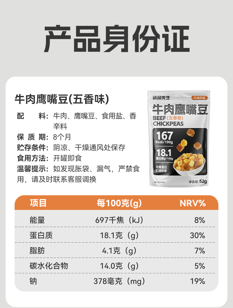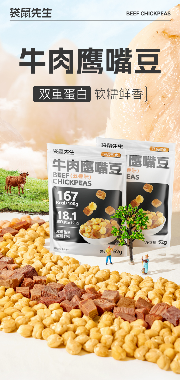 【99元任选10件】袋鼠先生牛肉鹰嘴豆五香味/52g