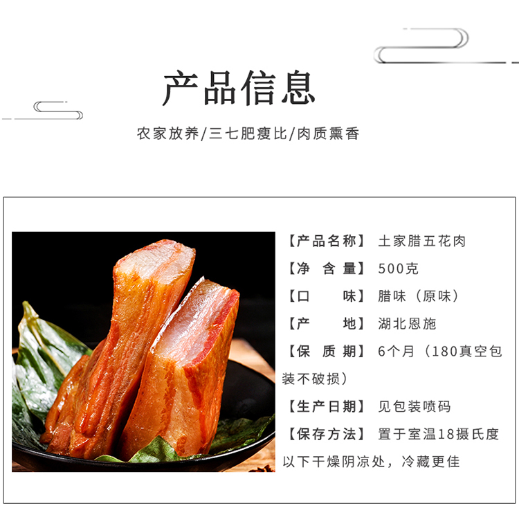 【严选】湖北恩施黄四姐腊五花肉500g/袋(厂家直发)