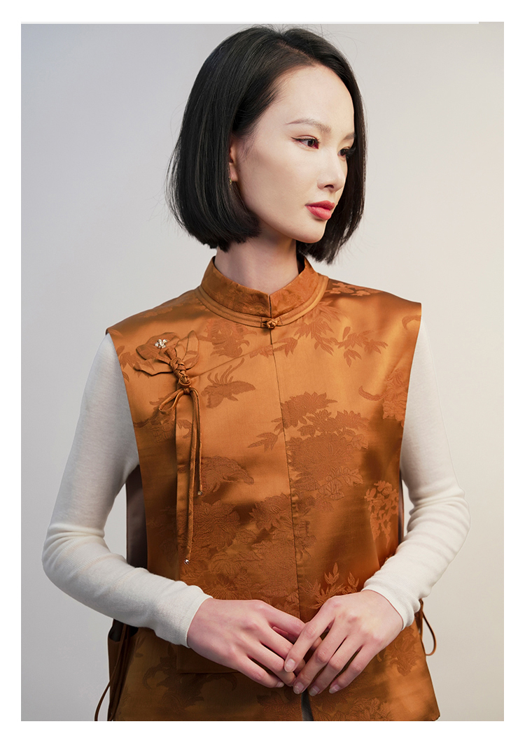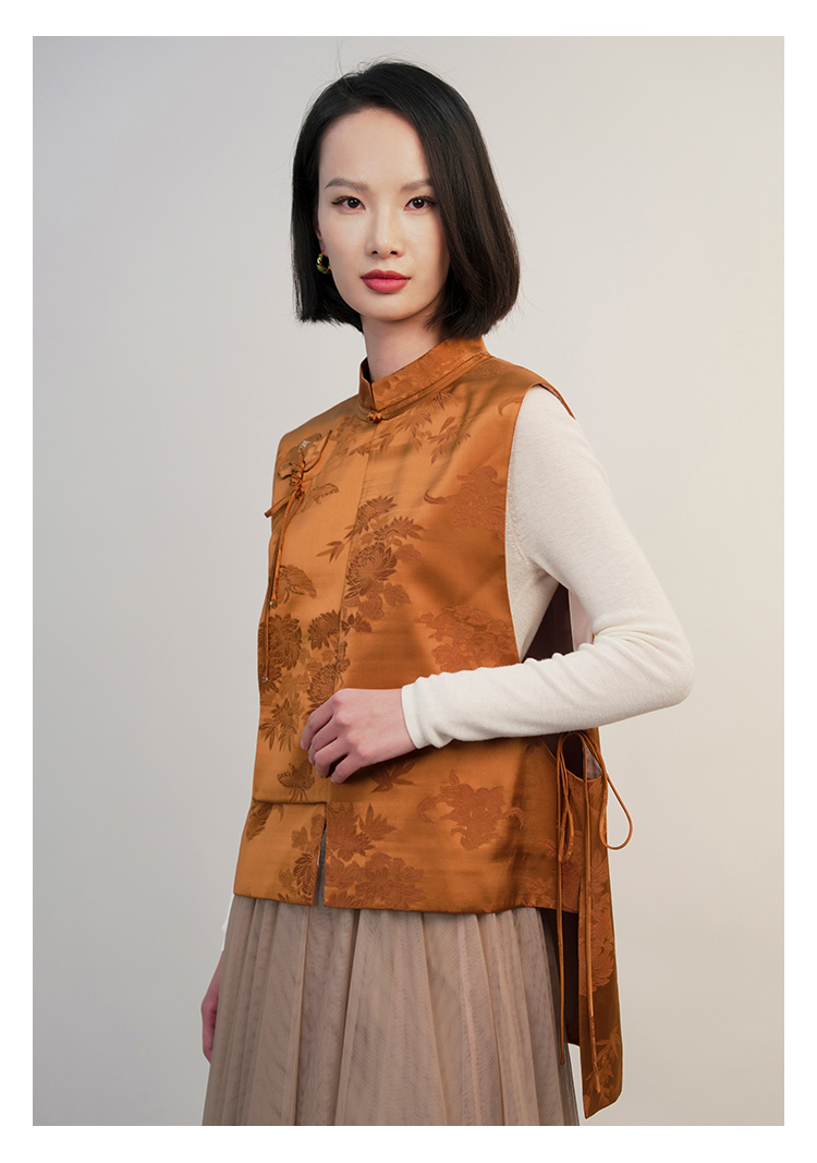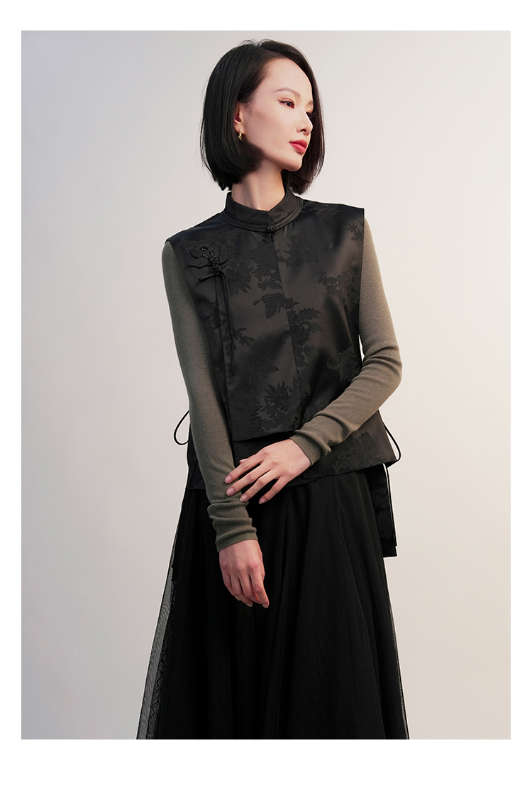郭培成衣RSG2025秋冬新款新中式斜襟玫瑰花盘扣马甲