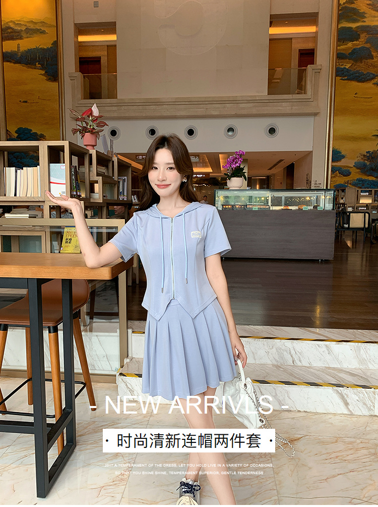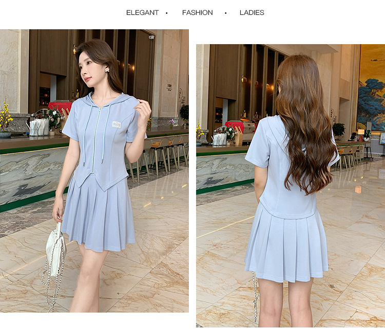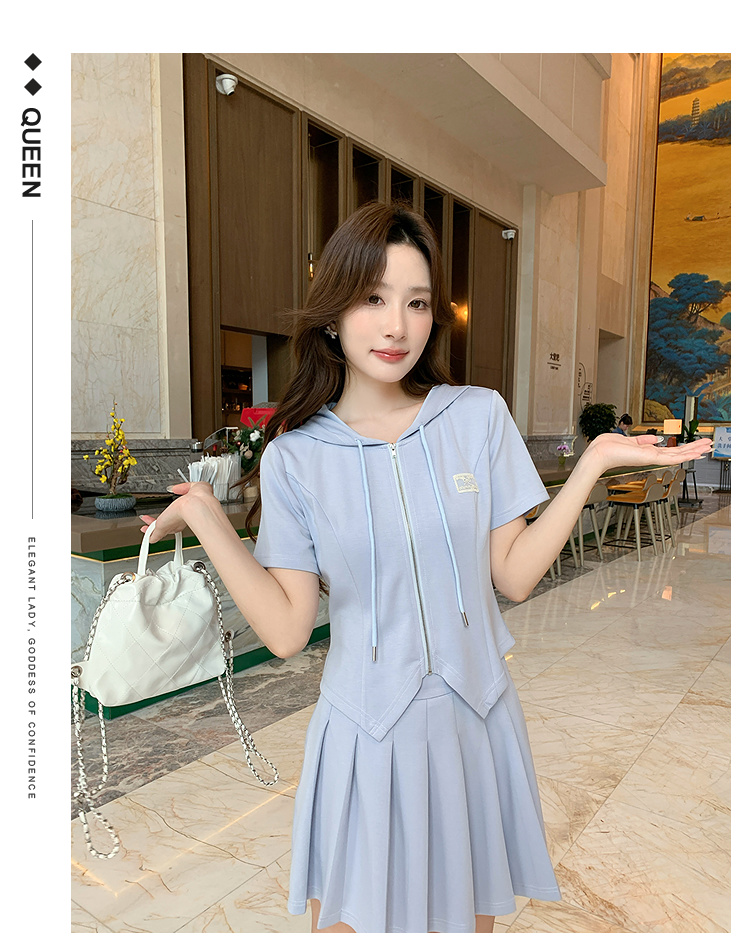 奢姿大码女装2025夏季气质减龄连帽短袖套装胖妹妹减龄时尚套装裙9952969841