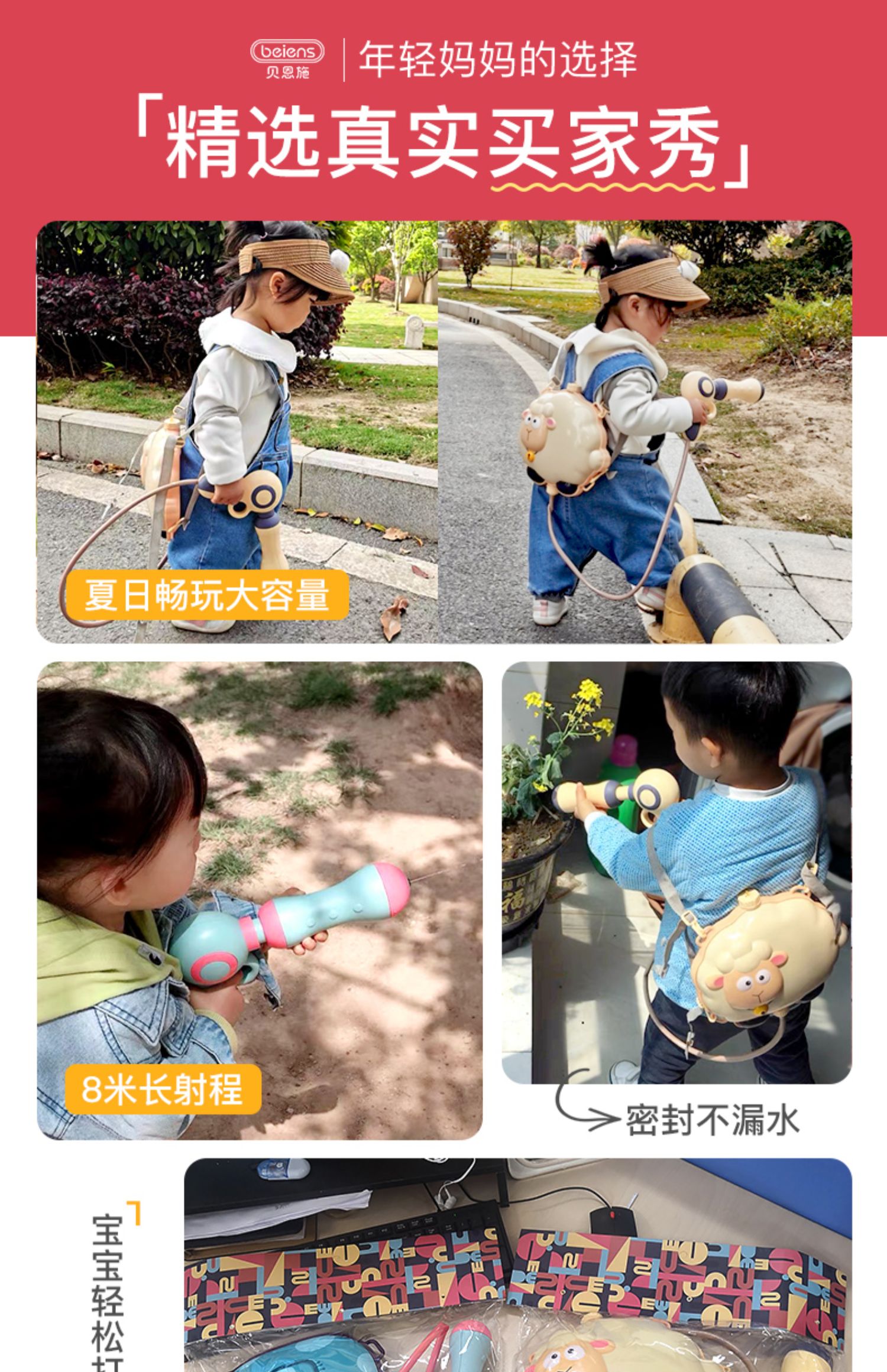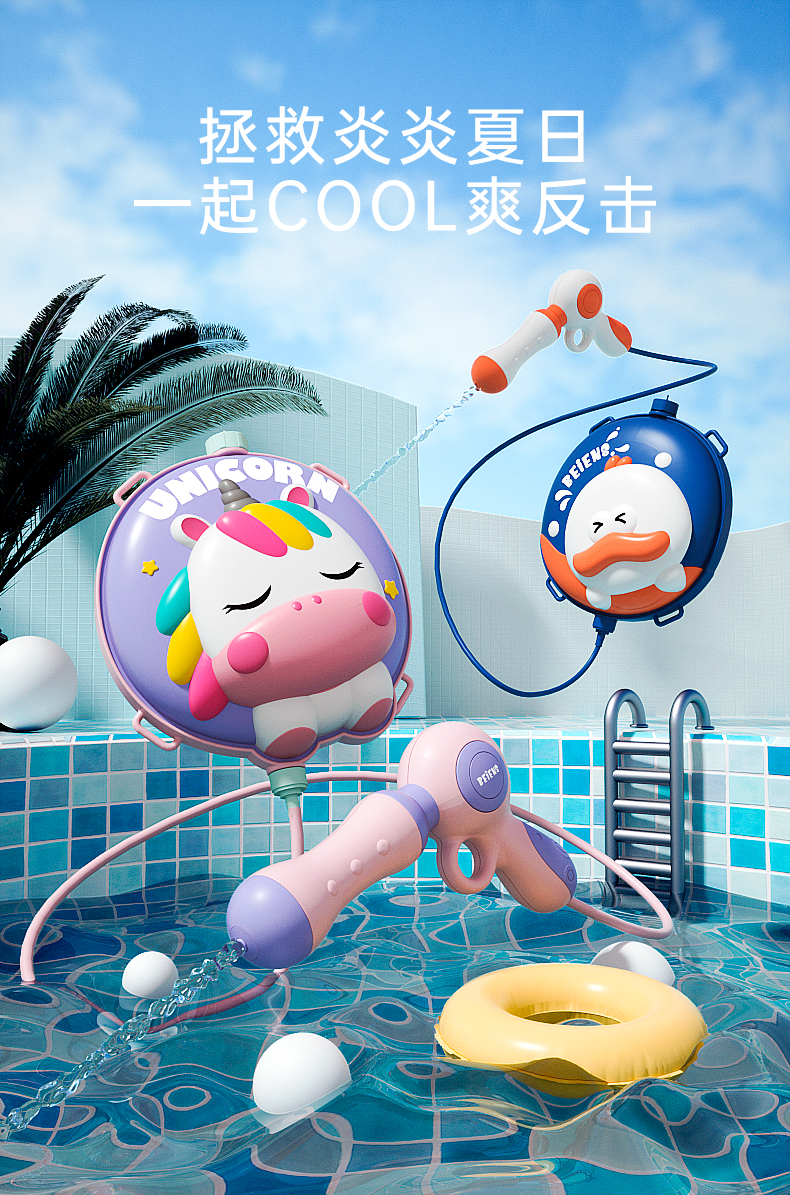 贝恩施背包恐龙儿童水枪抢玩具喷水夏天呲泚抽拉式小号打水仗女孩