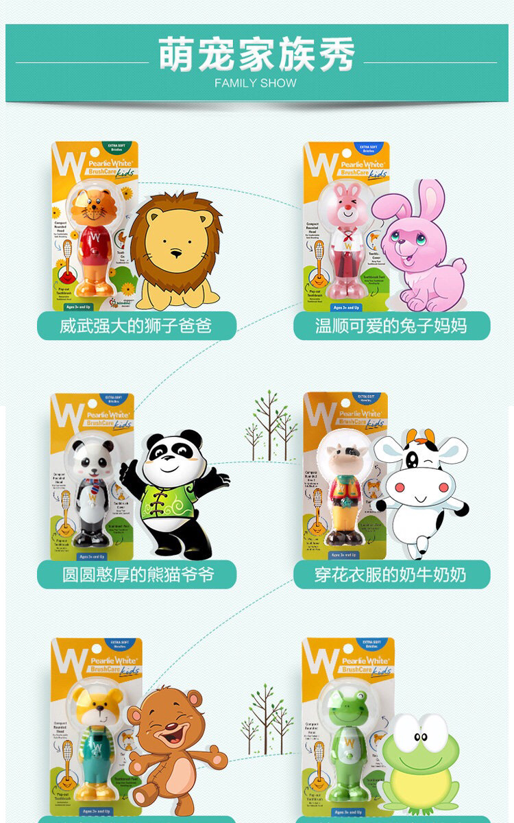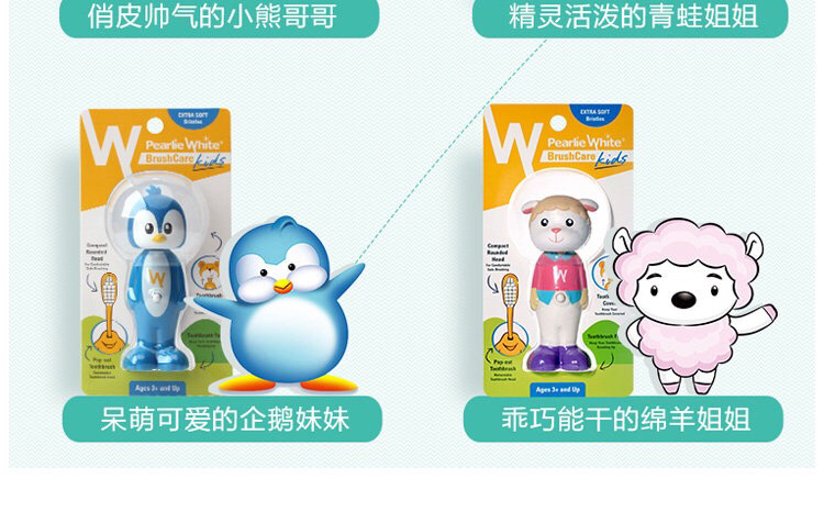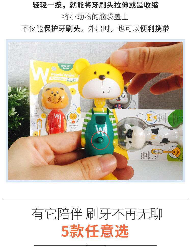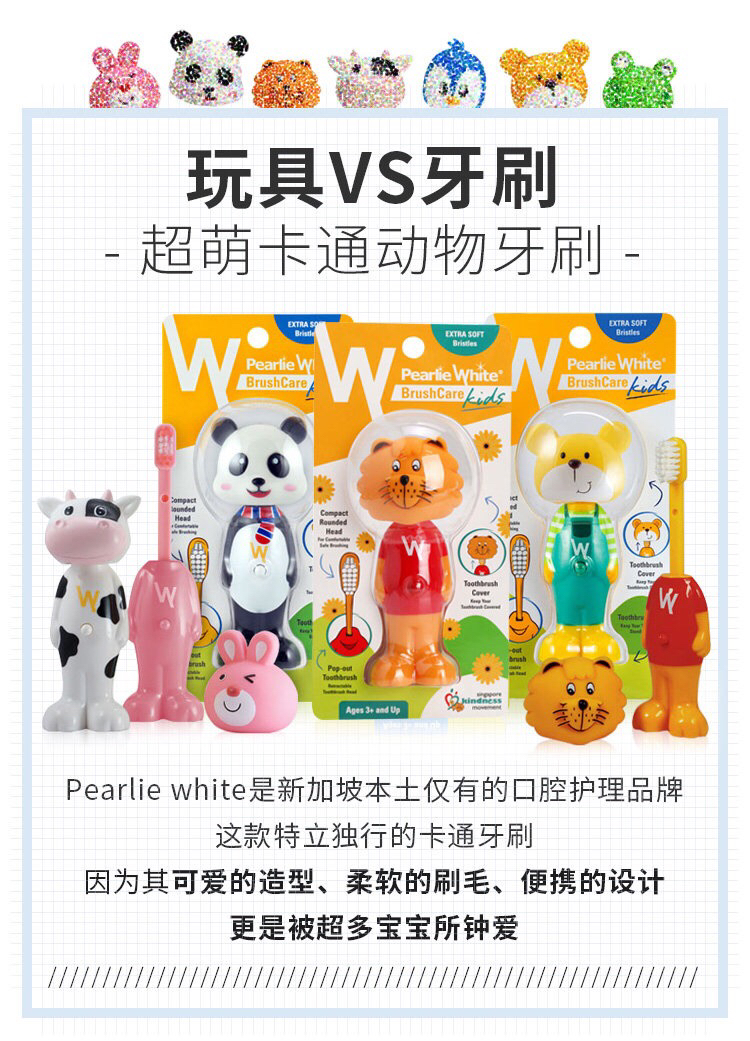 新加坡进口百丽洁Pearlie White儿童软毛卡通可伸缩宝宝牙刷
