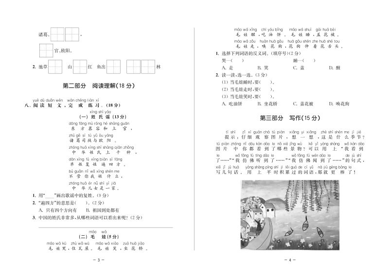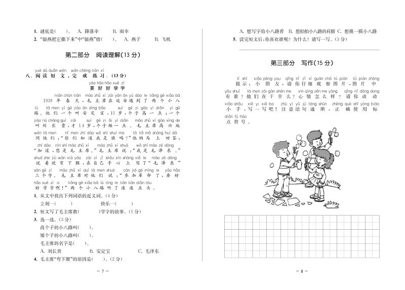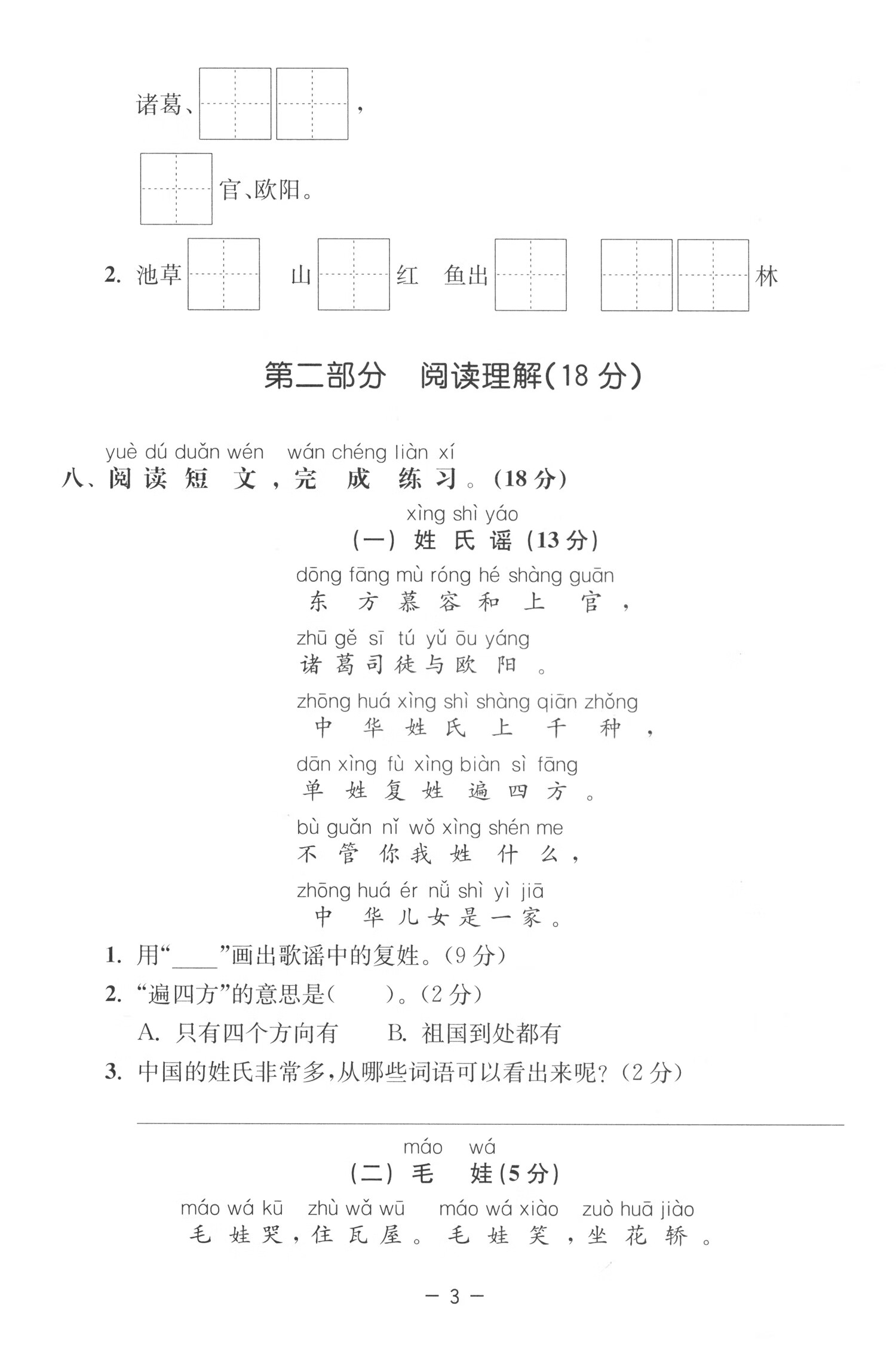一,紧扣学习进度,覆盖教材知识点。本系列测试卷按照新统编版语文教材的学习进度设计,围绕每单元涉及的课文知识点设置不同的题型。