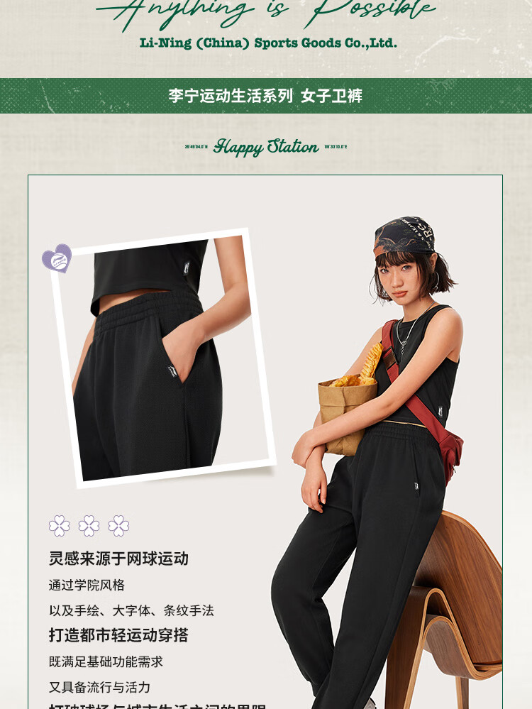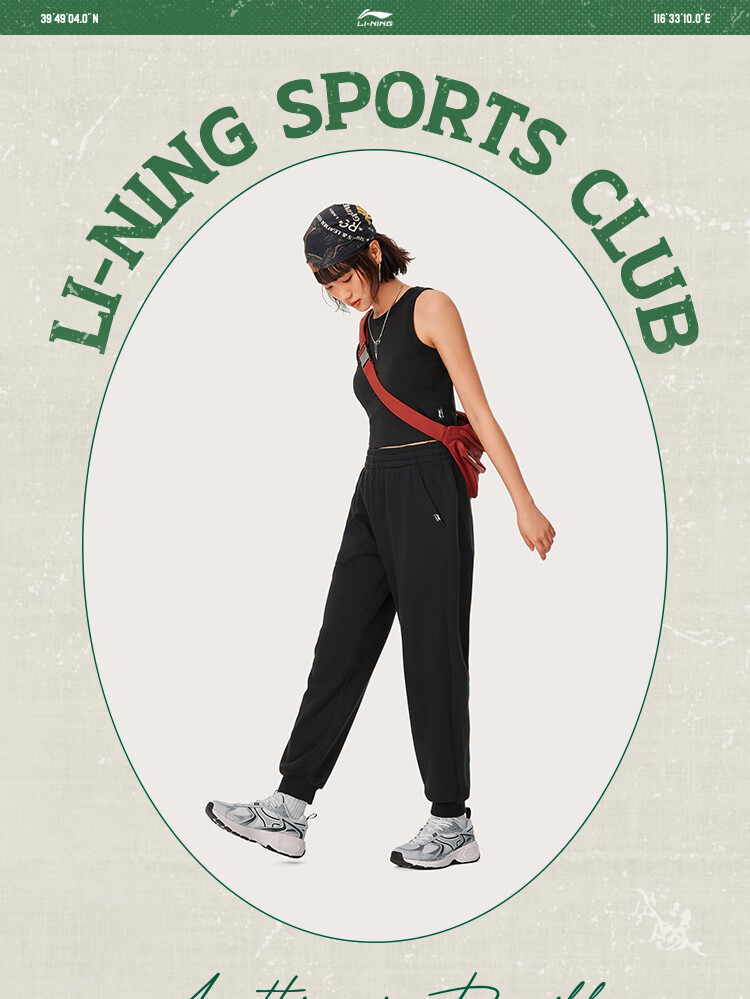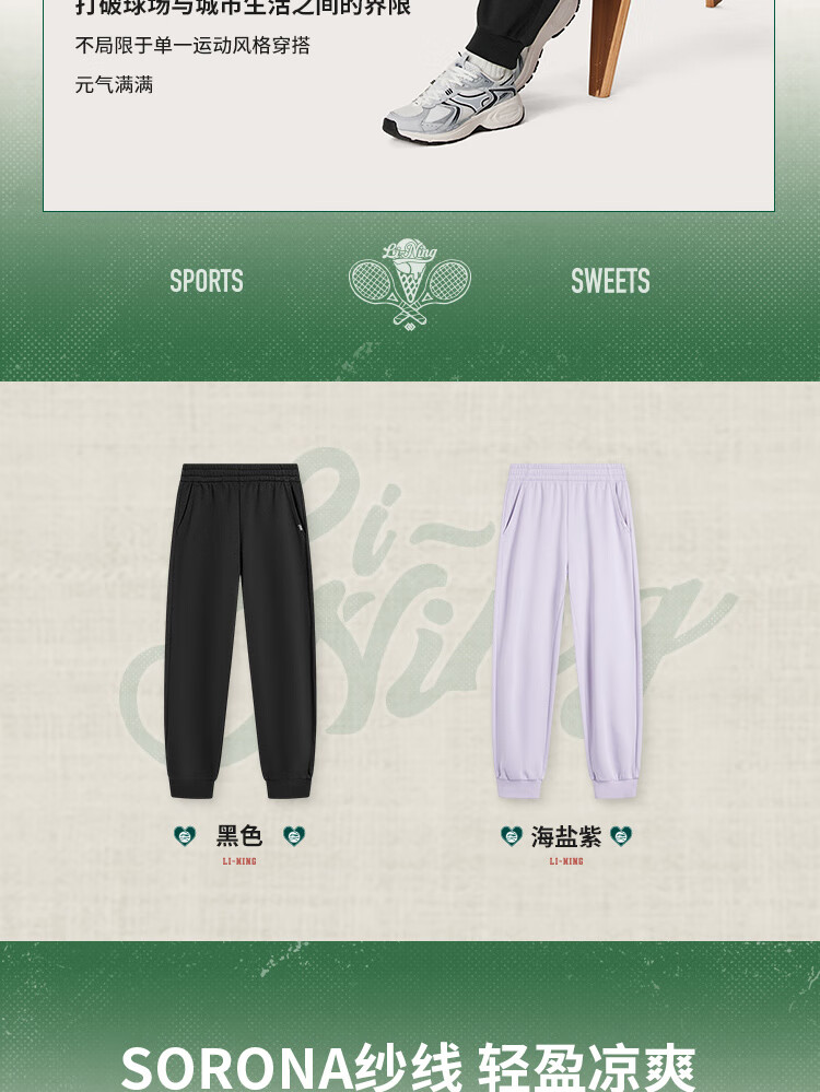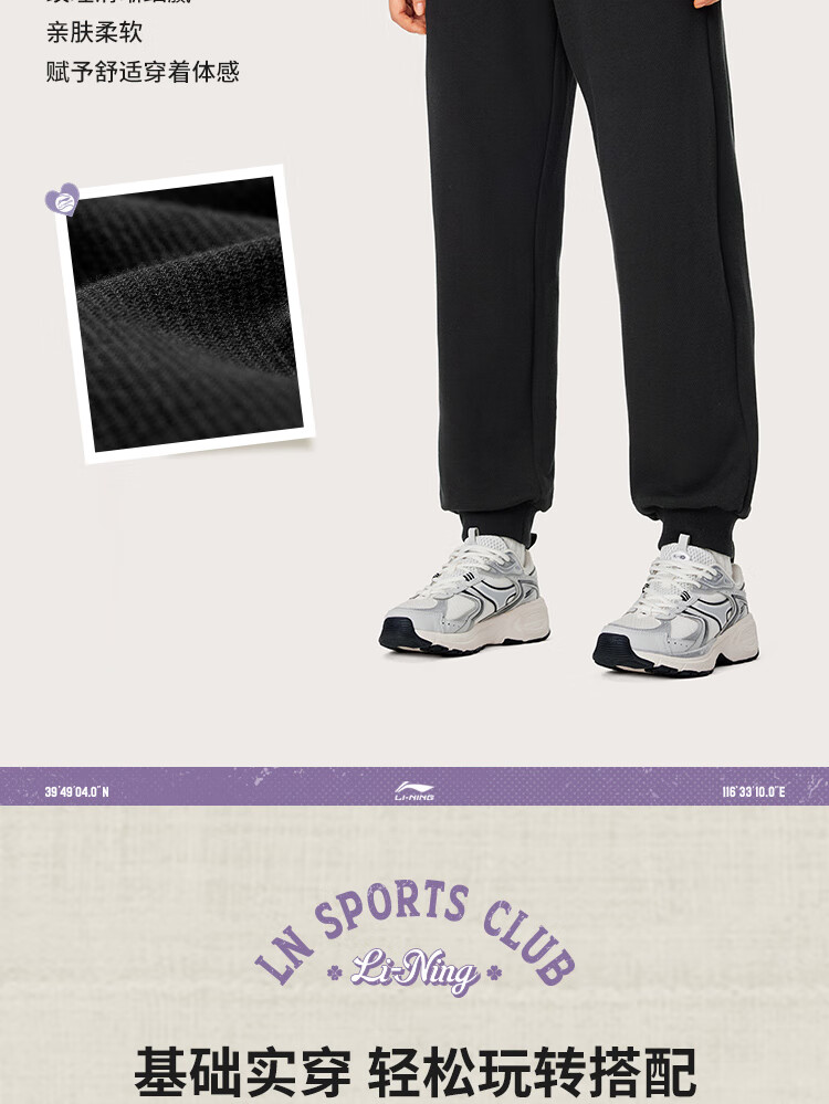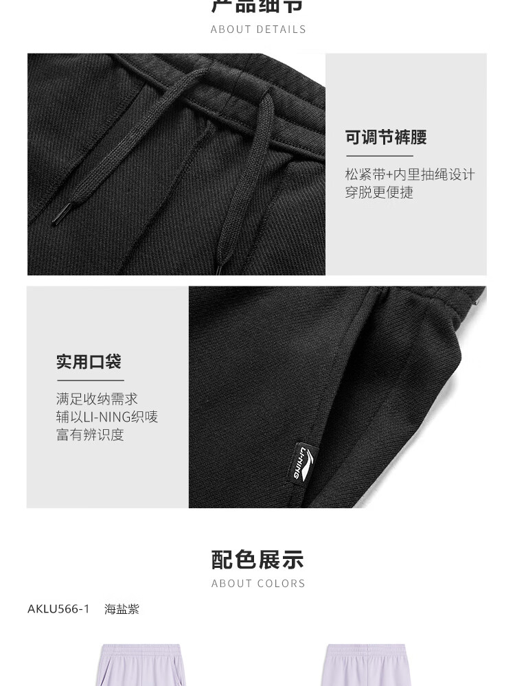 李宁卫裤女子运动裤都市透气舒适束脚学院风裤子AKLU566