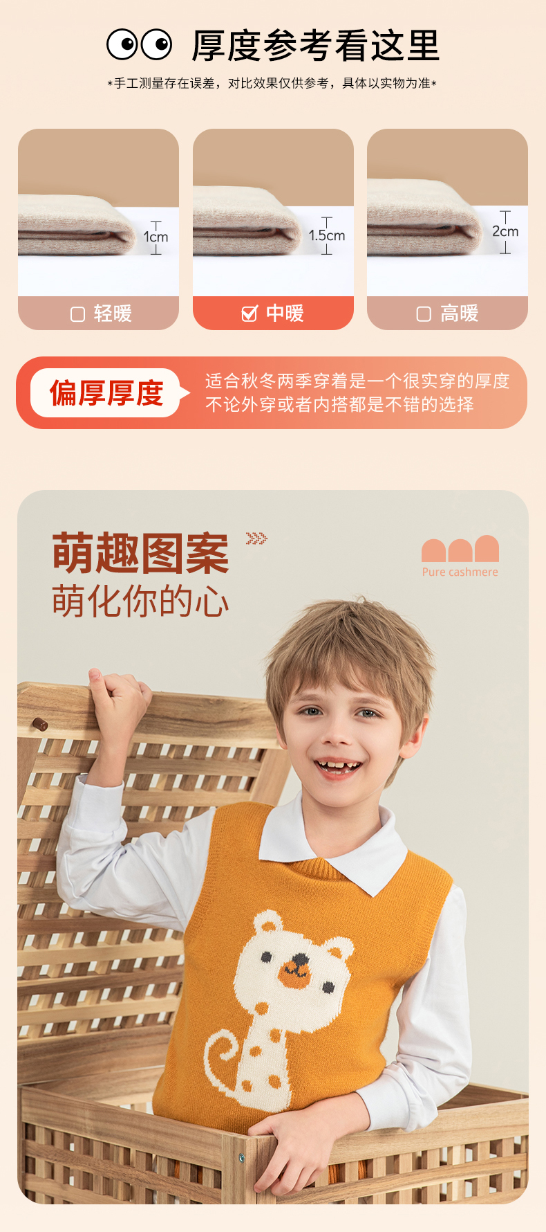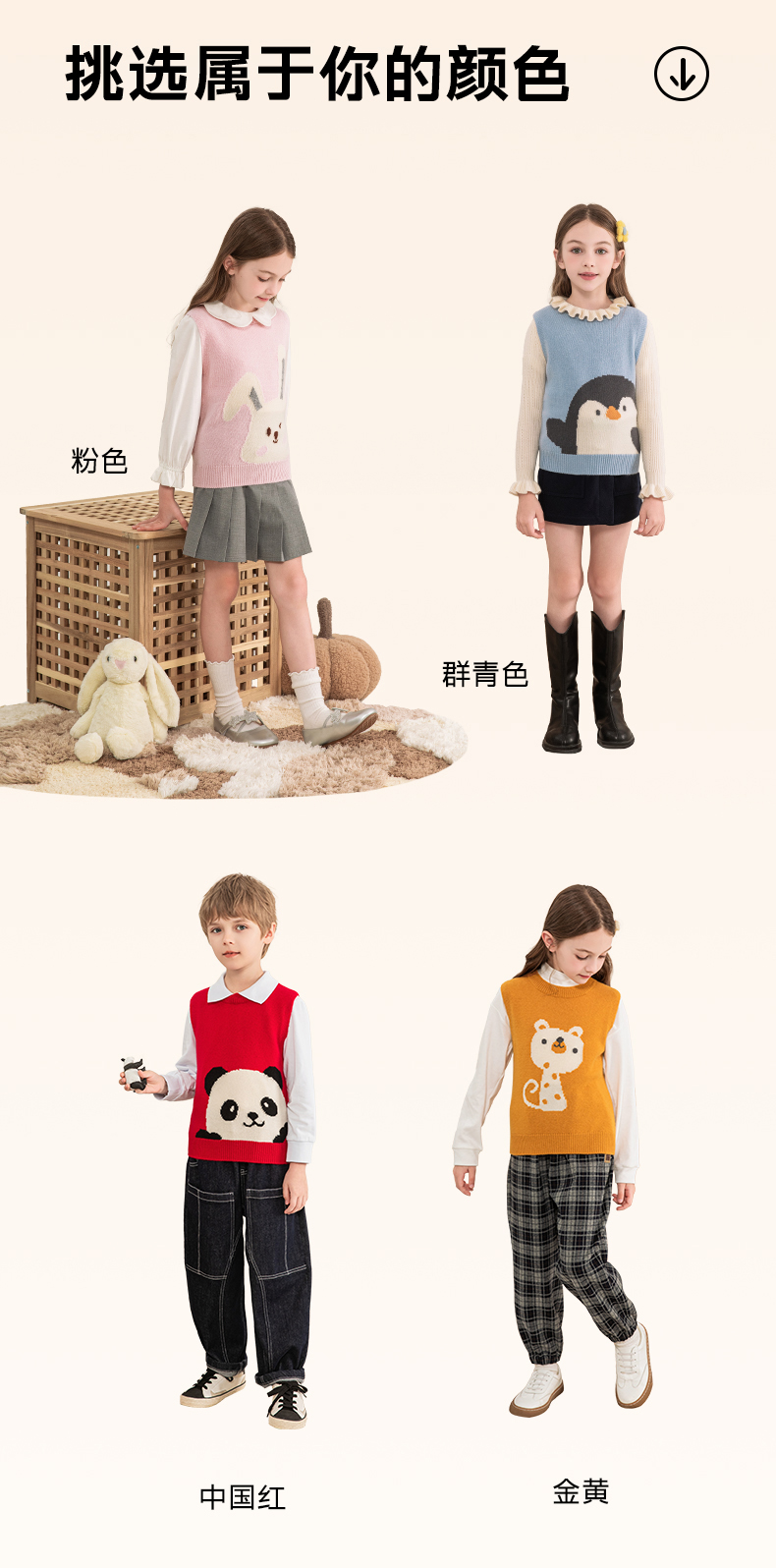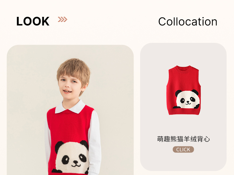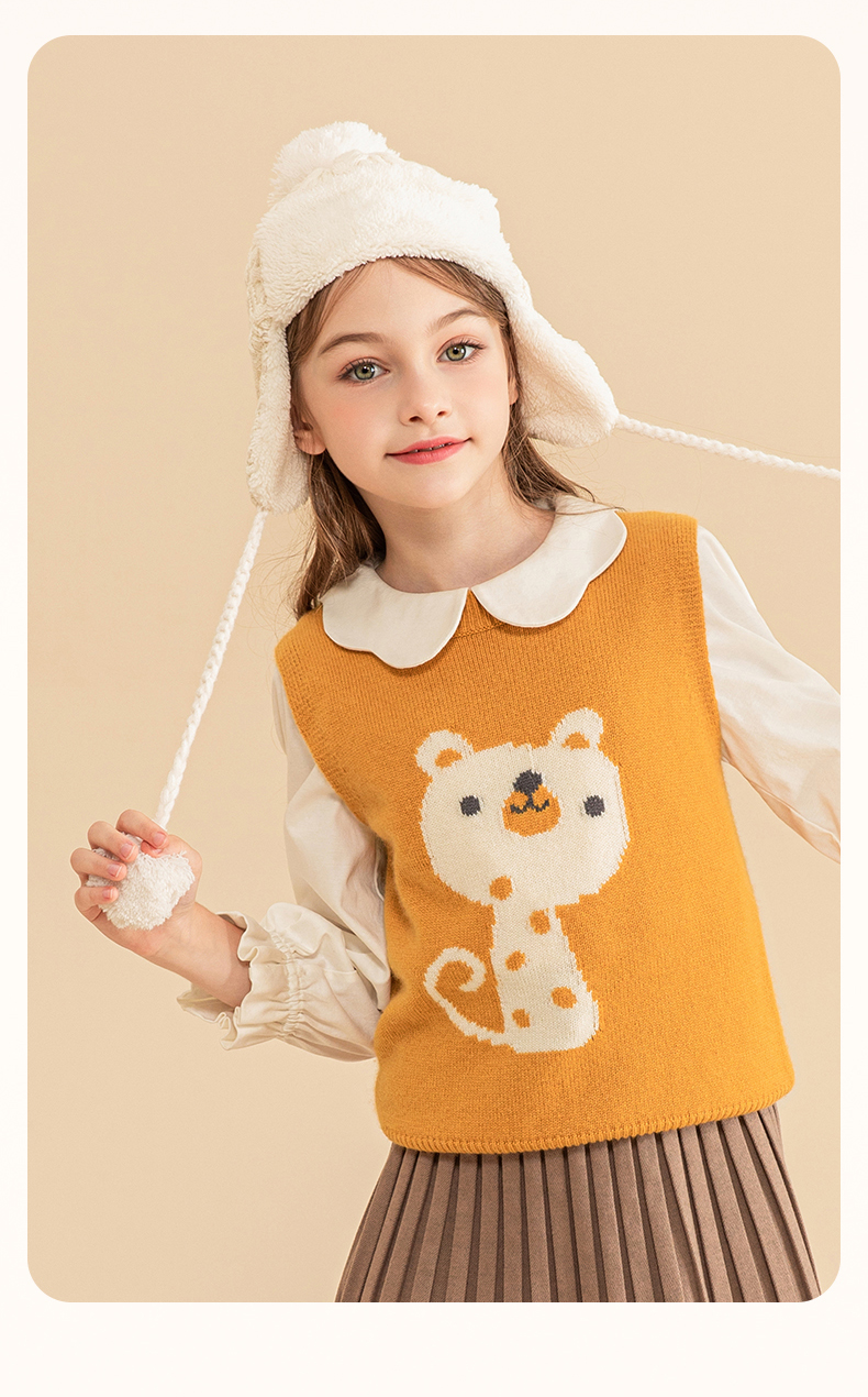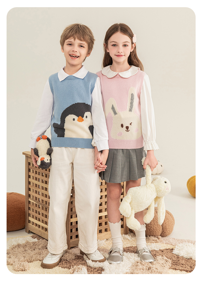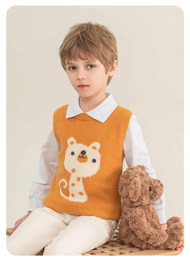 mettekids儿童羊绒背心2023秋季熊猫图案男童针织马甲女童毛衣
