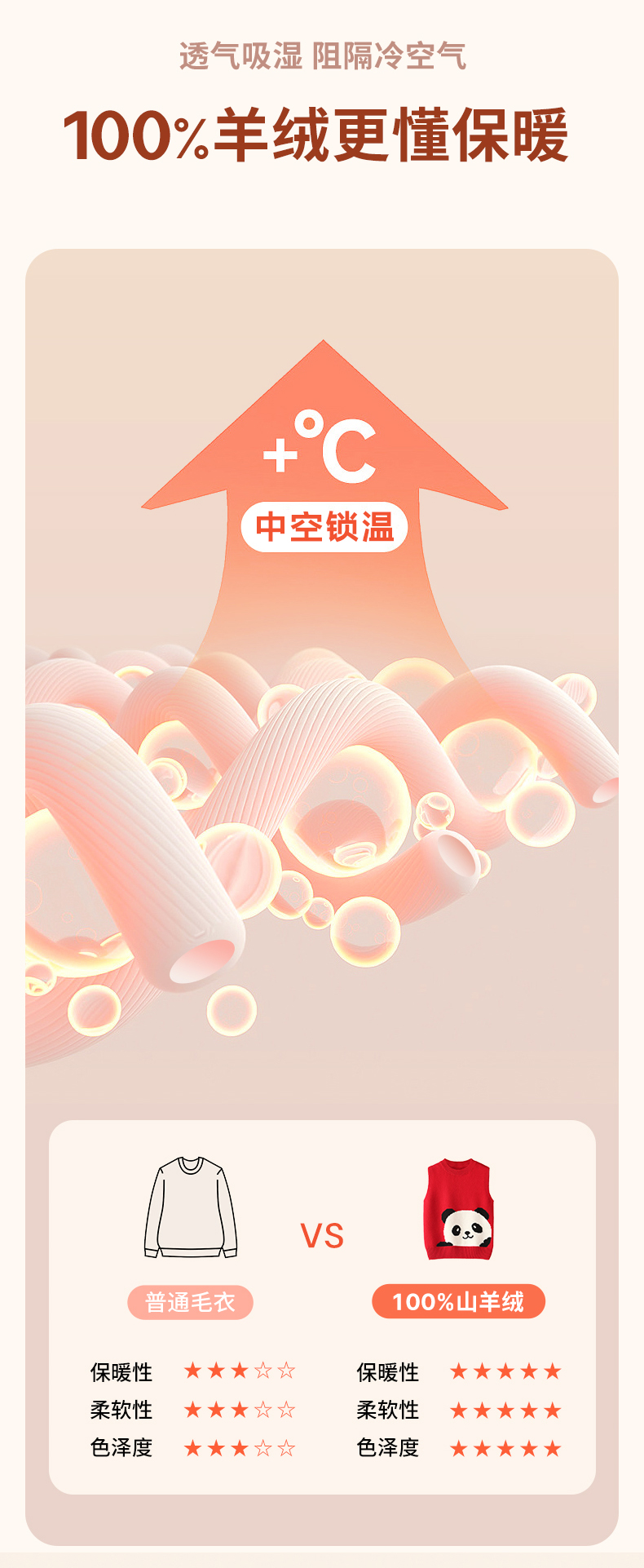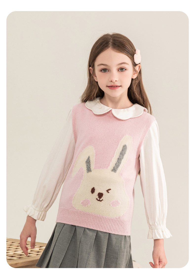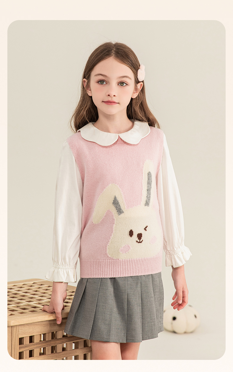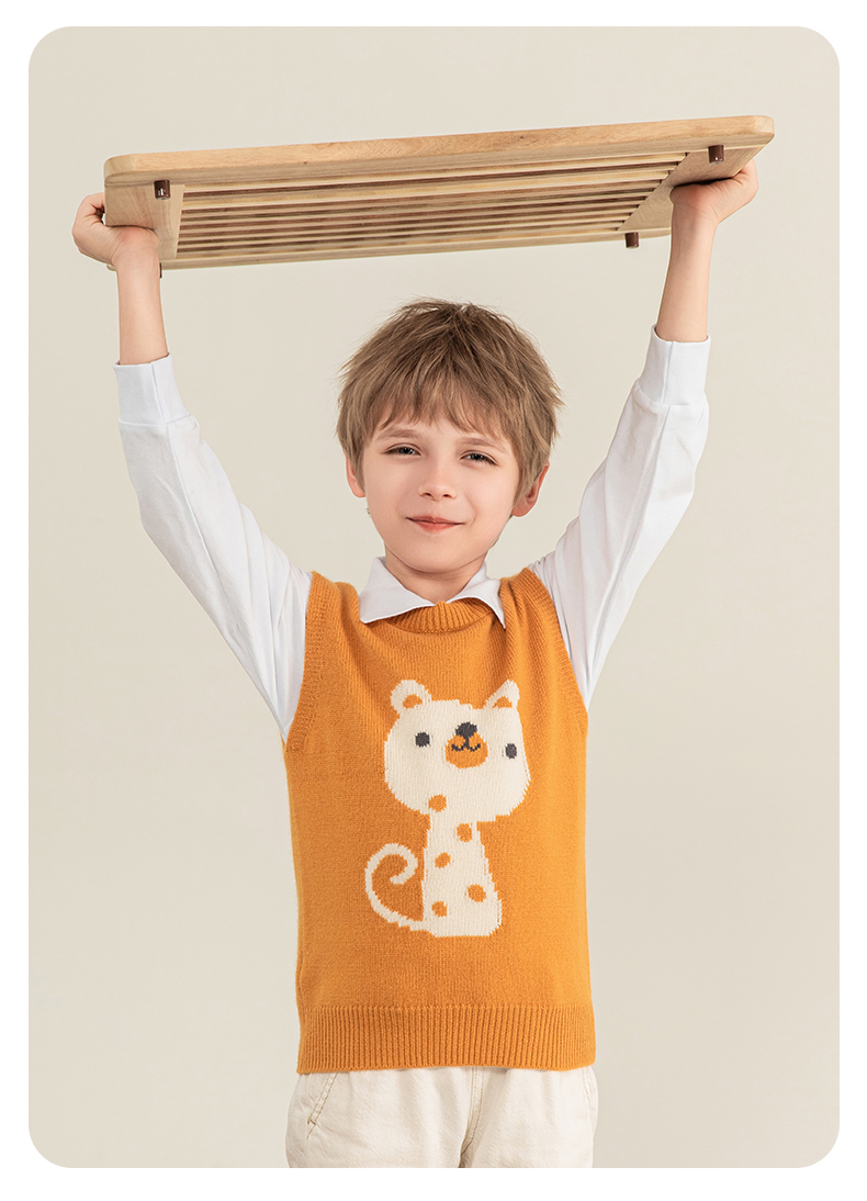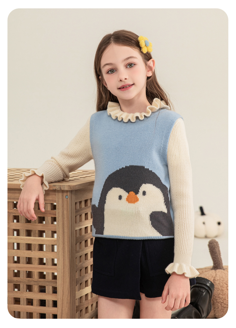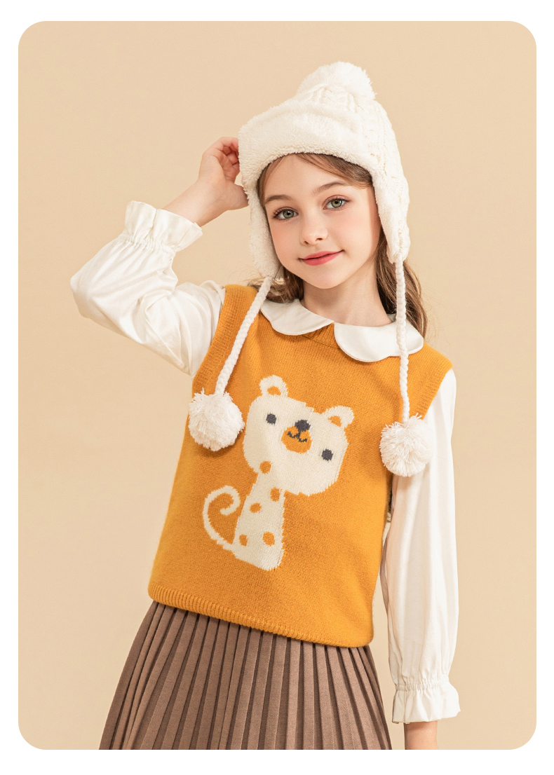 mettekids儿童羊绒背心2023秋季熊猫图案男童针织马甲女童毛衣